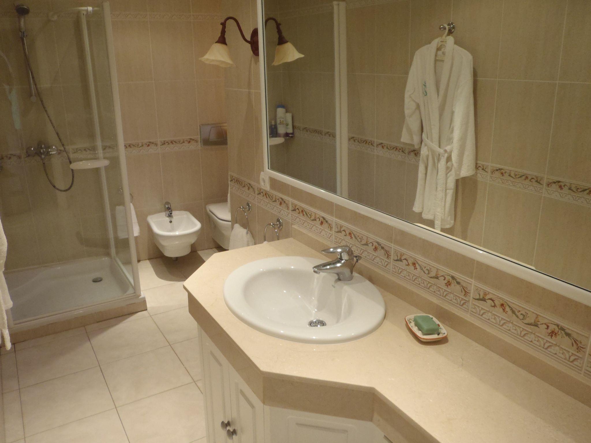 The apartment is located on the first floor of the building with Private pool for exclusive use. It has three comfortable bedrooms. The master bedroom has a double bed of 1.50 m. It has its own bathroom with bath-shower, Wc, and with two sinks. A large wardrobe where you can store your luggage. From this bedroom you can enjoy a magnificent beach view, and you have direct access to the large and sunny terrace.