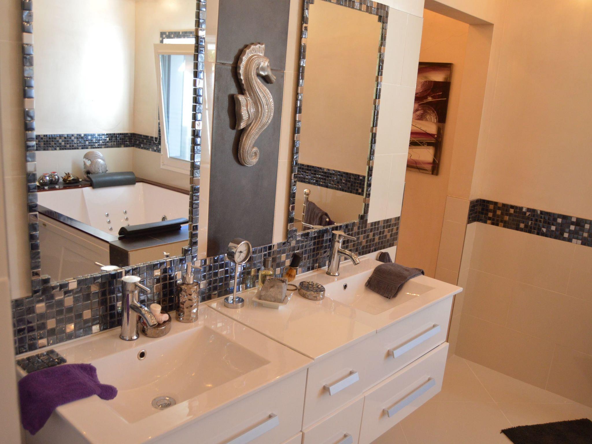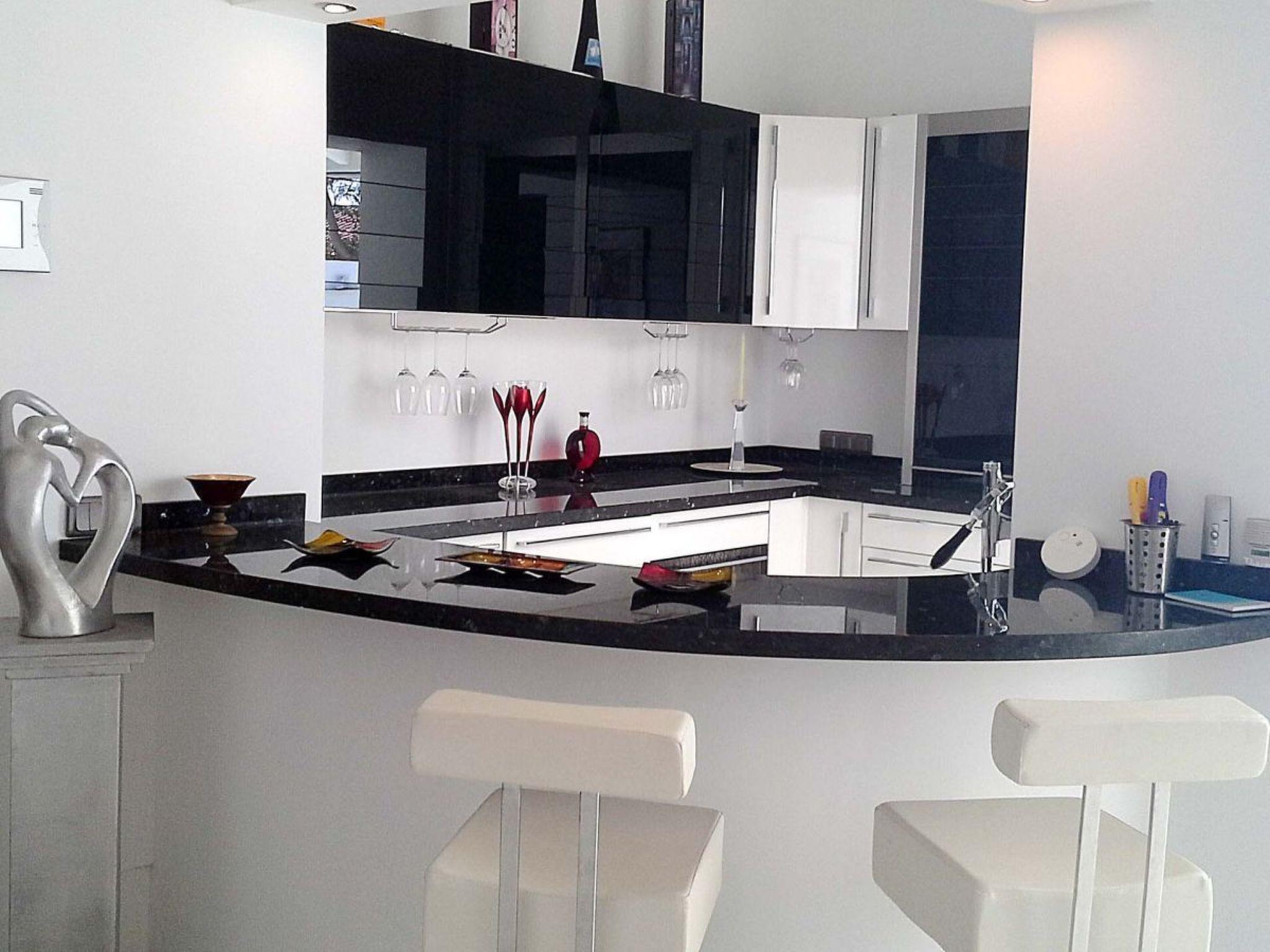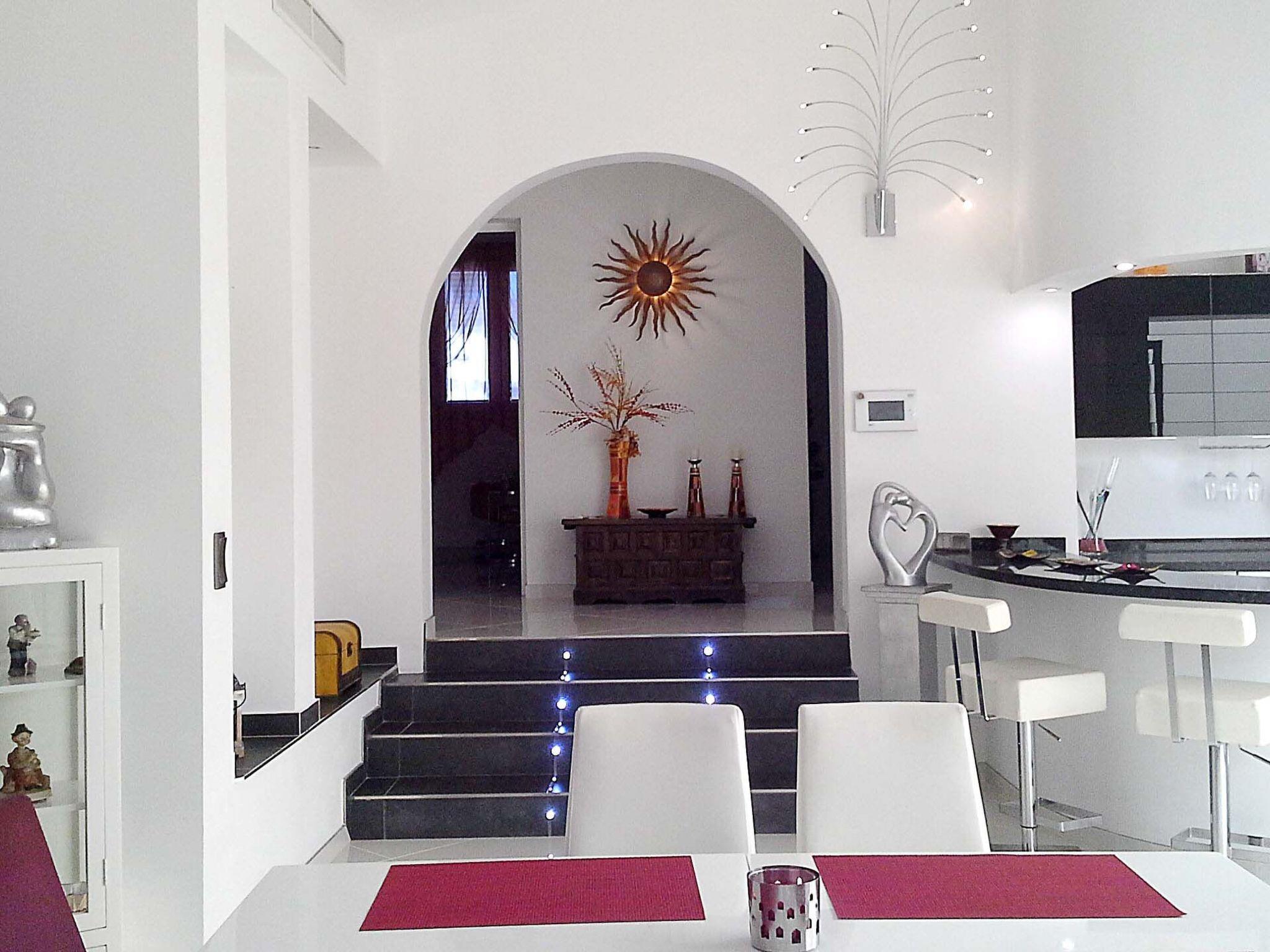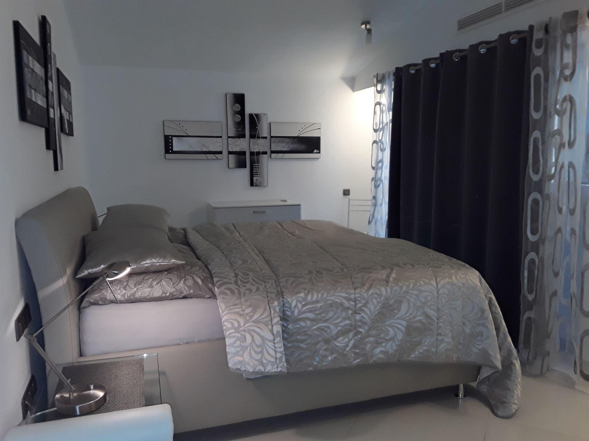 The 130 m² single-storey villa is divided into two bedrooms, a large living area with dining area and bar, a very extensively equipped kitchen, a large wellness bathroom and a smaller shower room. The house was renovated in 2014 and impresses with its high-quality furnishings in a modern style. In the first bedroom you sleep in a 180 cm x 200 cm double bed and also have direct access to the terrace. The second bedroom is furnished with a comfortable sofa bed for two people, which has a sleeping area of 160 cm x 200 cm. The heart of the house is the sociable living room, which offers cosy seating for relaxing after a day out, both on the large leather lounge area with seating for up to six people and at the dining table with five comfortable swivel chairs or at the bar. The flat-screen TV with satellite TV provides entertainment. The renovated kitchen is ideal for self-catering thanks to numerous work surfaces, an XXL ceramic hob, all the usual appliances including a dishwasher and fridge-freezer combination, as well as small electrical appliances such as a coffee machine, kettle and toaster. The large bathroom invites you to take a wellness bath in the whirlpool bathtub. An almost floor-level, spacious shower cubicle and an underbuilt double washbasin round off the facilities. The smaller second bathroom has a semi-circular shower cubicle, a WC and an under-built wash hand basin. Your comfort is guaranteed by the air conditioning in the living room and bedrooms, and there is also a private infrared cabin. A safe for your valuables, a washing machine and an ironing station complete the facilities.