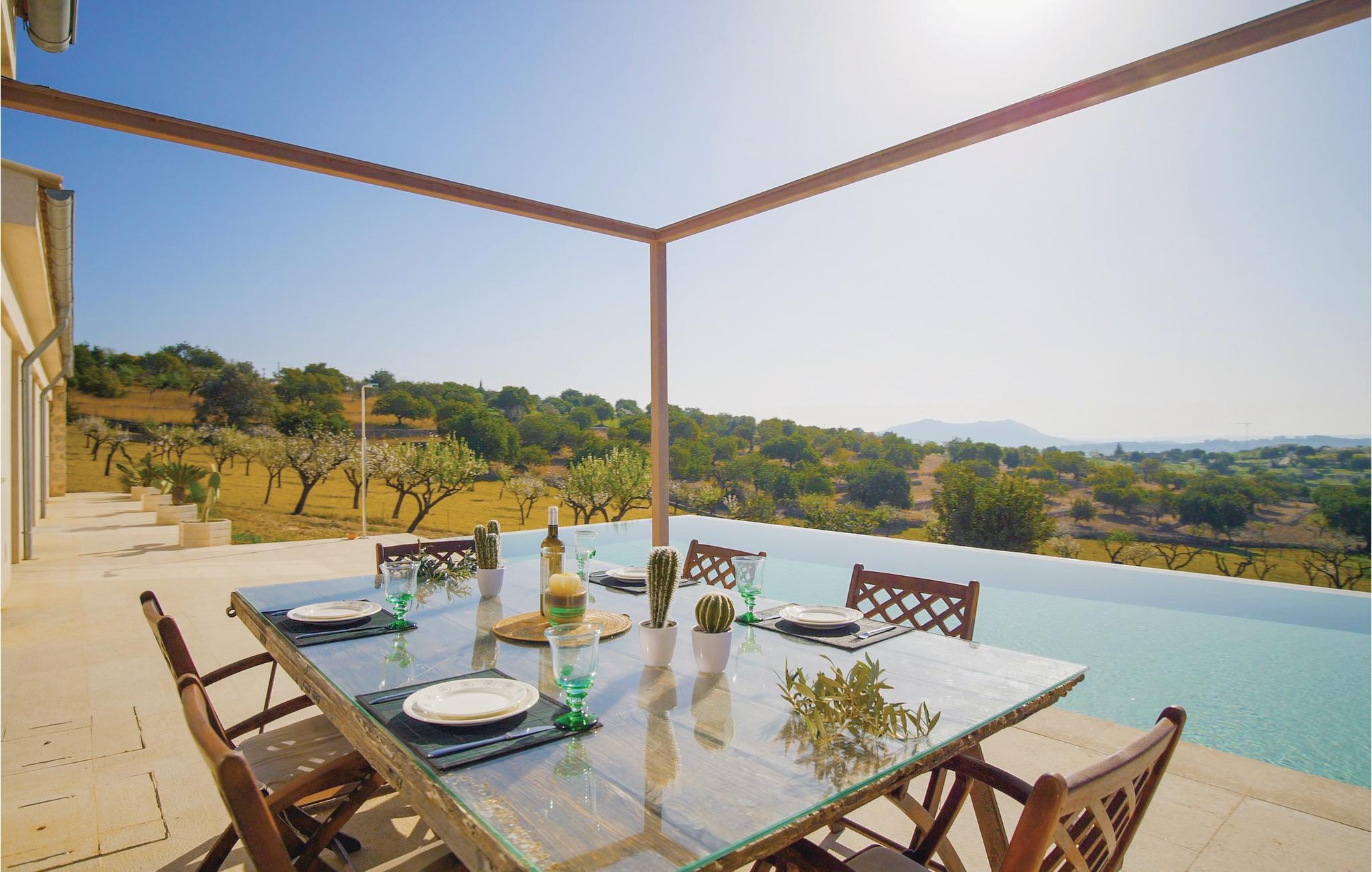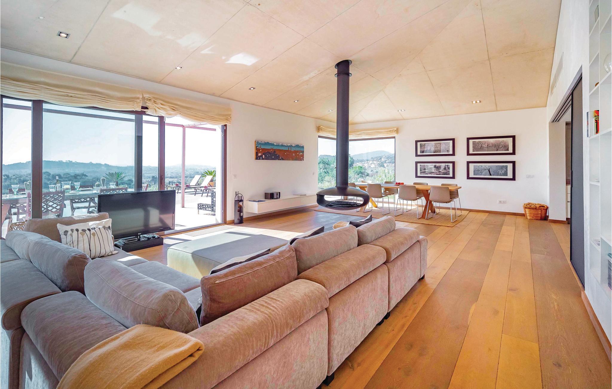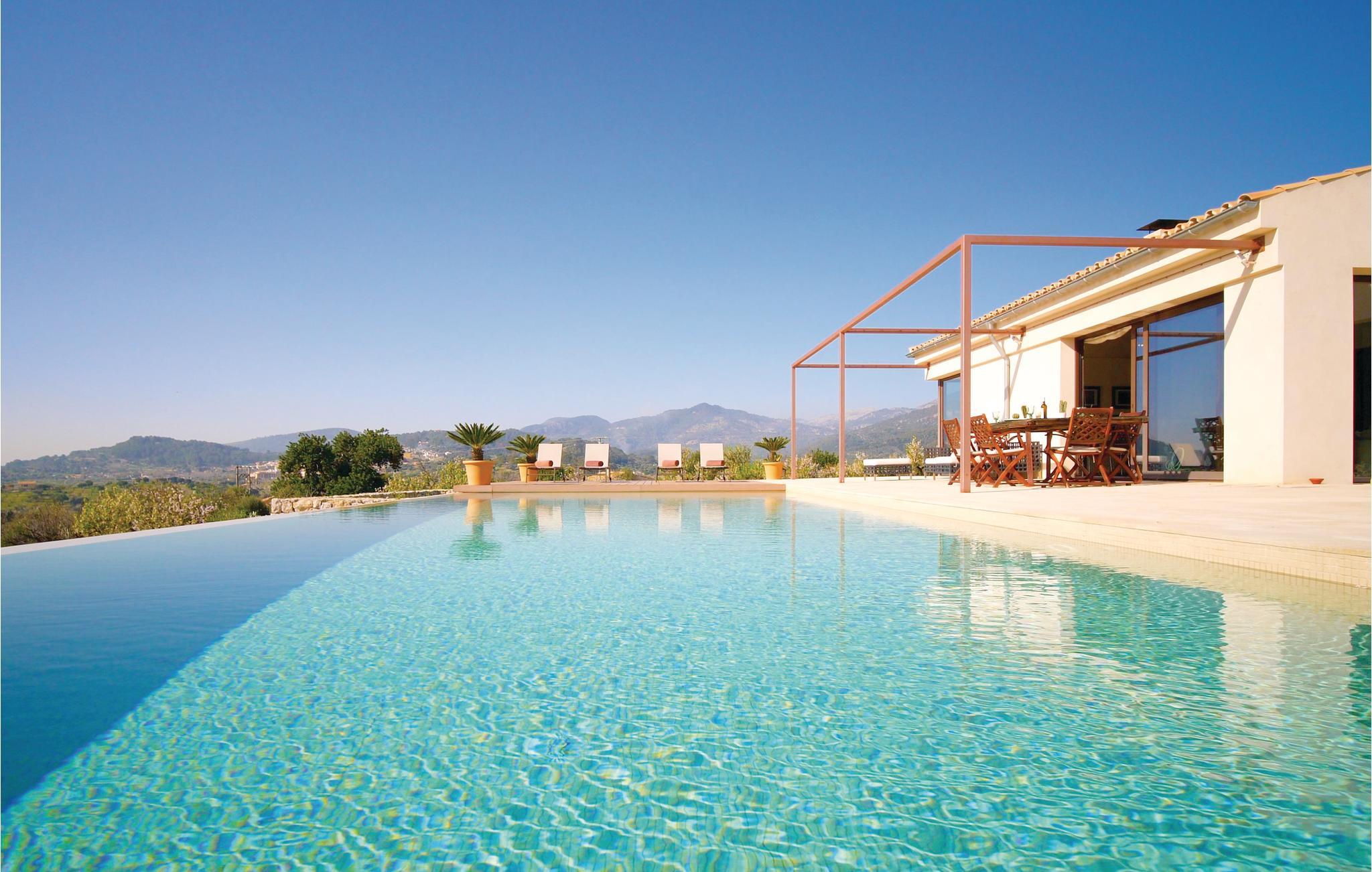 Glamourøs, fritliggende luksusvilla med infinitypool midt i det imponerende landskab. Huset er storslået, lyst og smukt indrettet. I kan lave mad i det højmoderne køkken, mens I nyder udsigten fra panoramavinduet. I kan spise eller drikke morgenkaffe på en af terrasserne eller køle af i poolen. Her kan I trække jer tilbage fra hverdagens larm og stress, men I nyder lyden af fuglenes kvidren, fårenes bjælder eller bare læse en bog i en af liggestolene. Også et lille udvalg af fitnessudstyr står til rådighed for jer.