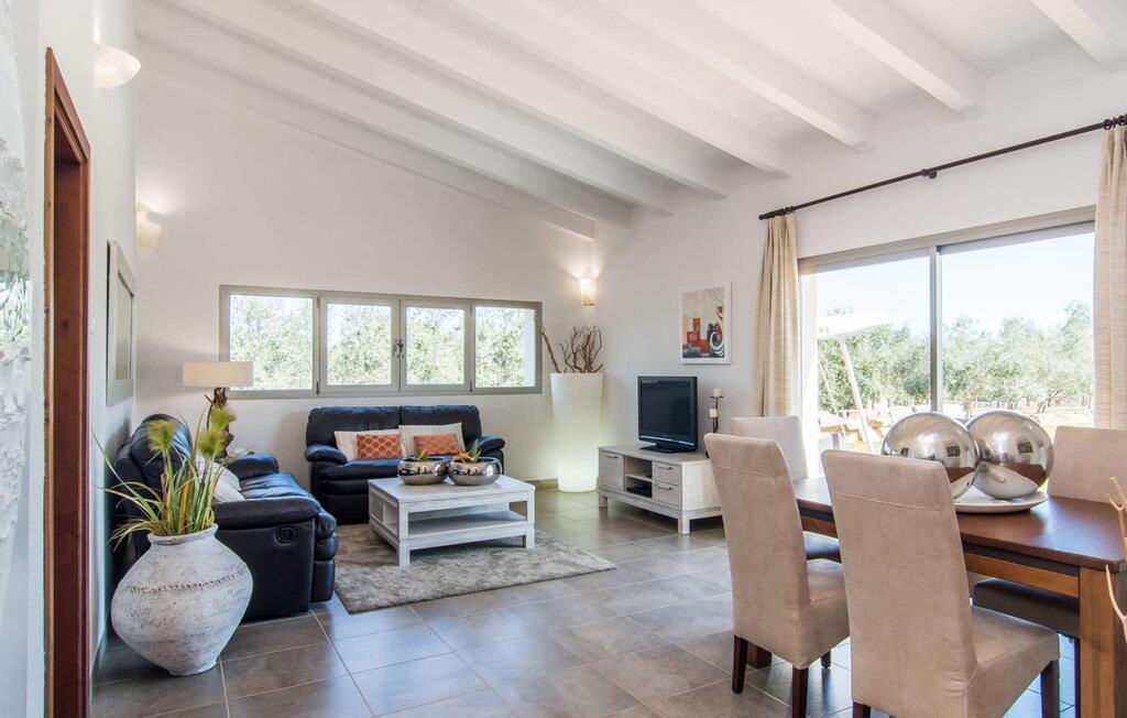 Muronita, Murochen er en dejlig destination, da S'Albufera-regionen er kendt for sit mangfoldige udvalg af saftige frugter og grøntsager, der appellerer til både voksne og børn. Ejendommen har en legeplads med gynger og rutsjebane, der giver rigelig plads til børn og giver dem et trygt miljø at lege og udforske. Voksne kan slappe af væk fra stress og jag. Poolen ved siden af terrassen tilbyder et forfriskende alternativ til havet. Siddeområdet i rattan indbygget i væggene inviterer gæster til at nyde en god bog i skyggen, mens de holder øje med poolen. Det rummelige og veludstyrede udekøkken er perfekt til at tilberede måltider og er udstyret med gardiner, der kan forvandle det til et luftigt telt. Gennem terrassedørene kommer I ind i opholds- og spiseafdelingen, indrettet i jordfarver og iøjnefaldende indretning, der skaber en beroligende atmosfære efter en aktiv dag med svømning, gå- eller cykelture. De tre soveværelser byder på en blanding af mørke og lyse kontraster, suppleret med beroligende kunst. To badeværelser, inklusive et ensuite, imødekommer gæsternes behov, mens en lang gang giver ekstra legeplads til børn. Nyd en vidunderlig familieferie omgivet af regionens livlige smag! Denne moderne naturstensvilla ligger bag Alcúdia-bugten, kun 2 km fra den nordlige mallorcanske landsby Muro. Fra "Muronita" kan I hurtigt udforske alle retninger via Ma-13 Palma-Inca-Alcúdia. Havet er (næsten) inden for rækkevidde: den fine sandstrand bugt Playa de Muro (ca. 5,5 km lang) og turistdiversiteten i Can Picafort er bestemt en kort køretur værd.