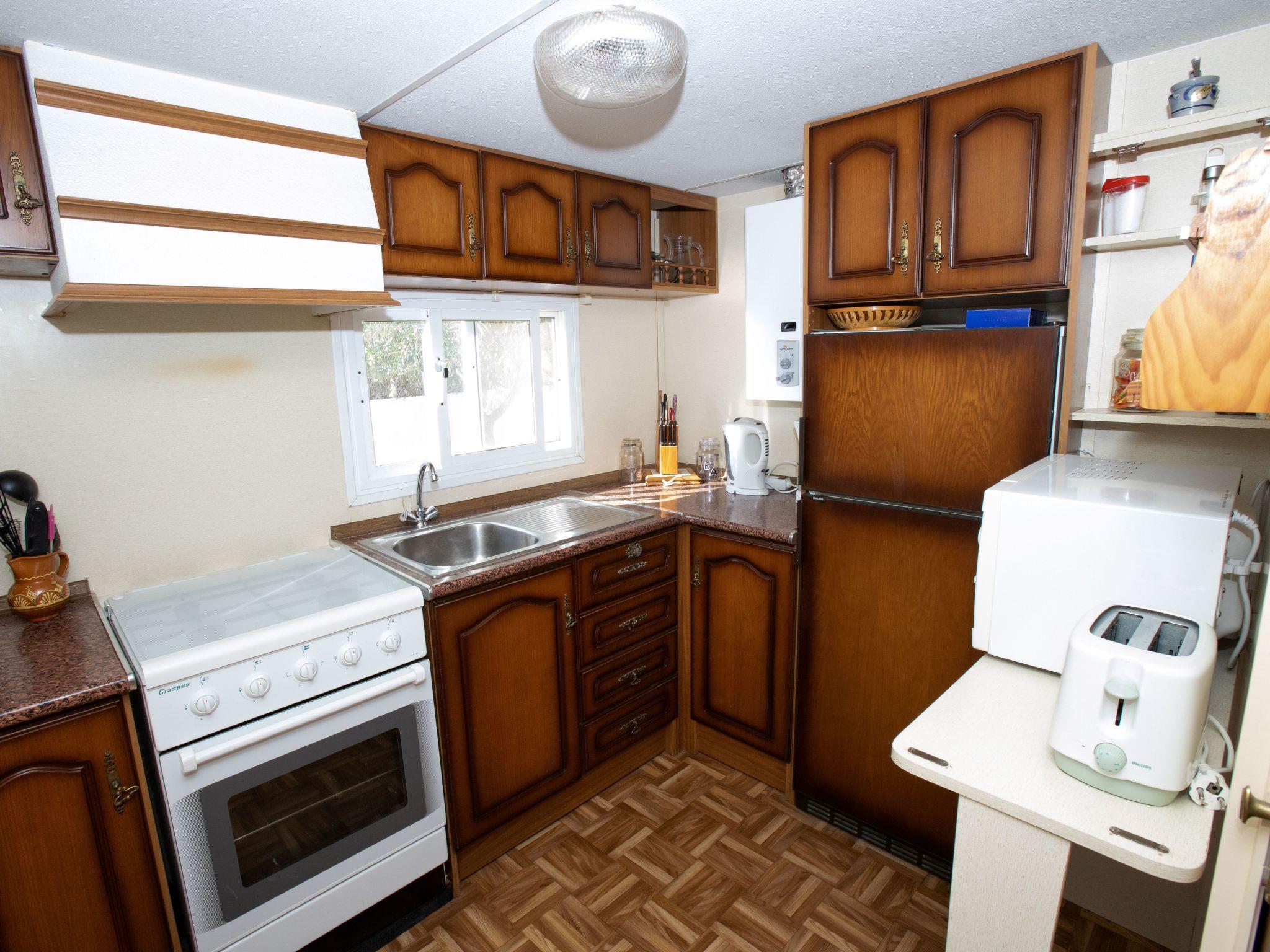 Inside, our mobile home offers three well-planned bedrooms and a bathroom with shower to make your stay as comfortable as possible. Although compact, you will find everything you need for a carefree holiday. The partial air conditioning ensures a pleasant room temperature even on warmer days, while comprehensive fencing guarantees security and privacy. It is worth noting that the accommodation does not have underfloor heating, but the Mediterranean climate usually offers pleasant temperatures anyway.