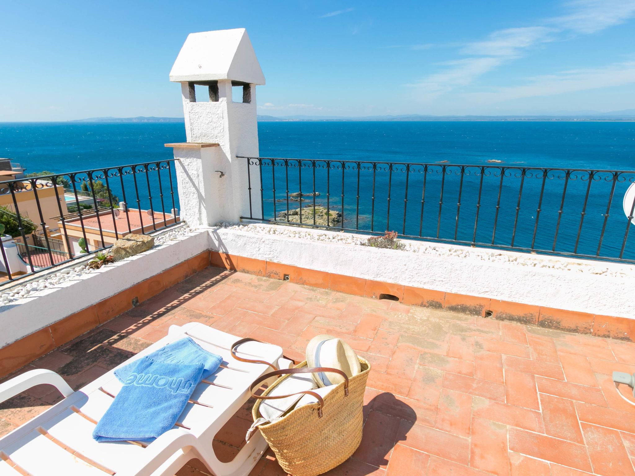 Canyelles Petites: Obligatory: to send via email names, surnames and age of all occupants for the pool control. Access to the houses by steep stairs terraced house "Casas Blancas", 2 storeys, semi-detached. 13 houses in the residence. Canyelles Petites, in the resort 3.5 km from the centre of Roses, in an elevated position on a slope, residential area (villas), 950 m from the sea, 950 m from the beach, south-west facing position. For shared use: swimming pool kidney-shaped (14 x 5 m, depth 140 - 180 cm, seasonal availability: 01.Jun. - 30.Sep. pool opening hours: 09:00-21:00). Very steep motor access. Stepped path (36 steps) to the house. Shop, grocery, supermarket, restaurant, bar, café, bus stop 850 m, sandy beach "Canyelles Petites". Sports harbour 3 km, marina 3.5 km, golf course (18 hole) 20 km, surf school 3.5 km, sailing school 3.5 km, tennis 5 km, riding stable 10 km. Nearby attractions: Parque Acuático Aquabrava Roses 6 km, Skydive y túnel del viento Empuriabrava 11 km, Cadaqués 18 km, Castillo y casino de Perelada 25 km, Monasterio de Sant Pere de Rodes 24 km, Museo Dalí Figueres 24 km. Please note: car recommended, no lift. The owner does not accept any youth groups. The keys‘ handover takes place by the agency Interhome in Roses. Neighbourhood highly sensitive to noise. Quietness and good behaviour expected.