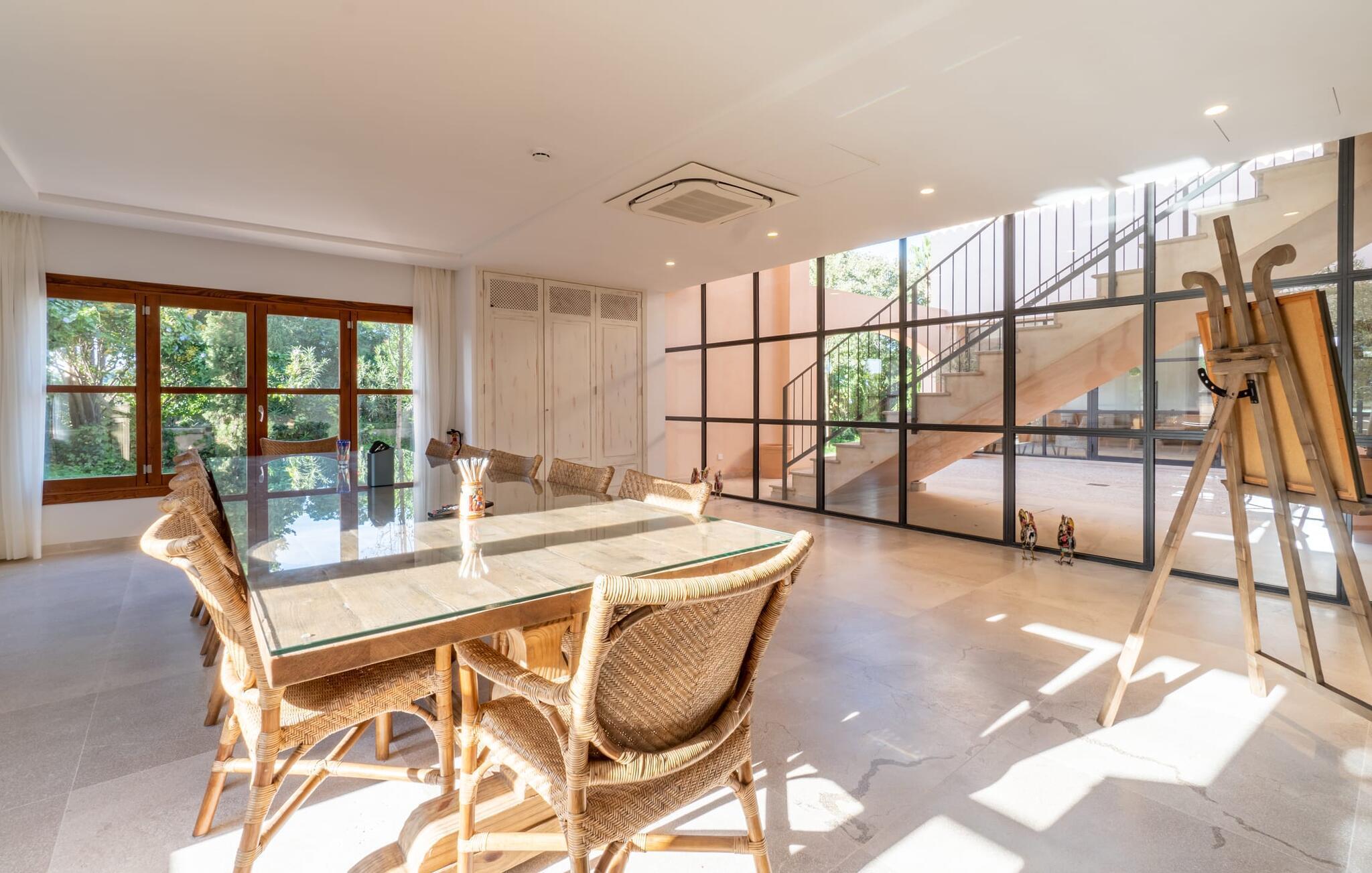 En unik ro omgiver ejendommen, hvor lejligheden "Sa Posada d'Aumallia 34" ligger. Græsplæner, små stier og mange middelhavsplanter, herunder århundredgamle træer, præger området og giver altid luftig, naturlig skygge. Dette er et Fincallorca feriehus. Forskellige områder inviterer dig til at tilbringe afslappende timer udendørs: komfortable liggestole, lounge, spisebord og hyggelige siddepladser. Fra alle steder kan du nyde en vidunderlig udsigt over landskabet. Den 18 meter lange pool, som er omgivet af prydplanter og solbadeområder, lover en behagelig forfriskning. Hvis du kan lide sport, kan du bruge tennisbanen eller fitnesscentret. Til wellness-øjeblikke er der en omfattende spa med sauna og tyrkisk bad. Du kan også bruge et alsidigt mødelokale efter aftale. Den rummelige lejlighed med en stor panoramaterrasse imponerer med sin klassiske elegance. En hyggelig opholdsstue med komfortable siddepladser, tv og spisebord samt et moderne tekøkken og selvfølgelig en stor seng og et tilhørende badeværelse med badekar og bruser. Denne lejlighed på det sydlige Mallorca er ideel til et roligt wellness-ophold for to. Lejligheden "Sa Posada d'Aumallia 34" er en del af "Aumallia Hotel & Spa", et charmerende landhotel med en rolig beliggenhed. Det er tæt på Porto Colom og golfbanen Vall d'Or. Det store område fuld af flair er ideelt til en afslappende ferie på Mallorca. Porto Colom-stranden og de berømte Dragon Caves kan nås på 10 minutter i bil.