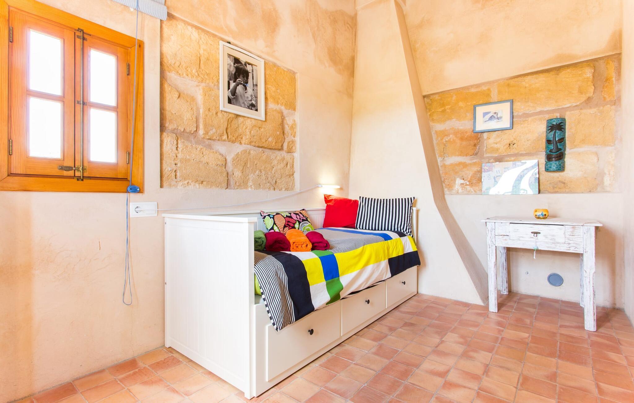 Leder du efter en autentisk mallorcansk ferie i idylliske, landlige omgivelser? Også en elegant stemning? Så tag et øjeblik og lær villaen "Sa Vinyasa Des Compte" lidt bedre at kende. Dette er en ejendom, der nemt opfylder alle disse krav, men der er meget mere her end det, så lad os venligst introducere dig til nogle af de finere detaljer. Bygningen ser ud, som om den altid har været en del af det lokale landskab, omgivet af høje nåletræer på den ene side og marker og haver på den anden. Oliventræerne på ejendommen udstråler middelhavskarakter. Dette storslåede terræn er ideelt til alle typer af afslappede udendørsaktiviteter. Langs hele villaens forside løber en overdækket stenpladeterrasse, som er ideel til hverdagen på ferien. Nyd jeres måltider sammen her ved det elegante spisebord og nyd udsigten over det omkringliggende landskab. Bare vær forberedt på at slappe af. Træskodder på vinduerne, en antik udseende stenfacade, et luftigt bambusudhæng og antikke dekorative elementer skaber en unik atmosfære, der inviterer dig til at blive hængende. Et par trin fører til den hævede pool, som er placeret i villaens tidligere vandtank. Du kan til enhver tid komme her for at tage en forfriskende svømmetur i vandet eller nyde den varme middelhavssol på solterrassen. Bag huset er der en have med frugttræer og en stor græsplæne, hvor børnene kan lege af hjertens lyst. Der er også en muret grill, hvor du kan grille alle mulige lækkerier og nyde dem med hele besætningen, præcis som du forventer af en ferie. Det mest interessante ved denne villa er, at den har en økologisk køkkenhave, og selv træerne er vedligeholdt på en miljøvenlig måde. Derudover er der også høns i villaen, så du får friske æg om morgenen. Der er endda en venlig kat på ejendommen. Når du træder ind i boligen, vil du bemærke, at ejerne har lagt en stor indsats og sans for detaljerne i at skabe et usædvanligt indbydende miljø. Fusionen af moderne æstetisk design med ægte traditionelle elementer giver rummene en atmosfære fuld af charme og stil. Stedets autentiske karakter understreges af sandstensvægge og unikke antikviteter, som gør det til et ægte blikfang. Og hele interiøret har en smuk balance mellem dekorative gulvfliser og klassiske synlige loftsbjælker. Hoveddøren fører ind i stueetagens spisestue, hvis du ønsker at spise indenfor. Og på køligere aftener kan du tænde pejsen for at gøre det endnu hyggeligere. Til højre er der et hyggeligt soveværelse og et rummeligt badeværelse, der er flot og farverigt indrettet - bruseren bruger endda solopvarmet vand. Til venstre er køkkenet, som er udstyret med højkvalitets apparater til din komfort, herunder en kedel og en filterkaffemaskine. Dette er et fantastisk sted at prøve nogle traditionelle spanske opskrifter, mens du er på ferie og måske servere dem til resten af gruppen for at nyde. Den øverste etage er i det væsentlige ét stort rum, opdelt i forskellige rum gennem den smarte placering af et indbygget skab. Den hyggelige, airconditionerede stue er stedet at slappe af efter en lang dag med ferie. Hvis du vil, kan du se en god film på tv eller dvd. Soveværelserne ovenpå, et enkelt- og et dobbeltværelse, har hver deres egen karakteristiske stil, men begge er ideelle til en god nats søvn. Dobbeltværelset åbner direkte ud til den rummelige tagterrasse, som byder på en vidunderlig udsigt i alle retninger. Originale møbler lavet af forsendelsespaller er det perfekte sted at sidde udenfor om aftenen og nyde et godt glas vin. Enkeltværelset er farverigt indrettet og vil helt sikkert være det værelse, som yngre feriegæster ønsker at bo i. Du kan købe dagligvarer og andre fornødenheder i Santa Margalida, hvor der er talrige supermarkeder, konditorier og restauranter. Vi anbefaler især morgenmadsbaren "El Sol" på stranden i Son Serra de Marina (ca. 15 km); Nyd en stilfuld brunch med udsigt over stranden og vandet, og der er endda livemusik om søndagen. Can Picafort har stadig fornemmelsen af en kystlandsby, hvor du kan gå en lang tur på promenaden langs den blege sandstrand, der strækker sig nordpå til Port d'Alcúdia. Barer, restauranter, butikker og endda natklubber sikrer en ferie, du aldrig vil glemme. Den autentiske mallorcanske villa "Sa Vinyasa Des Compte" er gemt væk på en 28.000 m² stor grund, kun 2 km syd for den lille by Santa Margalida på den nordlige del af øen. Den rolige beliggenhed er ideel for naturelskere. Sineu ligger 15 minutters kørsel derfra, og smukke Inca kan nås på cirka 25 minutter. Kystbyen Can Picafort ligger kun 11 km væk. Tag dertil for at nyde havet og shoppe dagligvarer og andre daglige fornødenheder. Dette er et Fincallorca feriehus.