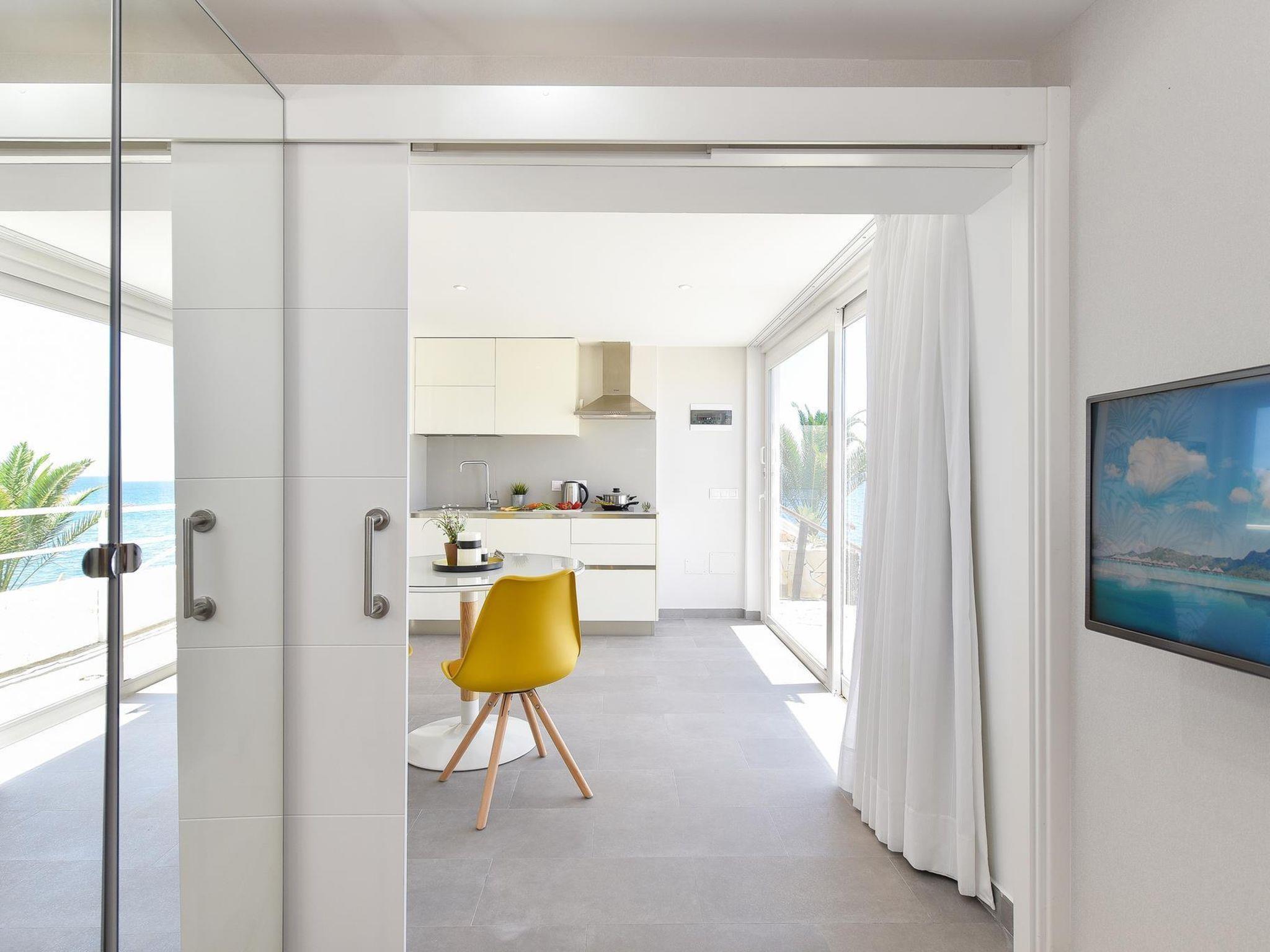 Modern, comfortable apartment block "Studio Nueva Suecia CR715". In the centre of San Agustín, in a central position, 10 m from the sea, 10 m from the beach, direct access to the beach. Parking on the premises, public parking on the road. Shop, supermarket 150 m, restaurant 300 m, bus stop "Clinica Roca" 400 m. The owner does not accept any youth groups. Please note: airfield 33 km from the property. Neighbourhood highly sensitive to noise. Quietness and good behaviour expected.
