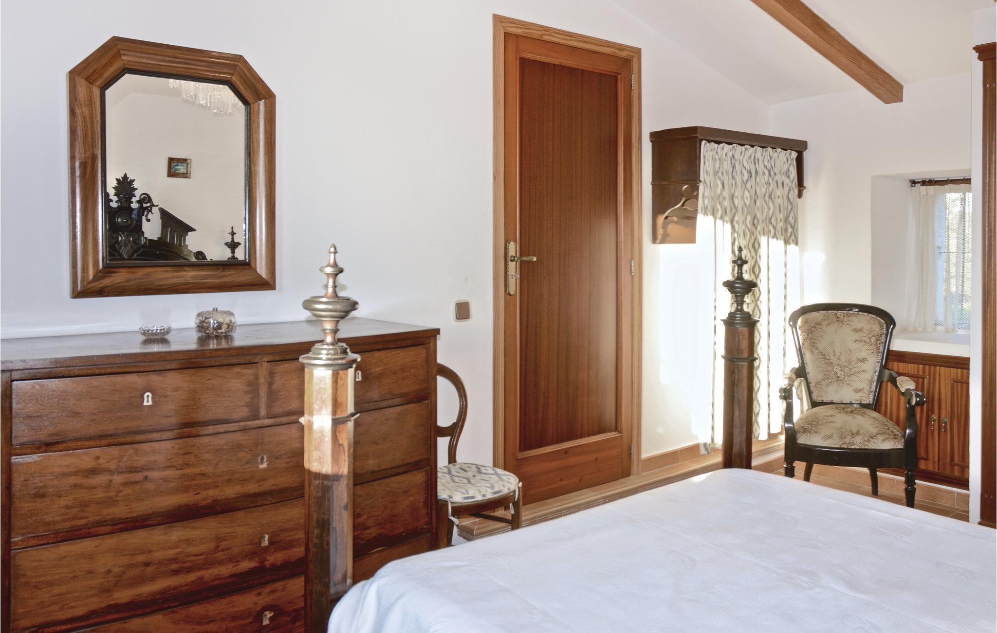 Denne ferielejlighed ligger i en finca i ugenerte og rolige omgivelser midt i naturen. Huset ligger højt og I bor på første sal i et af øens skønneste områder. Nyd den store terrasse og udsigten over bjergene og det åbne grønen landskab. Særligt fra tagterassen kan I nyde den skønne udsigt mens I drikker en Sundowner og stjernerne dukker frem en efter en på himlen. Jeres venlige og hjælpsomme ejerpar bor i stueplan, de benyttet også husets pool. Hvis I er mange der rejser sammen, kan I også leje EML559.