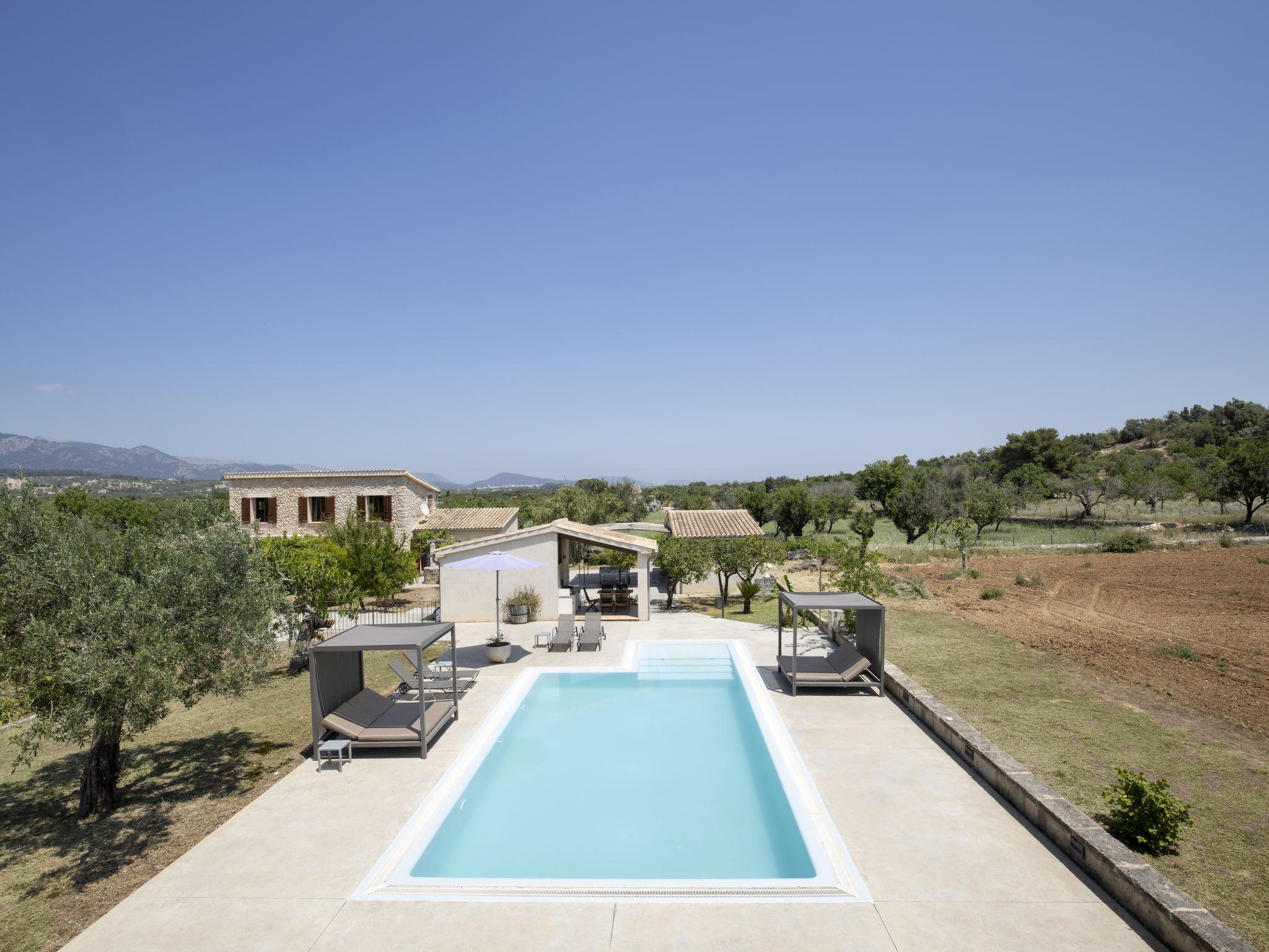 Large, modern, rustic farm estate "Cas Ciutada", built in 1850, renovated in 2015, surrounded by fields. Property composed of main house and outbuilding, outside the resort, 3 km from the centre of Selva, in a quiet, sunny position, 25 km from the sea, in the countryside. Private: natural state property (fenced) with lawn and wildlife garden, swimming pool (12 x 5 m, depth 50 - 180 cm, seasonal availability: 01.Jan. - 31.Dec.). WC in the pool area, outdoor shower, table tennis, patio, arbour, pergola, garden furniture, barbecue, barbecue house, pool maintenance by the owner/gardener. In the house: internet access, WiFi, storage room for bicycles, air conditioning. Parking at the house on the premises. Grocery 2 km, supermarket 3 km, restaurant 3 km, bar 3 km, bus stop "Selva 1 (58011)." 3 km, sandy beach "Playa de Port d'Alcúdia" 27.5 km. Sports harbour 27.8 km, golf course (18 hole) 24 km, tennis 4 km, riding stable 5 km, sports centre 5 km, walking paths from the house 4 km, cycle lane 100 m. Nearby attractions: Ciudad de Inca 4 km, Pueblos,Campanet,Caimari,Moscari,Mancor. Palma City 31 km, Mallorca Fashion Oulet & Cinemas 24 km, Playa de Formentor 35 km, Ermita de Lluc 15 km. Hiking paths: Serra de Tramuntana, Puig de Santa Magdalena. Please note: car recommended. Suitable for seniors. Object suitable for 8 adults. The owner does not accept any youth groups. Animals in the neighbourhood. Airfield 40 km from the property.