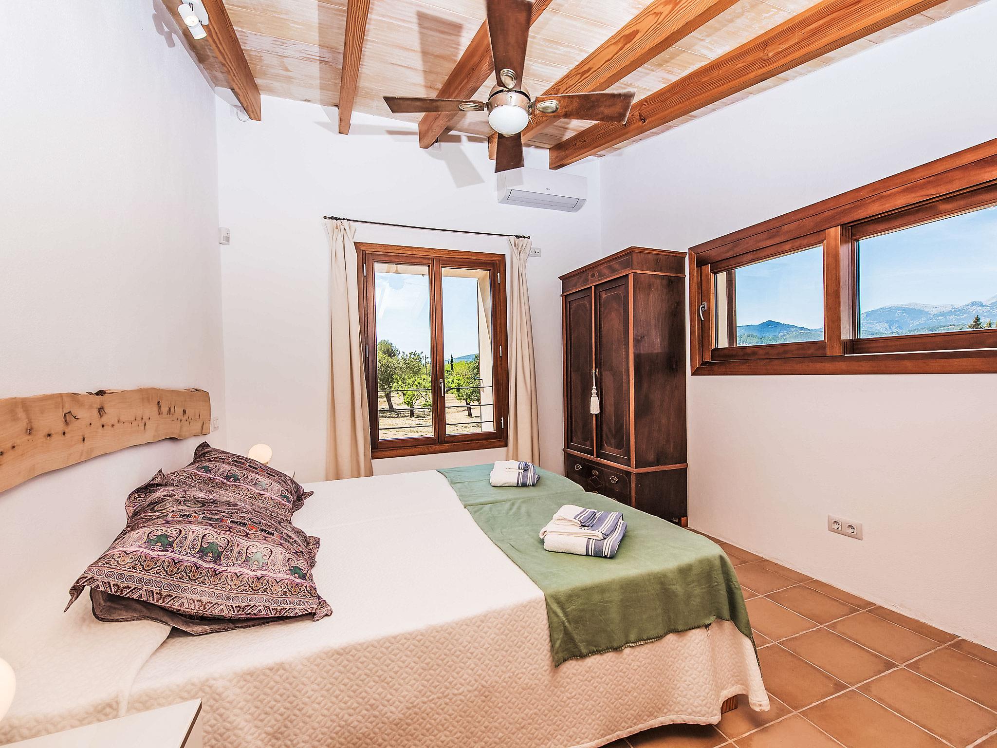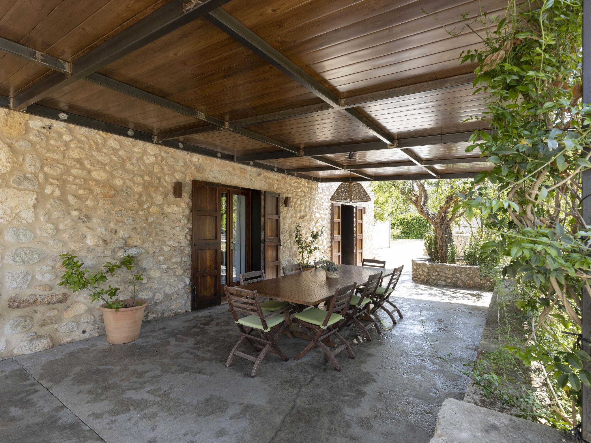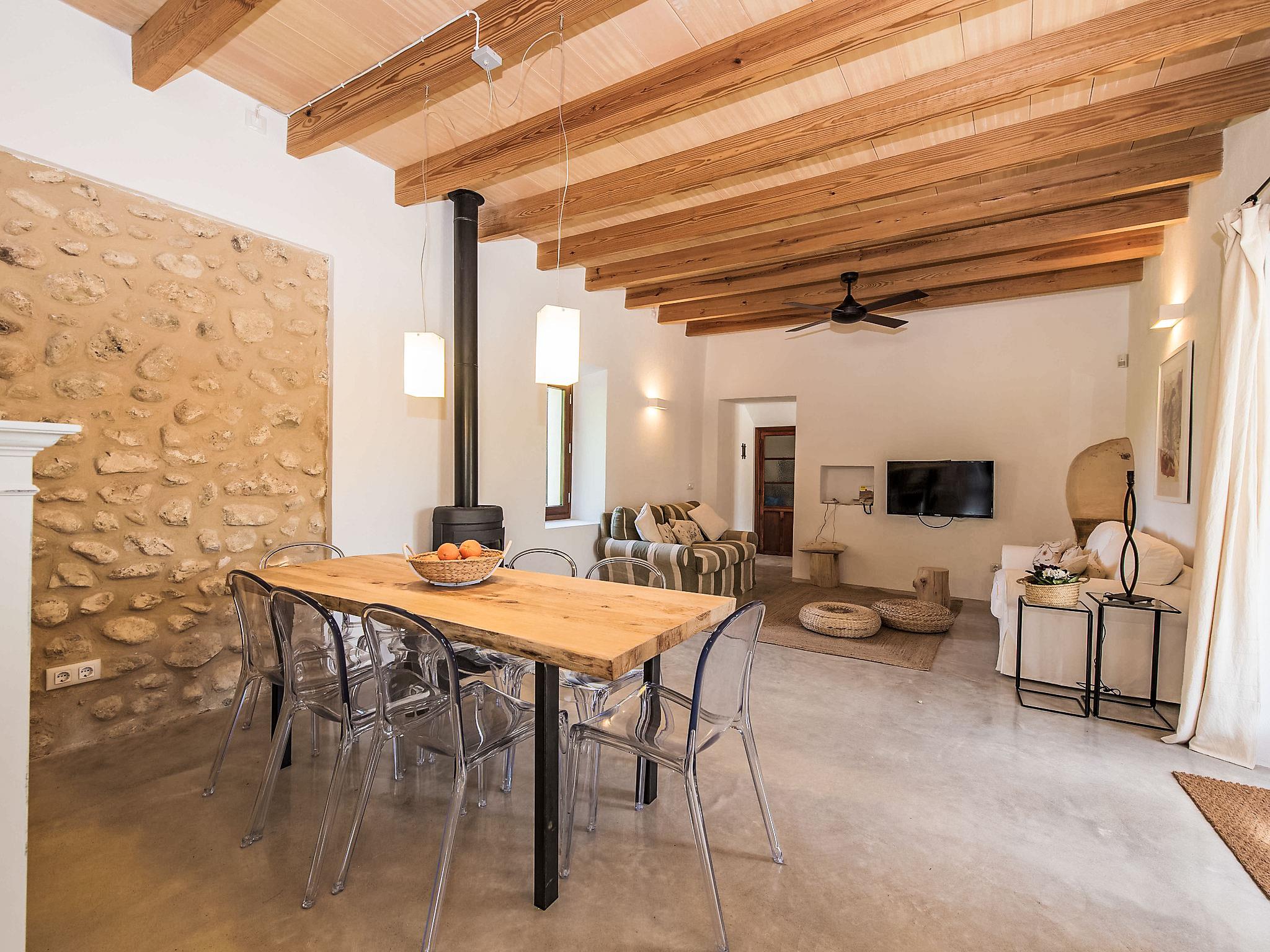 "Cas Ciutada", 5-room villa 200 m2 on 2 levels. Object suitable for 8 adults. Spacious and bright, fully renovated, comfortable and modern furnishings: living/dining room with Scandinavian wood stove (only for decoration), dining table, digital TV, flat screen, air conditioning and forced-air heating. Exit to the patio. 1 double bedroom with 1 bed (90 cm, length 190 cm), 1 pull-out bed (2 x 90 cm, length 190 cm), fan. Exit to the terrace. 1 large double bedroom with 1 french bed (150 cm, length 200 cm), shower/WC, air conditioning and forced-air heating. Exit to the terrace. Kitchen (oven, dishwasher, 4 ceramic glass hob hotplates, toaster, kettle, microwave, freezer, electric coffee machine) with dining table. Exit to the terrace. Shower/WC. Upper floor: 1 double bedroom with 2 beds (90 cm, length 200 cm), air conditioning and forced-air heating. 1 double bedroom with 2 beds (90 cm, length 200 cm), air conditioning and forced-air heating. Large patio, lawn, porch. Terrace furniture, barbecue, deck chairs (8), covered balcony. Very beautiful view of the mountains and the countryside. Facilities: washing machine, iron, children's high chair, baby cot for up to 2 year olds, hair dryer. Internet (WiFi, free). Parking (fenced) at the house. Please note: one double bedroom is outside the apartment. Non-smoking house. Fire extinguisher, no lift. No internal connecting door between the separated properties. The pool mentioned in the description is for private use. Note: the double bedroom which is independent from the main house has doors adapted for wheelchairs (77 cm wide). The sink and toilet are normal standard size. ETV/4941 // Reg. Nr.: ESFCTU00000702200023993100000000000000000000ETV/49412