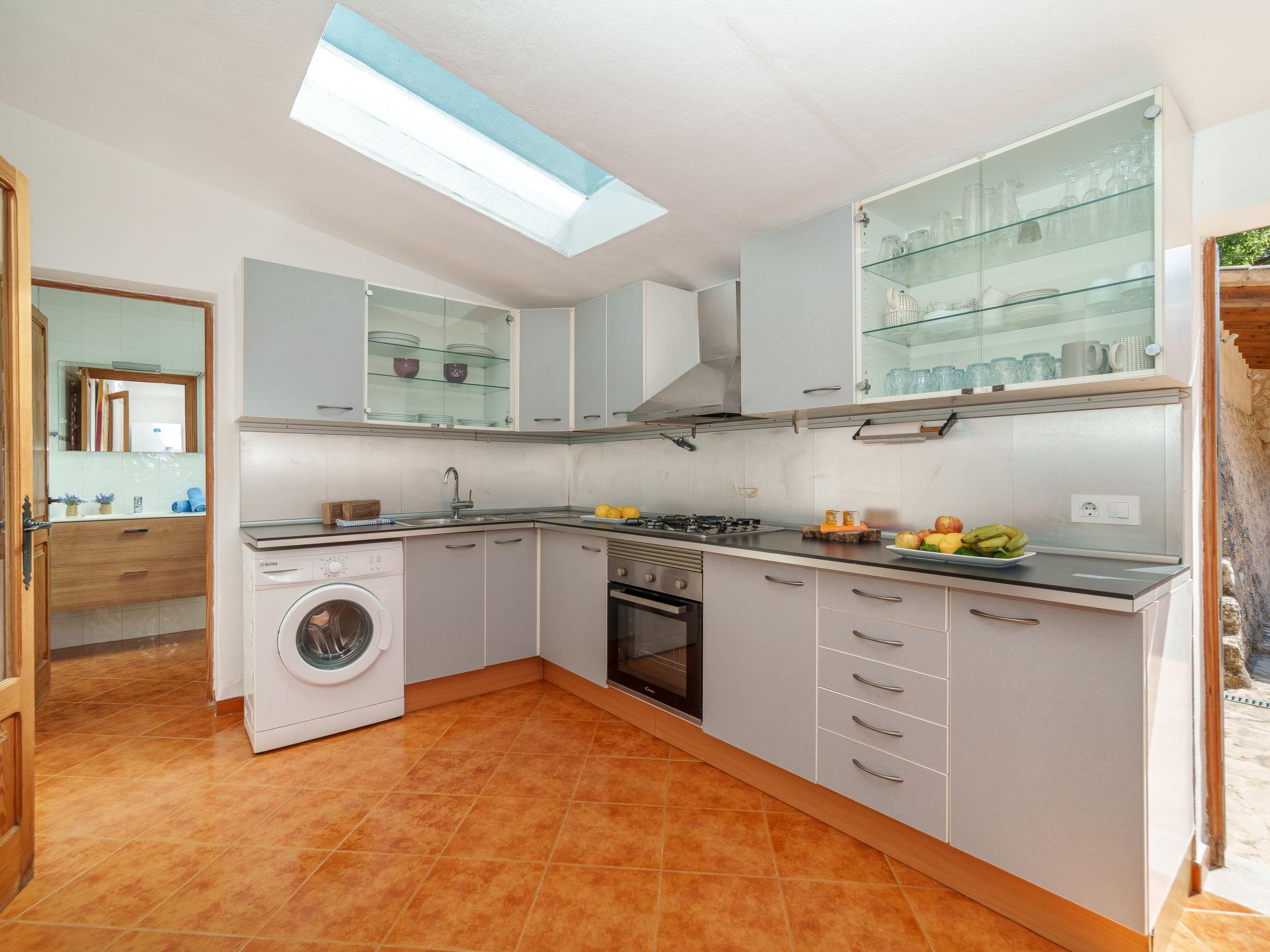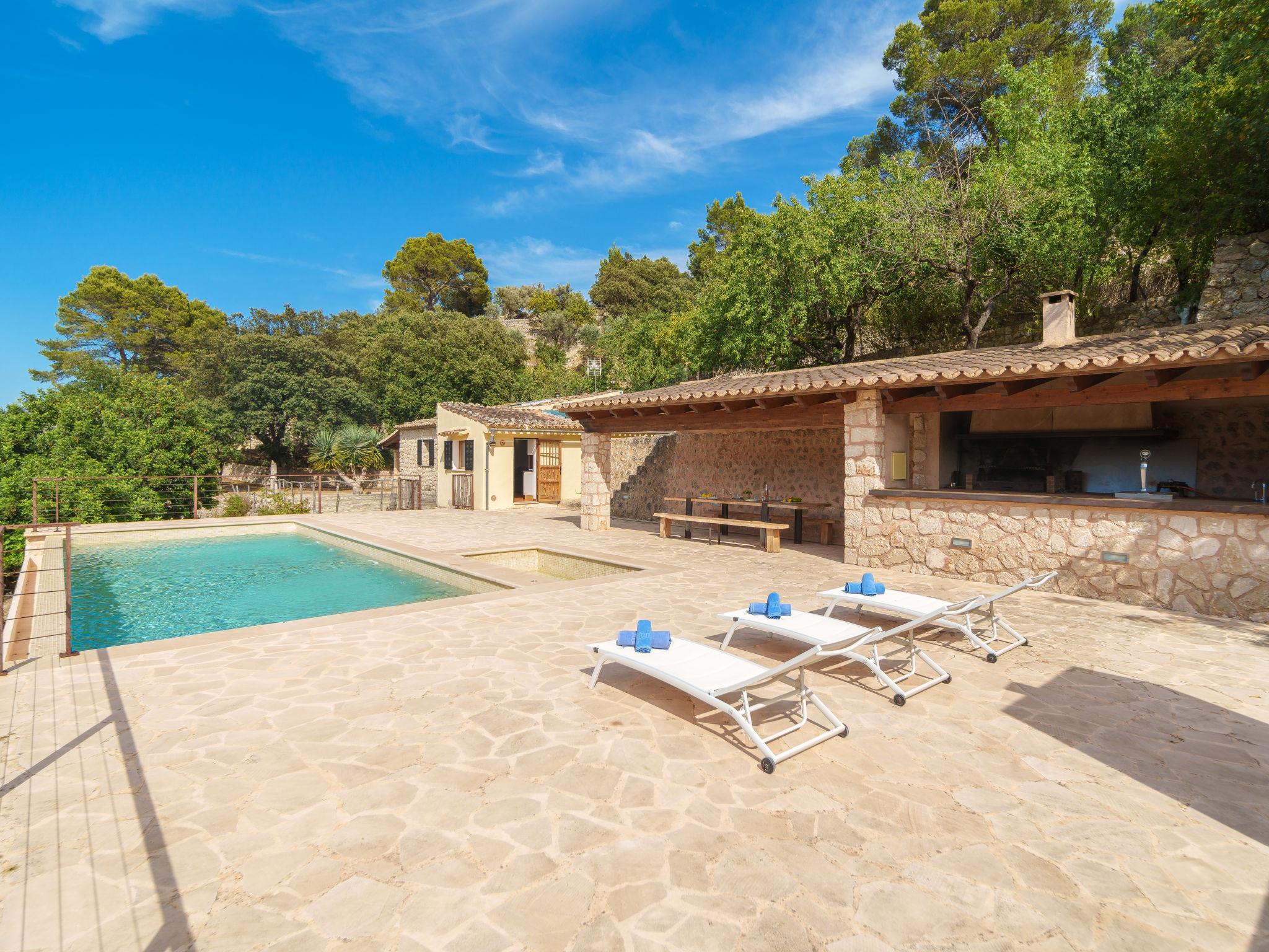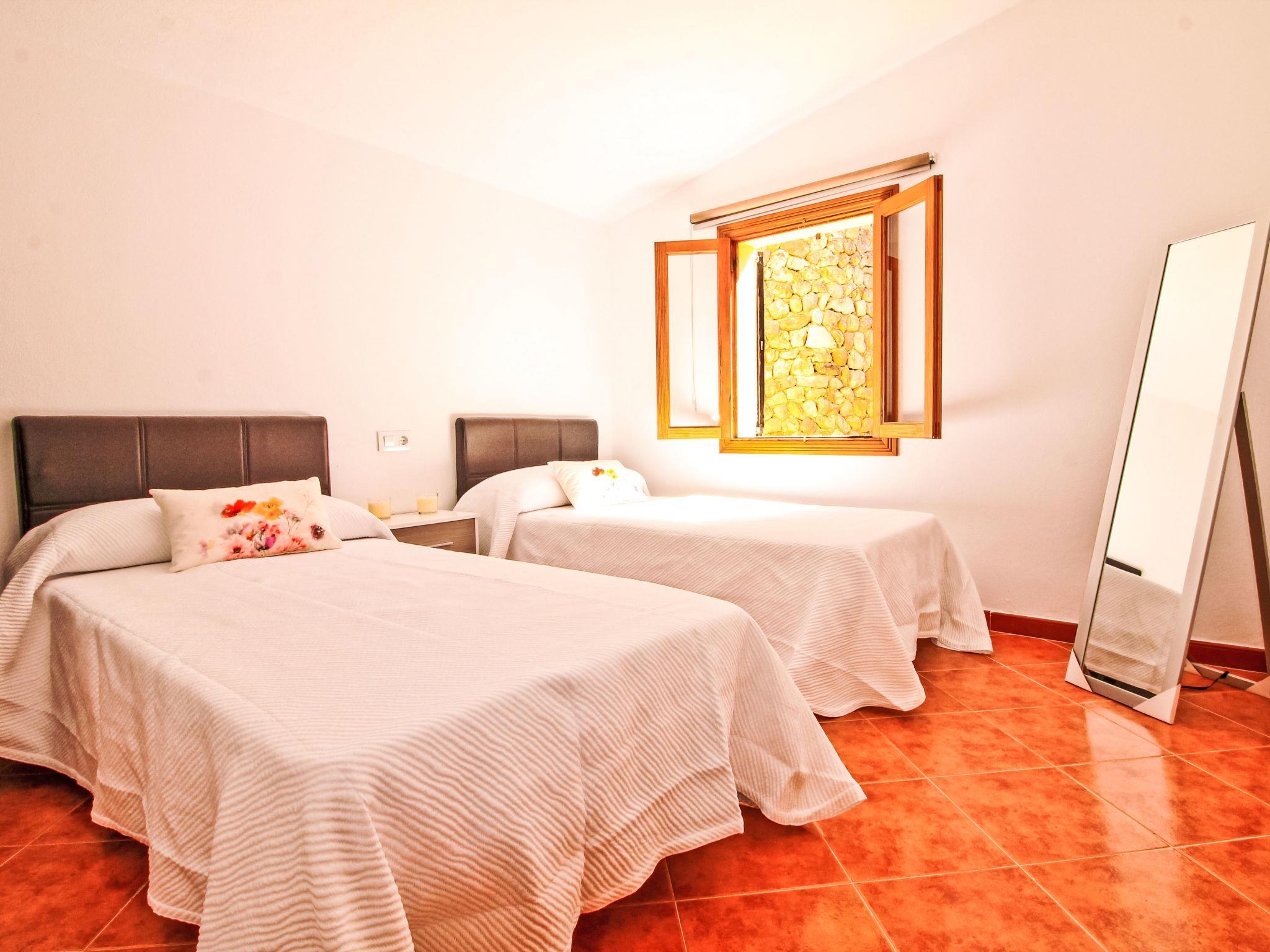 "Petit Can Garcia", 3-room villa 100 m2. Object suitable for 4 adults. Bright, practical and modern furnishings: large living/dining room with dining table, TV, flat screen, air conditioning and forced-air heating. Exit to the patio. 1 double bedroom with 1 double bed. 1 double bedroom with 2 beds (90 cm). Kitchen (4 hot plates, oven, dishwasher, microwave, freezer). Exit to the terrace, to the swimming pool. Bath/shower/WC. Natural stone floors. Comfortable furnishings in the country house style. Large terrace. Terrace furniture, barbecue, deck chairs, covered balcony. Panoramic view of the mountains, the countryside and the town. Facilities: washing machine. Internet (WiFi, free). At the house. Suitable for families. ETV/15948 // Reg. Nr.: ESFCTU0000070220000220140000000000000000000ETV/159489