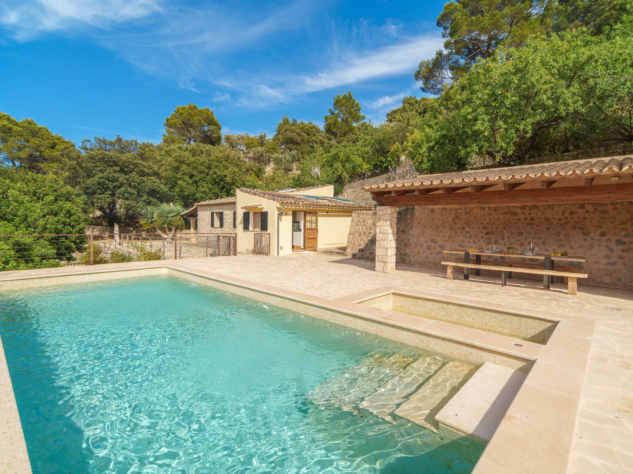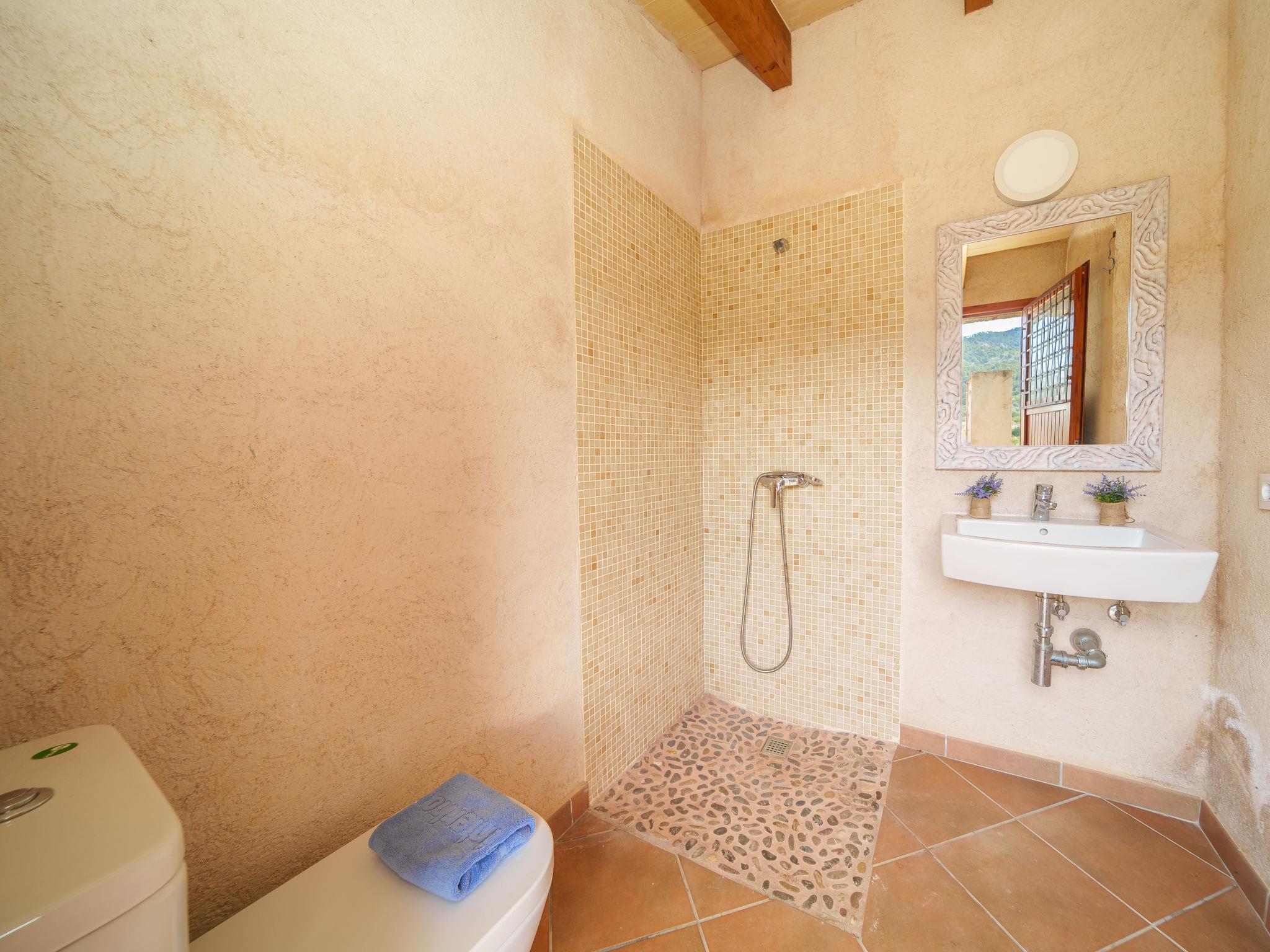 Selva: Very beautiful, comfortable farm estate "Petit Can Garcia", renovated in 2016, surrounded by trees, meadows and fields. Outside the resort, in a quiet, sunny position on top of a hill, 50 m from the edge of the forest, 25 km from the sea, 25 km from the beach, in the woods. Private: natural state property (fenced) with trees, meadow, swimming pool angular (10 x 4 m, depth 150 - 160 cm, seasonal availability: 01.Jan. - 31.Dec.). Shower/WC in the pool area, outdoor shower, terrace, garden furniture, barbecue house. In the house: internet access, WiFi, air conditioning, washing machine. Motor access (via unmade road). Parking at the house. Grocery 700 m, supermarket, restaurant, bar 900 m, bakery 900 m, café, pub garden, 7 minute walk to the centre, bus stop 1 km, sandy beach 27 km pebble beach 27 km, shingle beach 27 km, rocky beach 27 km. Sports harbour 27 km, marina 27 km, golf course (18 hole) 28 km, surf school 27 m, sailing school 33 km, tennis 1 km, riding stable 4 km, sports centre 1 km, cycle lane 200 m. Please note: suitable for families, suitable for seniors. Object suitable for 4 adults groups of teenagers on request only. Loading and unloading of baggage is possible at the holiday house.