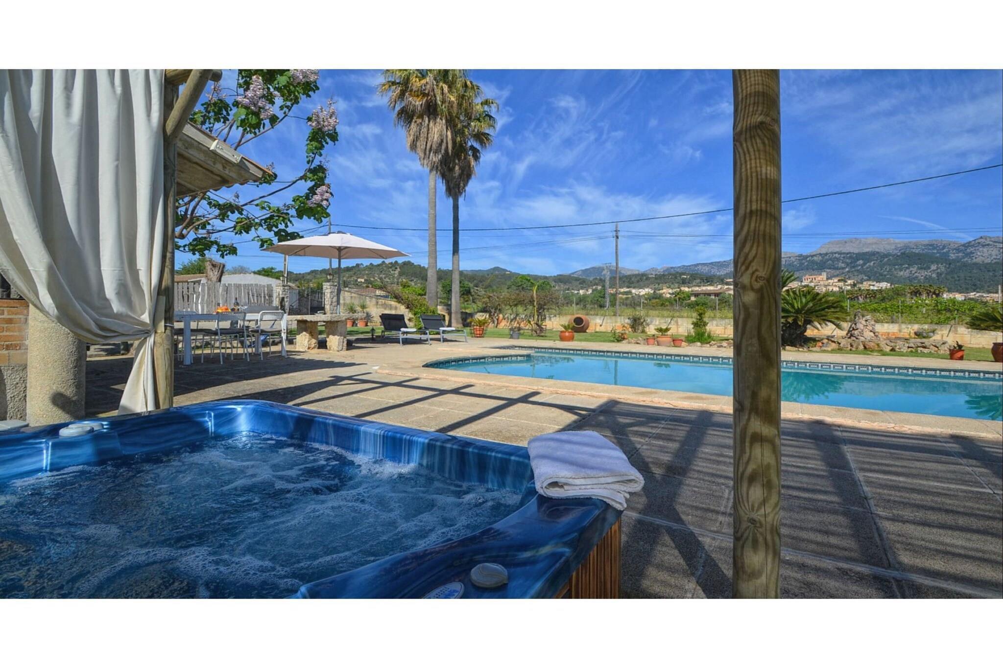 Stor ejendom beliggende i udkanten af den maleriske landsby Selva i Sierra de Tramuntana (WorldHeritage). Med en meget økonomisk pris har huset luksuriøse faciliteter og funktioner: et moderne udendørs jacuzzi, grillplads, en stor pool med liggestole og paraplyer, overdækket garage, WIFI internet eller delvis aircondition af huset. Huset har plads til 6 personer fordelt på tre soveværelser med dobbeltsenge og to badeværelser. Dette hus er en god mulighed for familier med børn, vennegrupper eller grupper af cyklister.