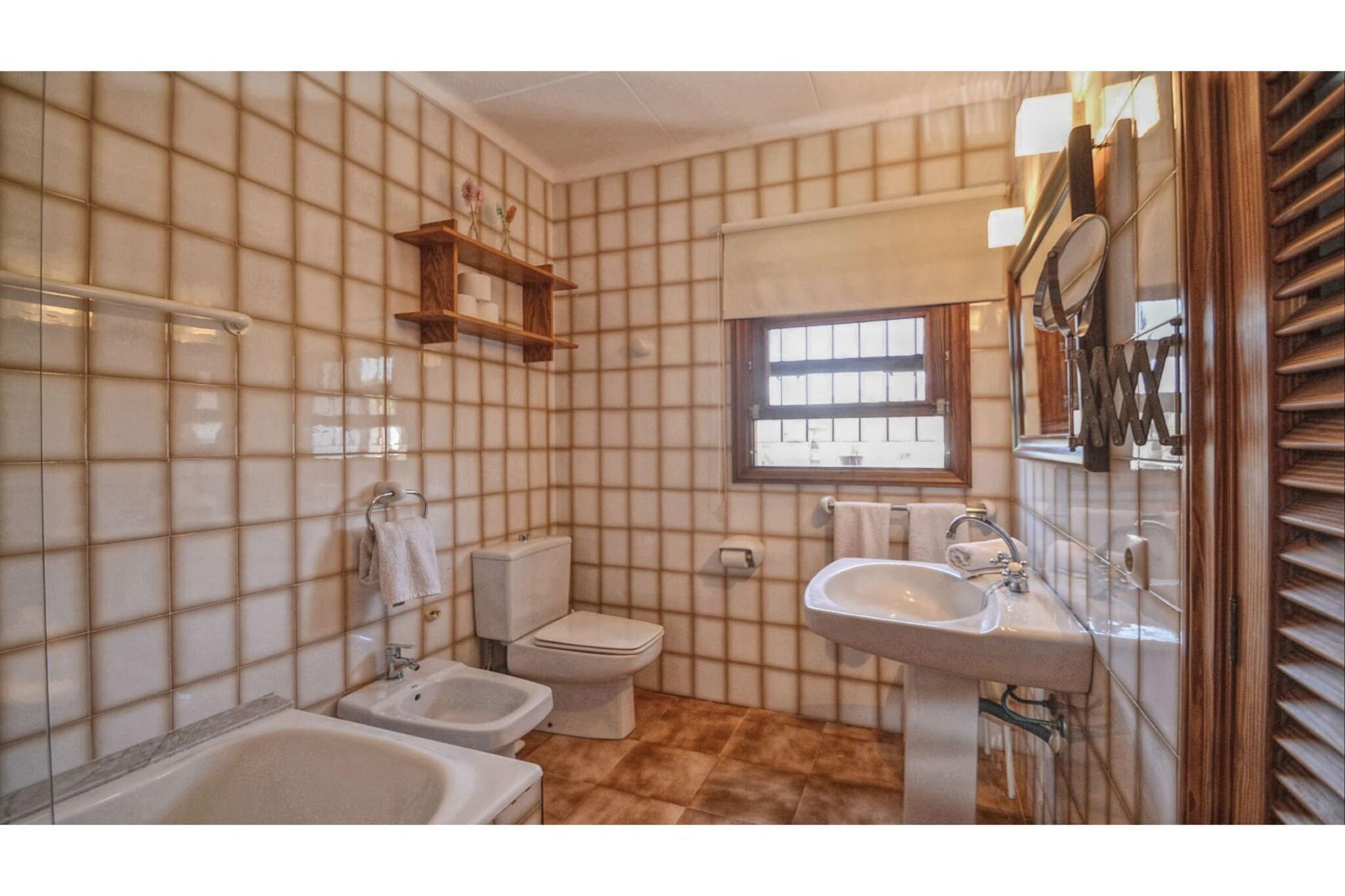 Stueetage: (Køkken(elkedel, brødrister, komfur, kaffemaskine, ovn, mikrobølgeovn, opvaskemaskine , køleskab, fryser, tørretumbler, strygebræt, strygejern), stue / spisestue(Fjernsyn(parabol), CD-afspiller, klimaanlæg), soveværelse(dobbeltseng eller 2 enkeltsenge Senge, klimaanlæg), soveværelse(dobbeltseng eller 2 enkeltsenge Senge), soveværelse(dobbeltseng eller 2 enkeltsenge Senge, klimaanlæg), badeværelse(badekar, håndvask, toilet, bidet)) Kælderetage: (badeværelse(bruser, håndvask, toilet)) Bubble bath, bruser(udendørs), varme, terrasse, havemøbler, solstole, grill, parkering, swimmingpool(privat, 10 x 5 m.)