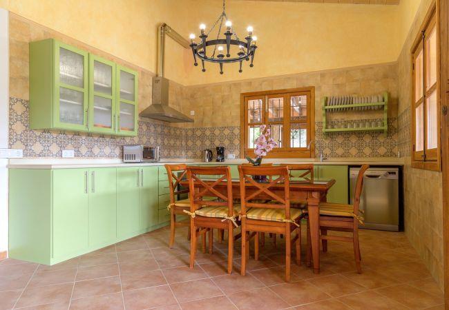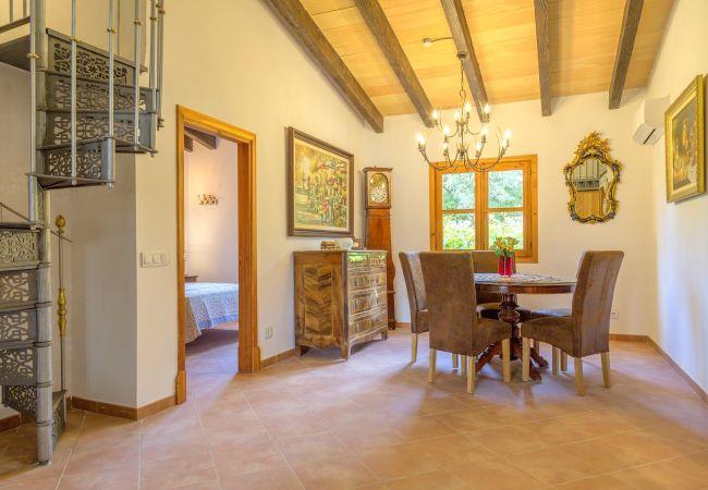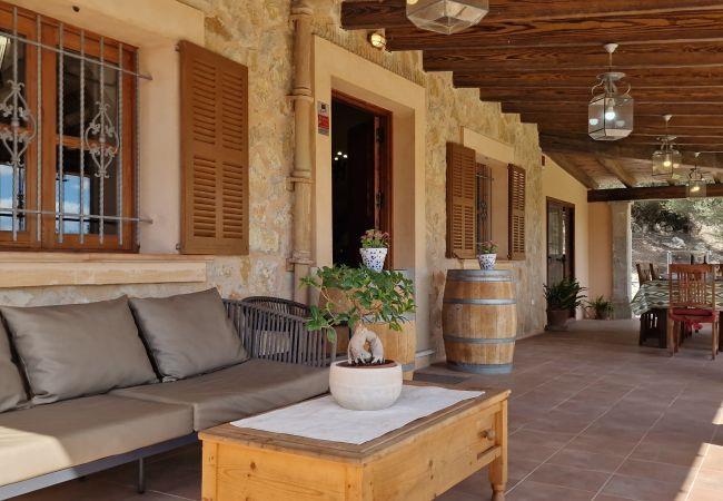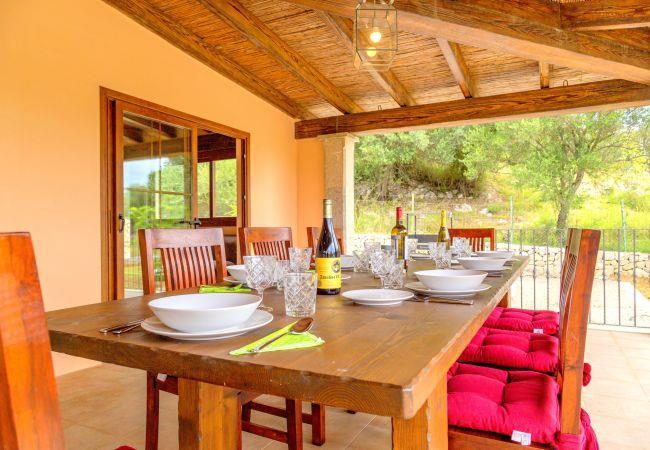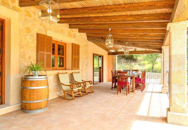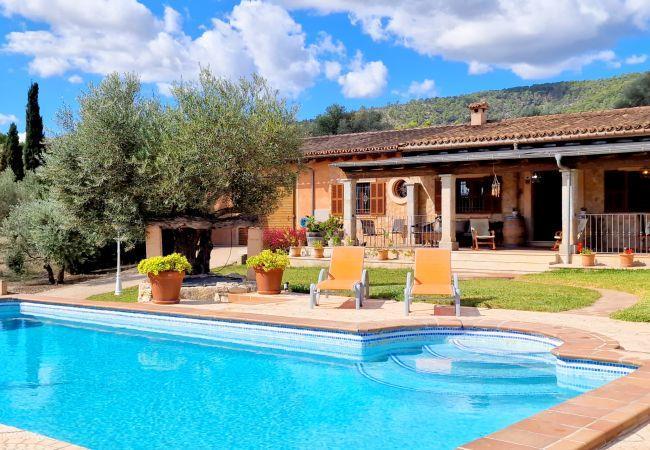Imagine a charming villa situated in a picturesque area, surrounded by majestic mountains that offer an impressive panorama in every season. This refuge stands out for its large garden, where lush vegetation intertwines with a vineyard that invites you to enjoy a good wine under the sun.The villa has a beautiful pool, ideal for refreshing on warm days, and a lovely terrace equipped with comfortable outdoor furniture, perfect for relaxing while admiring the impressive mountain views. With four double rooms, it can comfortably accommodate eight people, making it the ideal place for families or groups of friends.The two bathrooms, one with a shower and the other with a bathtub, offer comfort and style, while the fully equipped kitchen will allow you to prepare delicious meals with fresh local ingredients. In addition, you will be connected to the world with the available wifi and enjoy your favourite programmes on satellite television.This corner of tranquility and natural beauty is the perfect setting for an unforgettable holiday, where every sunrise and sunset becomes a spectacle worth remembering.IMPORTANT. For bookings from BOOKING and VRBO: The customer must pay in advance 30% of the total of their reservation through a completely secure payment link or by bank transfer, the rest will be paid on the day of their arrival or 10 days before.-As you already know, in some areas there is a mandatory payment tax called an ecotax, used by public bodies for the preservation of the environment. In the Balearic Islands we must charge this tax to our customers, the amount is €2 per night and per person up to eight nights, from the ninth night onwards €1 per night and person will be charged.-GROUPS OF YOUNG PEOPLE UNDER 30 YEARS OF AGE WHO WISH TO BOOK MUST DO SO BY REQUEST.-PARTIES AND EVENTS ARE PROHIBITED.-Tourist tax not included.