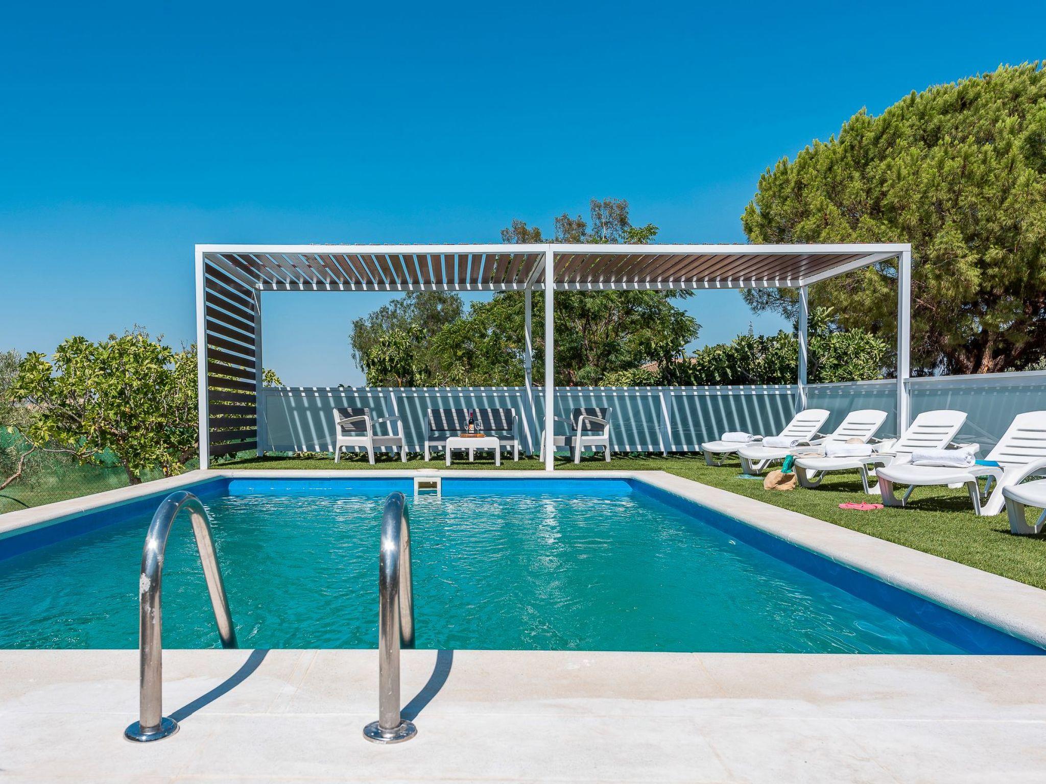 Elevated swimming pool of 6,20 x 4,30 m. and depth 1,10 to 1,45 m. with solarium area.