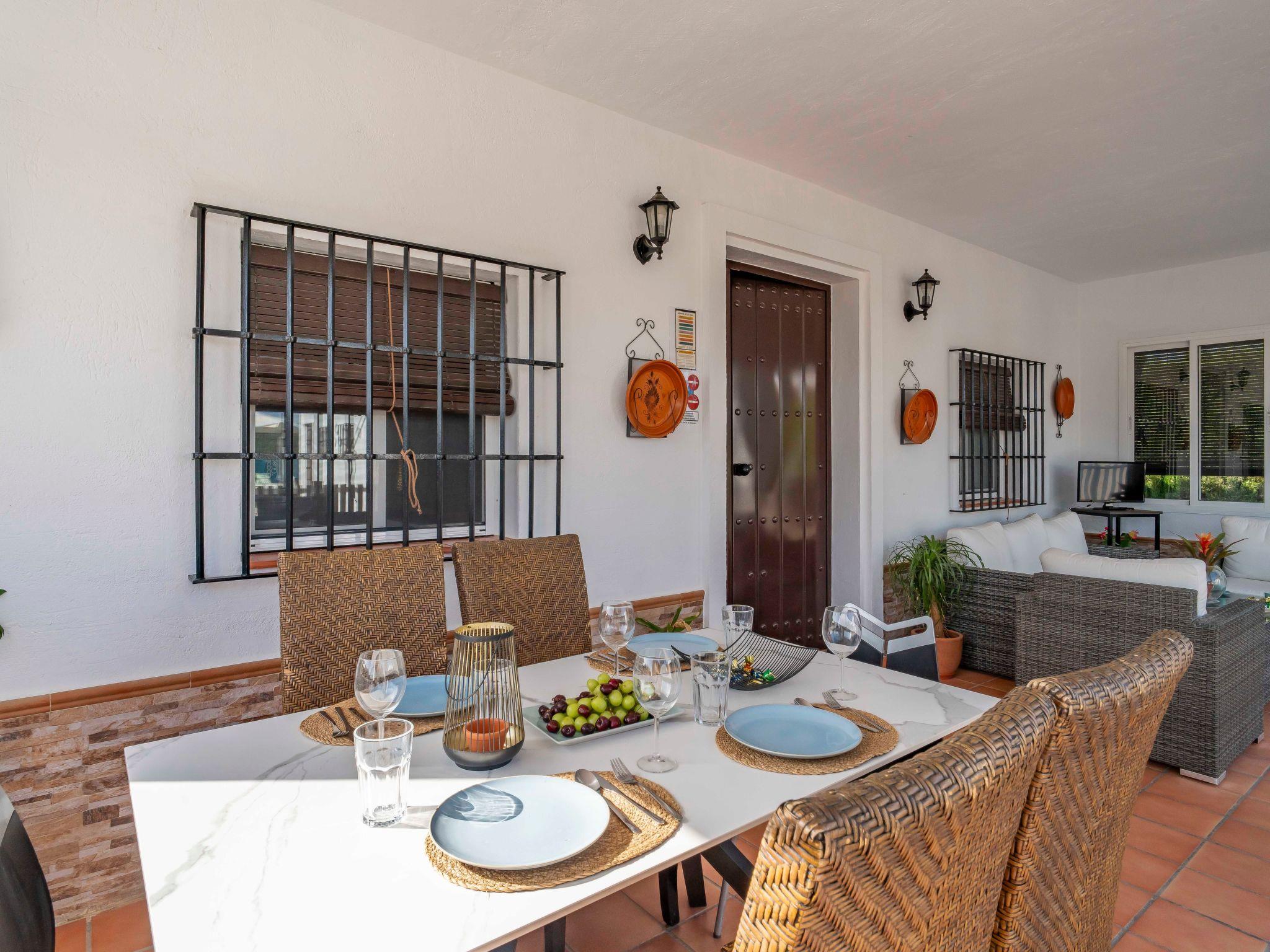Porch 28 m2 house facing the pool with table and outdoor lounge with tv 32?.