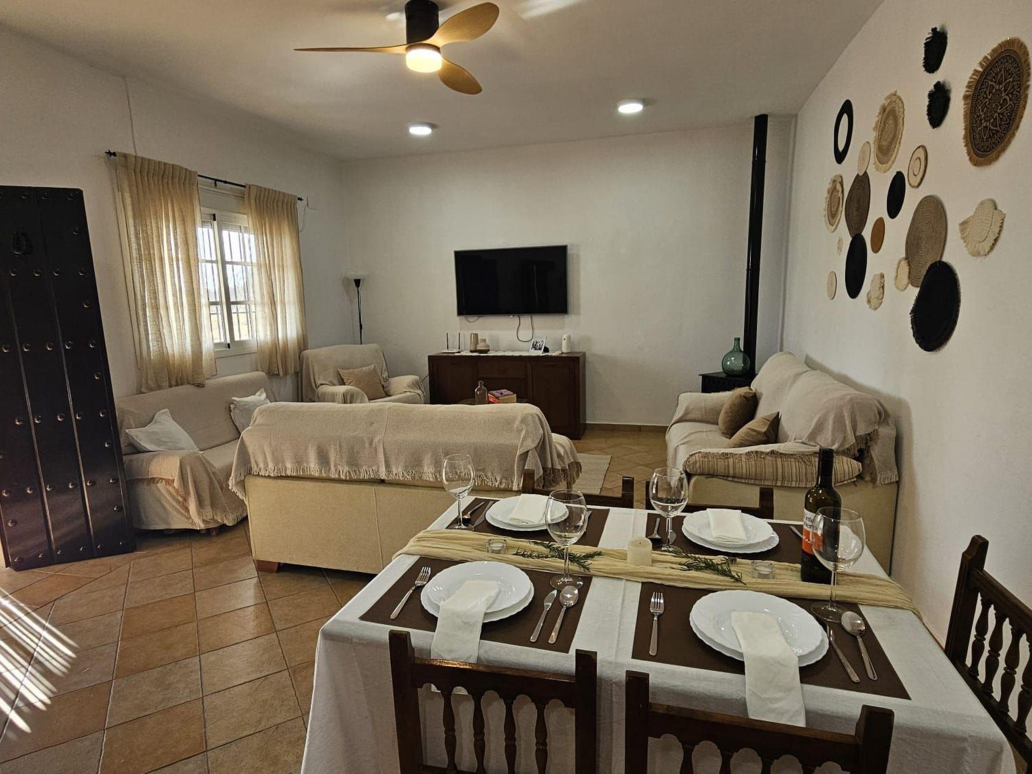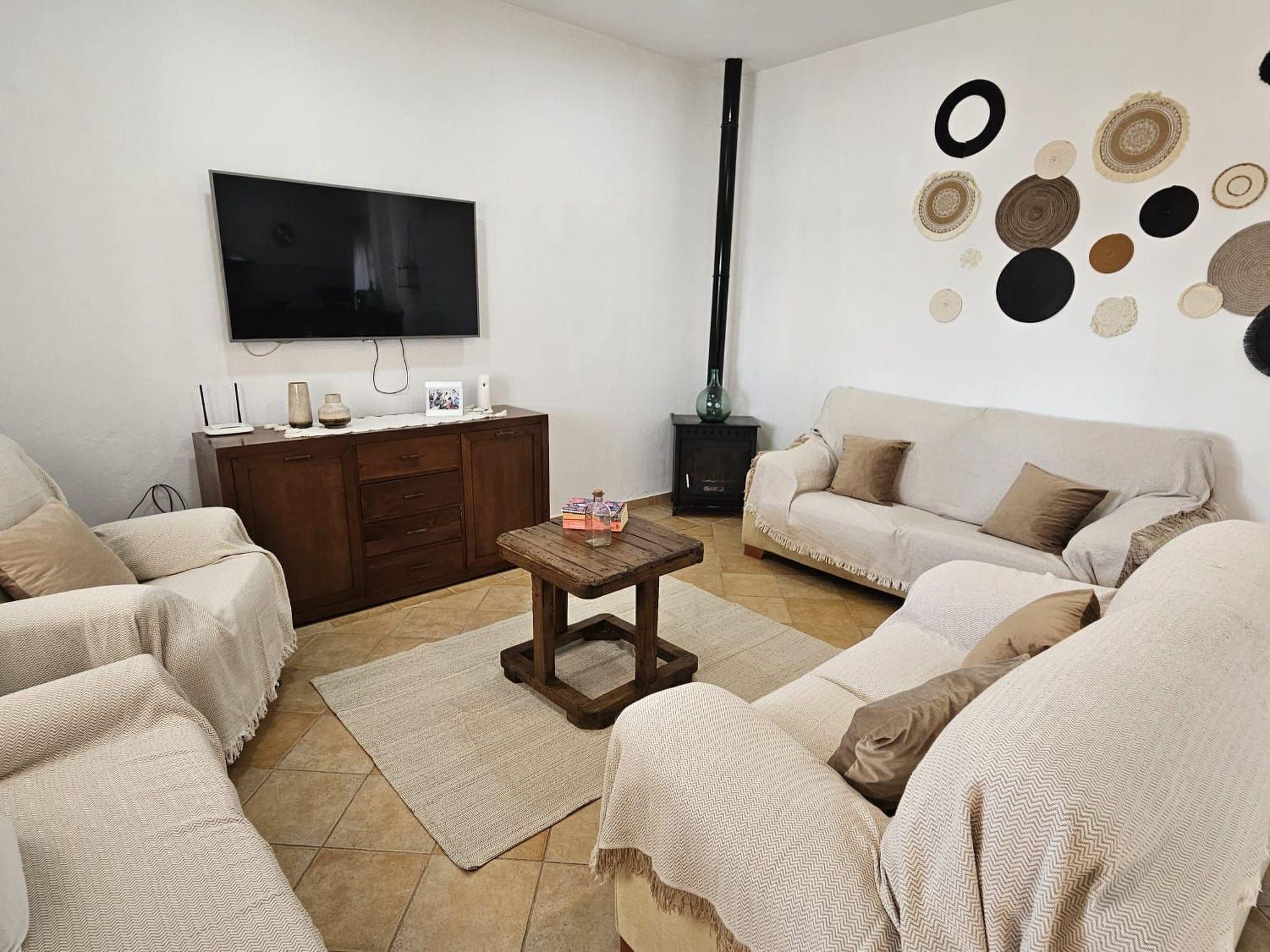 Living-dining room with fireplace, air conditioning, TV 55? with international channels, Wifi.