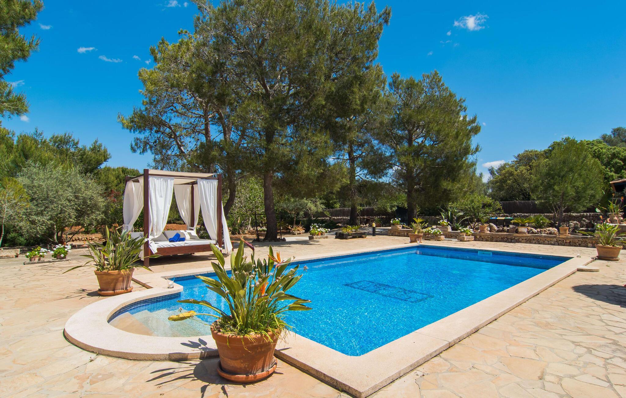 Den landlige villa "Son Mulet de Llubí" er en oase af fred og det ideelle feriested for et forelsket par eller en lille familie. En kærligt designet have med stor sans for detaljer venter dig ved huset. Terracotta spande fyldt med planter, gamle vognhjul lænet op ad stammerne af høje fyrretræer, en rusten grøn cykel og mere giver et smukt helhedsbillede, som tilfældigt. Mens de gamle træer giver masser af skygge, inviterer naturstensterrassen omkring den store pool til solbadning. Du kan forkæle din hud med lidt afslapning under halmparaplyer eller på den balinesiske seng. Der er et dejligt opholdsområde med komfortable stole på den overdækkede terrasse ved huset. Det perfekte sted at nyde måltider tilberedt på den nærliggende murstensgrill. Dette er et Fincallorca feriehus. Den overdækkede terrasse fører ind til villaens indre. Huset er hyggeligt og rustikt og er indrettet med en masse kærlighed. Et åbent opholds- og spiseområde byder på plads nok til alle besøgende med en smuk sofa og tv-hjørne, en stor pejs til de kolde dage og et spisebord. Villaens køkken er lille, men pænt og er ligeledes integreret i dette rum. Lyse vægge og gulvfliser kombineret med de varme farver i træmøblerne og loftsbjælkerne giver hele rummet en hyggelig atmosfære. En lille gang fører til de to soveværelser og badeværelset. I det første soveværelse sørger to senge på 0,90 x 1,90 for en afslappende søvn, i det andet soveværelse er der en stor dobbeltseng på 1,60 x 1,90 m. Begge værelser er indrettet med kærlige detaljer og har hver et stort klædeskab og en kommode skuffer med god plads til din feriegarderobe. Det lyse badeværelse med bruseniche fra gulv til loft er moderne og funktionelt. Llubí er en lille, søvnig landsby på den nordlige fod af den store ø-sletten Es Pla. Byen er kendt for sine lækre kapers, som dyrkes på de omkringliggende marker. Disse kan naturligvis også købes på det ugentlige marked på Placa de la Carretera. Hvis du foretrækker noget lidt mere travlt, kan du nå øens mest berømte bondemarked i Sineu på blot et kvarter. Det tager omtrent samme tid at komme til Inca, Eldorado for sko og læder. Herfra kan du også hurtigt nå øens hovedstad Palma via MA-13 ????motorvejen til en obligatorisk dagstur. I den store bugt Alcúdia, også kun 20 minutter væk i bil, er der ingen grænser for fornøjelsen ved at svømme i havet på de kilometerlange sandstrande. Ser du, villaen "Son Mulet de Llubí" er både en oase af fred og et perfekt tilflugtssted og et godt udgangspunkt for begivenhedsrig ø-udforskning. I den nordlige del af Mallorca, i trekanten mellem Inca, Sineu og Muro, ligger denne perle af en villa, "Son Mulet de Llubí", i en absolut rolig beliggenhed. Den drømmende by Llubí, bygget på to bakker og kendt for de bedste kapers på øen, ligger kun 5 km fra villaen. Små indkøbsture kan gennemføres hver tirsdag på det ugentlige marked på Plaça de la Carretera. For større shoppingture er butikkerne i Inca eller Sa Pobla kun 15 minutter væk. De smukke strande i Alcúdia-bugten er ikke meget længere væk.