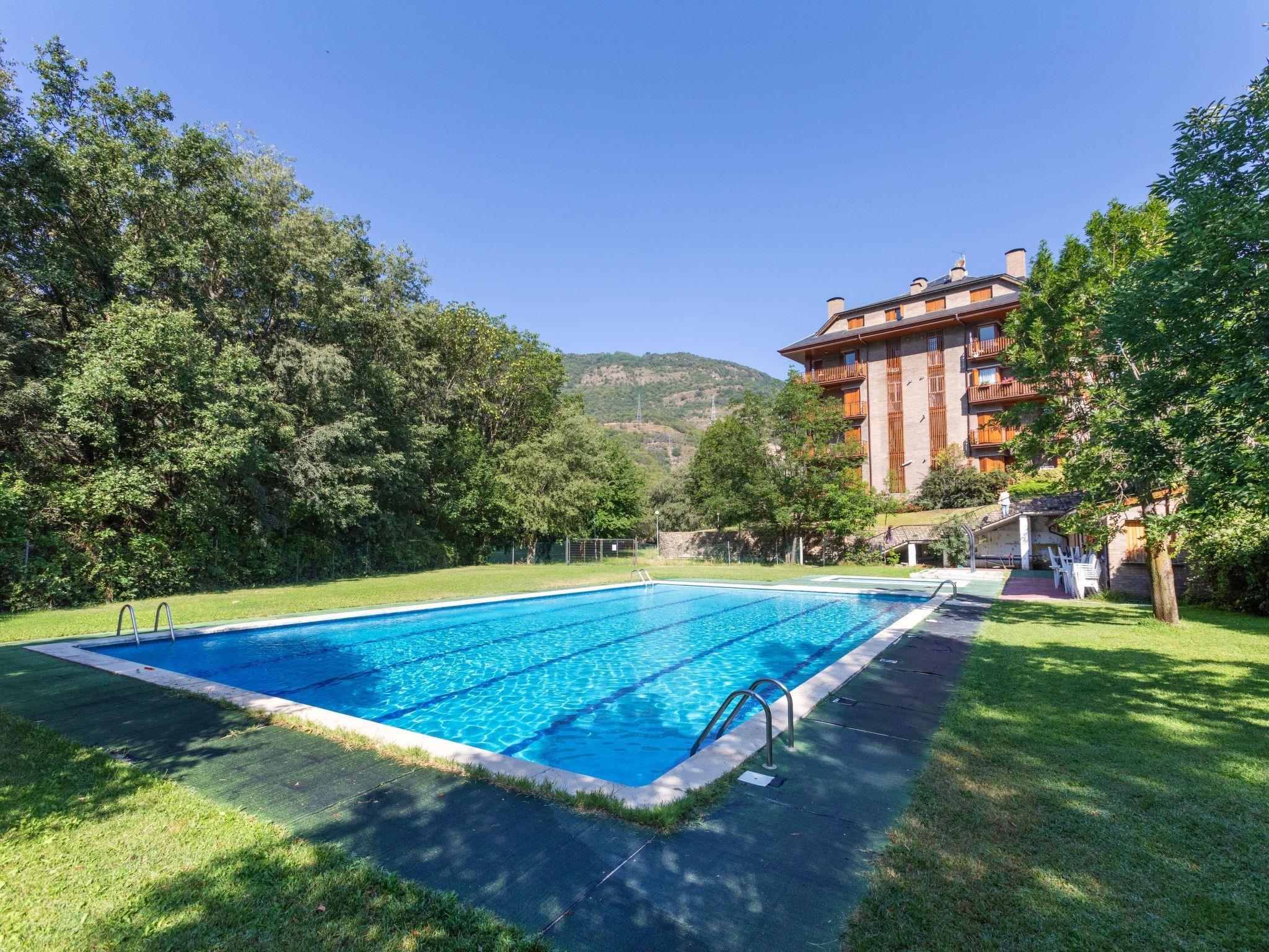 Modern, comfortable apartment block. Residential area (villas), 25 km from the skiing area. For shared use: garden with lawn, swimming pool angular (15 x 7 m, depth 120 - 250 cm, seasonal availability: 01.Jun. - 30.Sep.). Children's pool, outdoor shower. In the house: lift. Roofed, parking, public parking on the road. Supermarket 650 m, restaurant, bar 100 m, bus stop "Estació d'Autobusos de Sort" 650 m, railway station "La Pobla de Segur" 28 km. Nearby attractions: Llavorsi 15 km, Esterri dAneu 32 km, Vielha 73 km, Andorra 70 km. Well-known ski regions can easily be reached: Port Aine 25 km, Espot 33 km. Well-known lakes can easily be reached: Llac de Sant Maurici 33 km. Hiking paths: Parc Nacional Aigüestortes 33 km. Please note: car recommended. Neighbourhood highly sensitive to noise. Quietness and good behaviour expected.