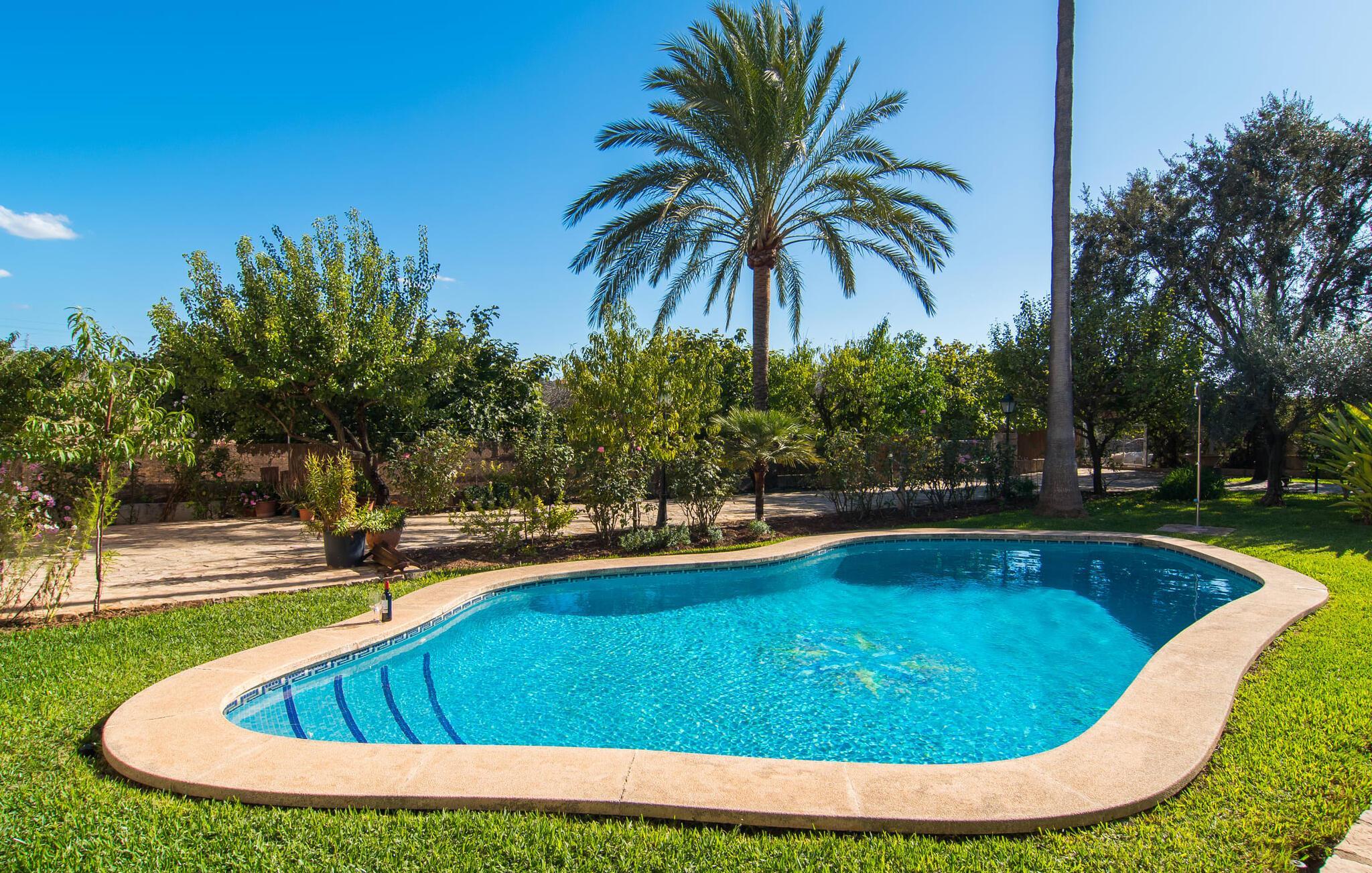 Villaen “Vernissa de Apolonia” ligger på en 14.000 m² stor grund midt i en smuk middelhavshave med meterhøje palmer, der svajer blidt i vinden. Midtpunktet er en stor, skrånende pool med udendørs bruser og område til solbadning. På de komfortable liggestole kan du lytte til de blide lyde fra det rolige Mallorca uden for den slagne turiststi. Dette er et vidunderligt sted at slappe af og nyde jeres tid sammen fuldt ud. De små gæster kan virkelig slippe dampen ud på den omfattende ejendom. Bliver du sulten, kan du hurtigt tilberede en pizza til de sultne munde: Der er udekøkken med kulgrill i et lille udhus lige ved poolen. Det udendørs badeværelse er naturligvis også en del af denne ejendoms luksusfunktioner. Der er et stort spisebord på den overdækkede, skyggefulde terrasse: det perfekte tilflugtssted til de varme eftermiddagstimer. Haven er ikke kun et sted at drømme om dagen: smart udendørsbelysning bader ejendommen i magisk lys om aftenen. Dette er et Fincallorca feriehus. Husets indretning lever fuldt ud op til de forventninger, som det statelige ydre vækker: En blanding af rustikke og moderne elementer samt en venlig, varm farveskala viser ejernes høje standard, som har skabt en ægte feel-good-stemning. Opholds- og spisestue er i stueetagen. Komfortable sofaer foran pejsen inviterer dig til at slappe af; Med Smart TV kan du se dine yndlingsserier selv på ferie. To store spiseborde i træ, hvoraf det ene er i det rummelige, fuldt udstyrede køkken, giver plads til alle gæster. Et badeværelse med dagslys og et af de fem soveværelser er også placeret i stueetagen. Dette soveværelse er indrettet med to enkeltsenge, en kommode og et stort klædeskab. På øverste etage finder du yderligere fire soveværelser, hver til to personer. De individuelt indrettede værelser udstråler en indbydende, hyggelig atmosfære. Et af værelserne har et walk-in-closet, der nemt kan rumme selv den mest omfattende feriegarderobe. På øverste etage er der desuden et dagslysbadeværelse med stor håndvask. Den smukke ejendom uden umiddelbare naboer ligger i en betagende beliggenhed midt i et middelhavskulturlandskab mellem kystbyen Can Picafort og kommunen Santa Margalida. Vi er i regionen Plà de Mallorca, en frugtbar slette, der grænser op til naturreservatet S'Albufera mod nordvest. Parc Natural er åben for offentligheden og byder på en unik naturoplevelse. Grundet husets gode forbindelse til det mallorcanske vejnet kan der nogle gange høres trafikstøj afhængig af vindretning og tidspunkt på dagen. Nyd din ferie i en uberørt region, der ikke kun imponerer dig med sit charmerende landskab, men også med sin nærhed til kysten og flere smukke strande. Can Picafort-stranden ligger omkring ti minutter væk i bil og er særlig populær blandt familier. Den mere stille Platja de Muro er heller ikke langt væk. Sejlads, dykning og windsurfing er en del af det brede udvalg af sportsgrene, der tilbydes i dette område, ligesom den altid populære golfsport. På Alcanada Golf Club kan du spille en 18-hullers bane med en betagende udsigt over kysten og havet. Tramuntana-bjergene kan også nås hurtigt fra dit feriehus: vandrere og cyklister vil finde en række forskellige ruter til en bred vifte af behov. Denne villa ligger i landlige omgivelser nær kystbyen Can Picafort: de fine sandstrande i Alcúdia-bugten er kun få minutter væk. Både Can Picafort og Santa Margalida tilbyder en række shoppingmuligheder. Du kan også drage fordel af adskillige sportslige og kulturelle tilbud i den mangfoldige region. Charmerende landsbyer i det indre af øen formidler et autentisk billede af øen; Kysten vil imponere dig med en farverig blanding af afslappende dage og pulserende natteliv.