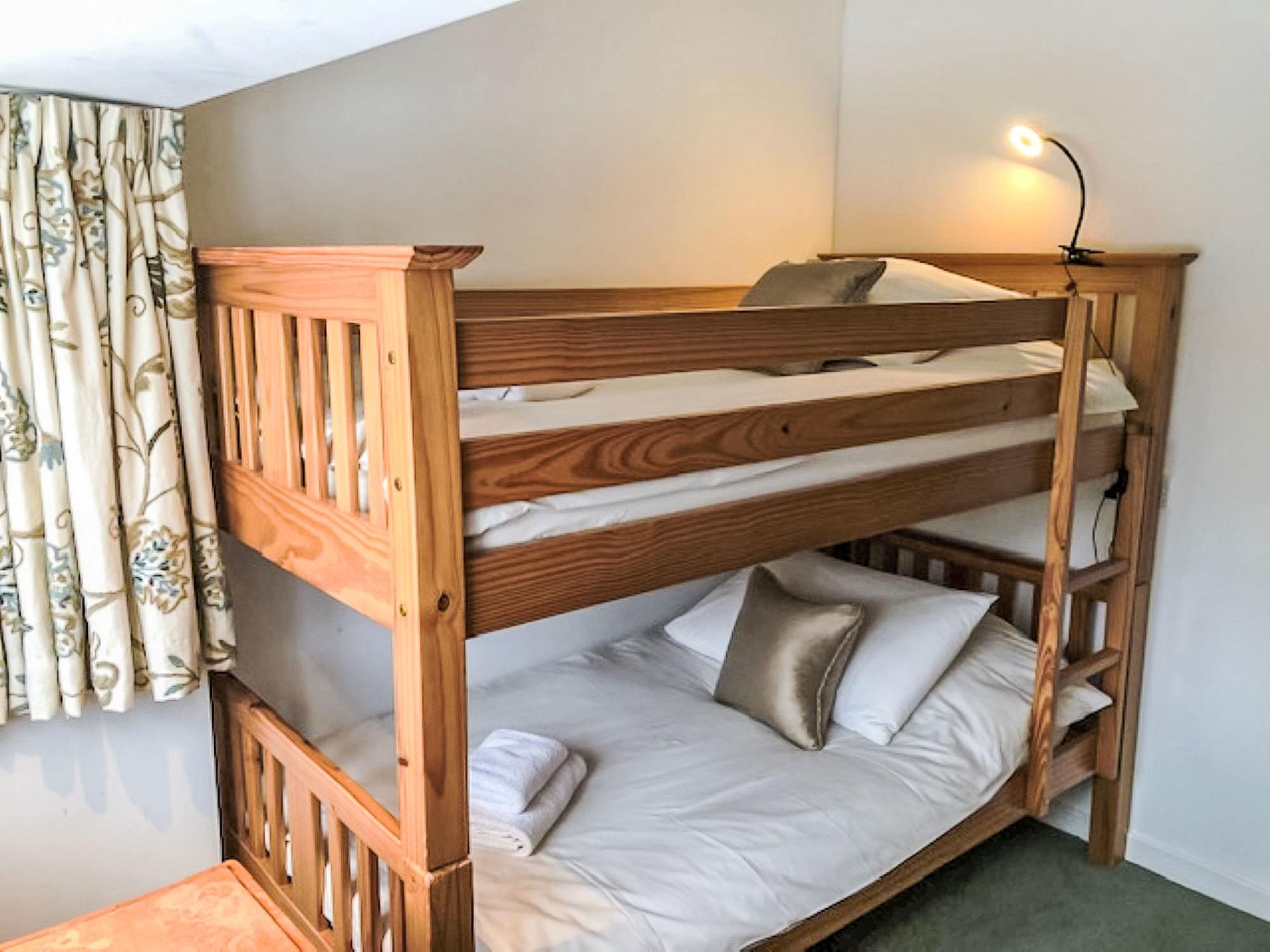 3-room cottage on 2 levels. Tasteful and stylish furnishings: open living room with dining table and TV (flat screen), wood-burning stove. 1 double bedroom with 1 double bed and shower/WC. 1 room with 1 x 2 bunk beds. Open kitchen (4 hot plates, oven, dishwasher, toaster, kettle, microwave, grill). Bath/shower/WC. Upper floor: mezzanine with 1 bed. Facilities: washing machine, children's high chair, baby cot for up to 2 year olds (extra). Internet (WiFi, free). Parking at the house. Please note: suitable for families. Non-smoking house. Maximum 2 pets/ dogs allowed. TV only EN. Private entrance, smoke alarm. The single bed on the mezzanine can be used, however this is not a bedroom (no blinds, so may be too light for some).