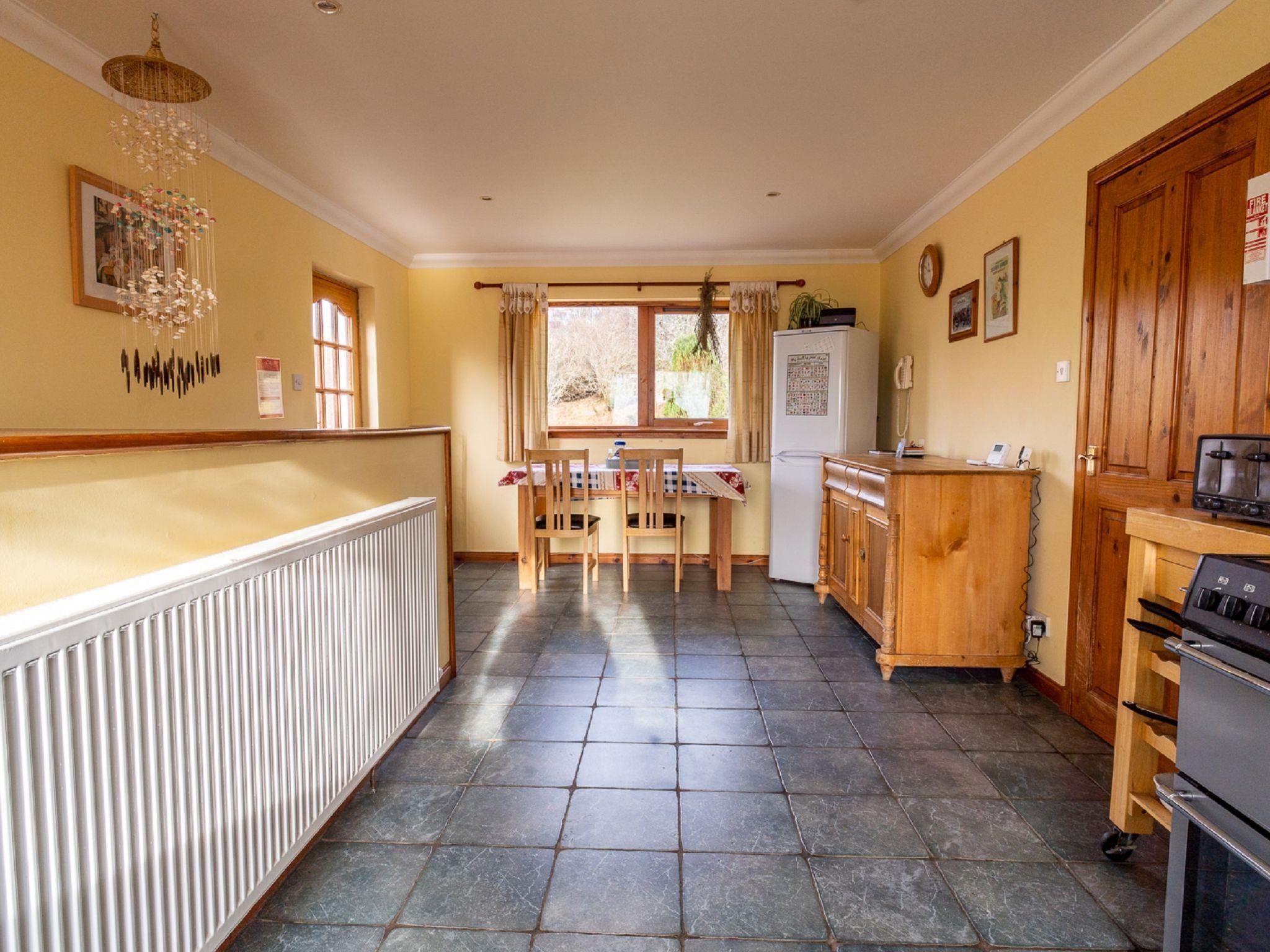 Very beautiful house "Ceilidhtail Cottage", 3 storeys, detached. On the outskirts, 2.5 km from the centre of Drumnadrochit, in a secluded, quiet position on top of a hill, 2 km from the lake. Private: natural garden. Patio, garden furniture. Pre-arrival grocery service. 4x4 car recommended in winter. Parking at the house. Shop 2.5 km, grocery 2.5 km, supermarket 20 km, shopping centre 20 km, restaurant 1.5 km, bar 2.5 km, bakery 2.5 km, café 2 km, 2 minute walk to the centre, bus stop 2 km, railway station 20 km. Golf course (18 hole) 20 km. Nearby attractions: Urquhart Castle 5 km, Loch Ness 2 km, Loch Ness Exhibition Centre 2 km, Fort Augustus 30 km, Jacobite Boat Trips 3 km, Culloden Battlefield 33 km. Well-known lakes can easily be reached: Loch Affric 29 km, Loch Meiklie 9 km. Hiking paths: Great Glen Way 1 km, Abriachan Forest 10 km, Glen Affric 29 km. Please note: car recommended. Suitable for families.