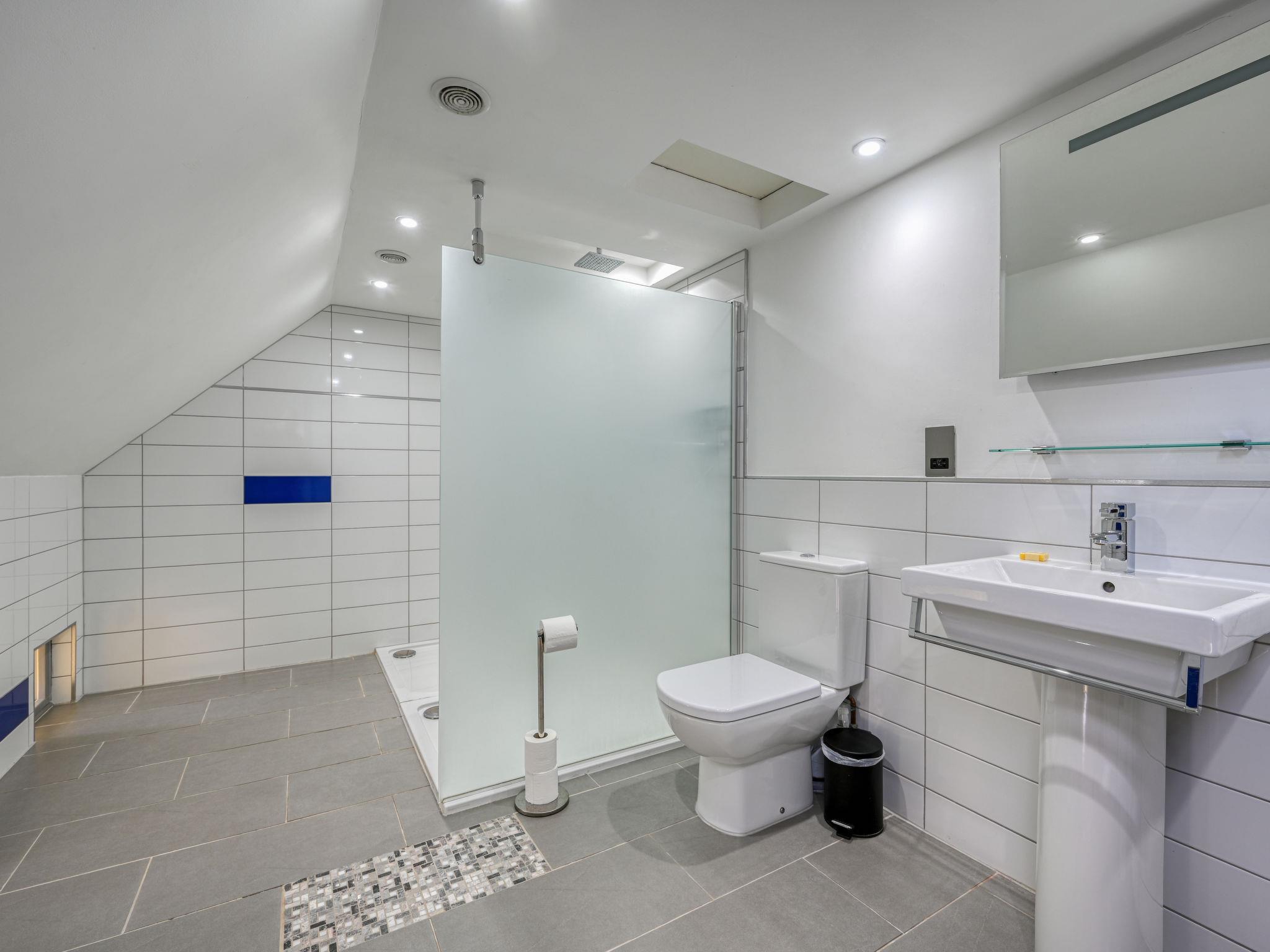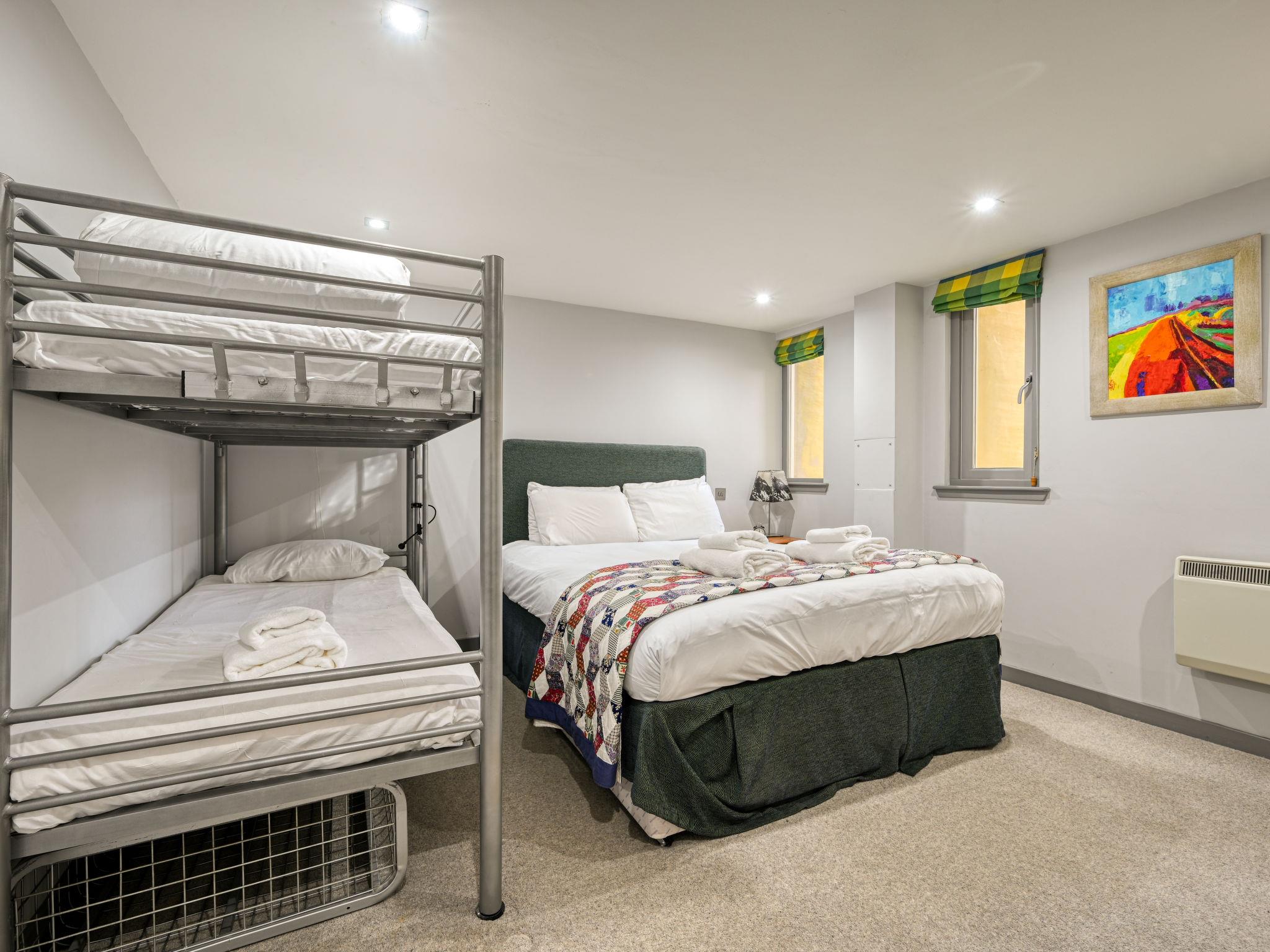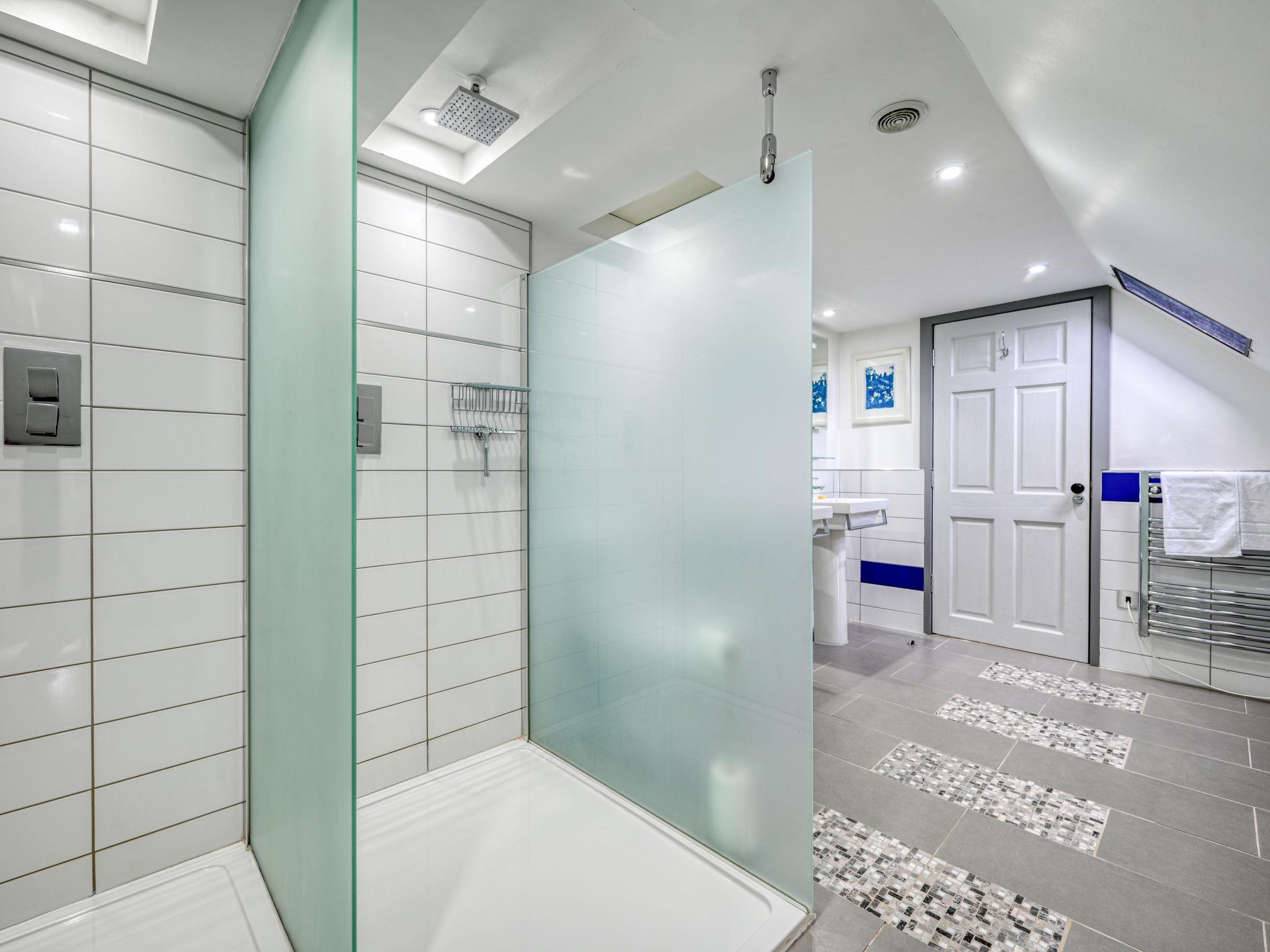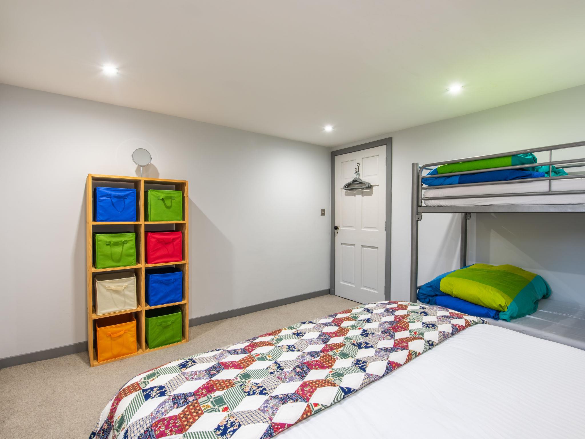 3-room house on 2 levels. Spacious, tasteful and stylish furnishings: 1 room with 1 x 2 bunk beds, 1 double bed. Large kitchen (oven, 6 gas rings, toaster, kettle, microwave, grill) with dining table. Exit to the patio. 2 showers, sep. WC. Upper floor: large living room with TV (flat screen), DVD and DVD collection available. 1 room with 1 bed and shower/WC. Facilities: washing machine (extra). Dryer (extra), baby cot for up to 2 year olds (extra), hair dryer. Internet (WiFi, free). Parking. Please note: non-smoking house. Private entrance, suitable for allergy sufferers, smoke alarm, fire extinguisher. The master bedroom with ensuite has a Super King size bed, which can also be made up as 2 singles on request.