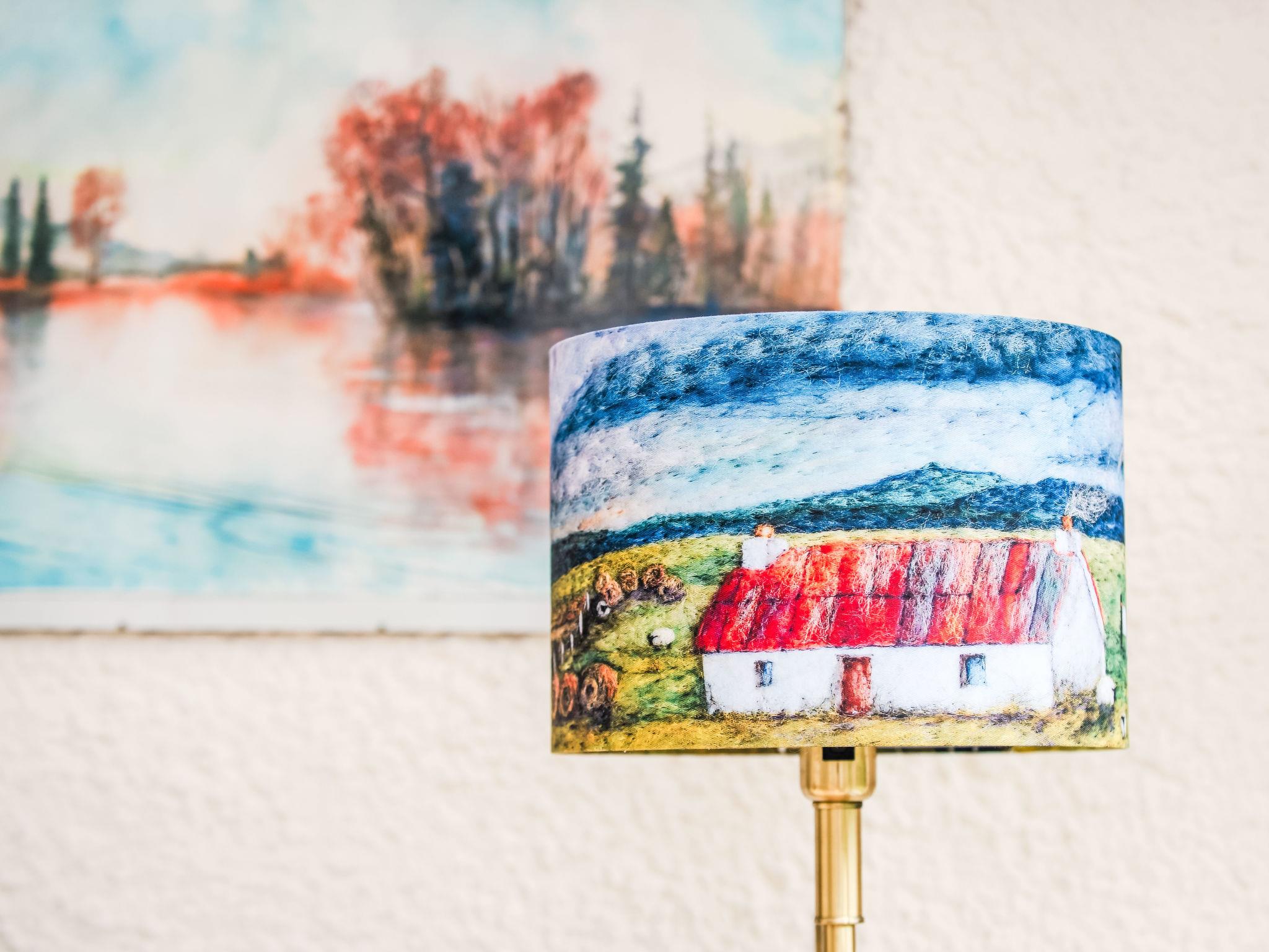 6-room cottage. Spacious and bright, tasteful and stylish furnishings: living room with TV (flat screen), wood-burning stove. 1 double bedroom with 1 double bed. 1 room with 2 beds. 1 room with 1 x 2 bunk beds. Open living/dining room. Kitchen (oven, dishwasher, 4 induction hot plates, microwave, grill) with dining table. Shower/WC. Heating. Upper floor: mezzanine with 1 double bed. Conservatory. Beautiful view of the lake and the countryside. Facilities: washing machine, iron, children's high chair, baby cot for up to 2 year olds (extra), hair dryer. Internet (WiFi, free). Please note: suitable for families one double bedroom is outside the apartment. Property consists of 2 separate properties side by side. One 3 bedrooms and a self contained studio with bedroom.