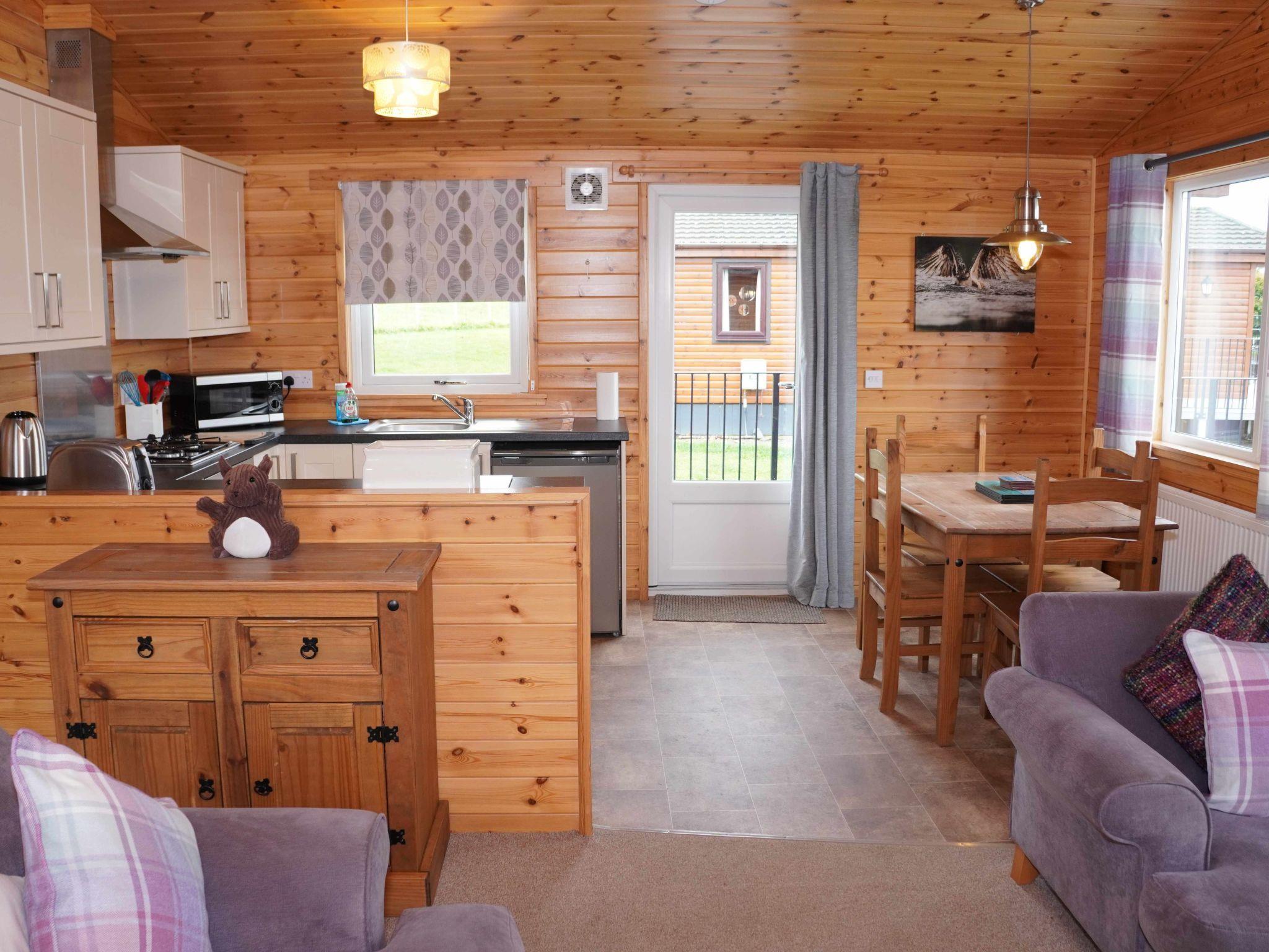 "Osprey Lodge", 3-room chalet 59 m2. Very tasteful furnishings: open living/dining room with dining table and digital TV. Exit to the balcony. 1 double bedroom with 1 double bed. 1 room with 2 beds. Kitchen-/living room (4 hot plates, oven, microwave, freezer). Shower/WC. Heating. Balcony furniture. Beautiful distant view of the lake. Facilities: washing machine. Internet (WiFi, free). Please note: suitable for families. Non-smoking house. Maximum 1 pet/ dog allowed. Please note:- NO CHARGING OF ELECTRICAL VEHICLES PERMITTED - NEAREST CHARGING POINT IS AROUND 4KM. PK12489F