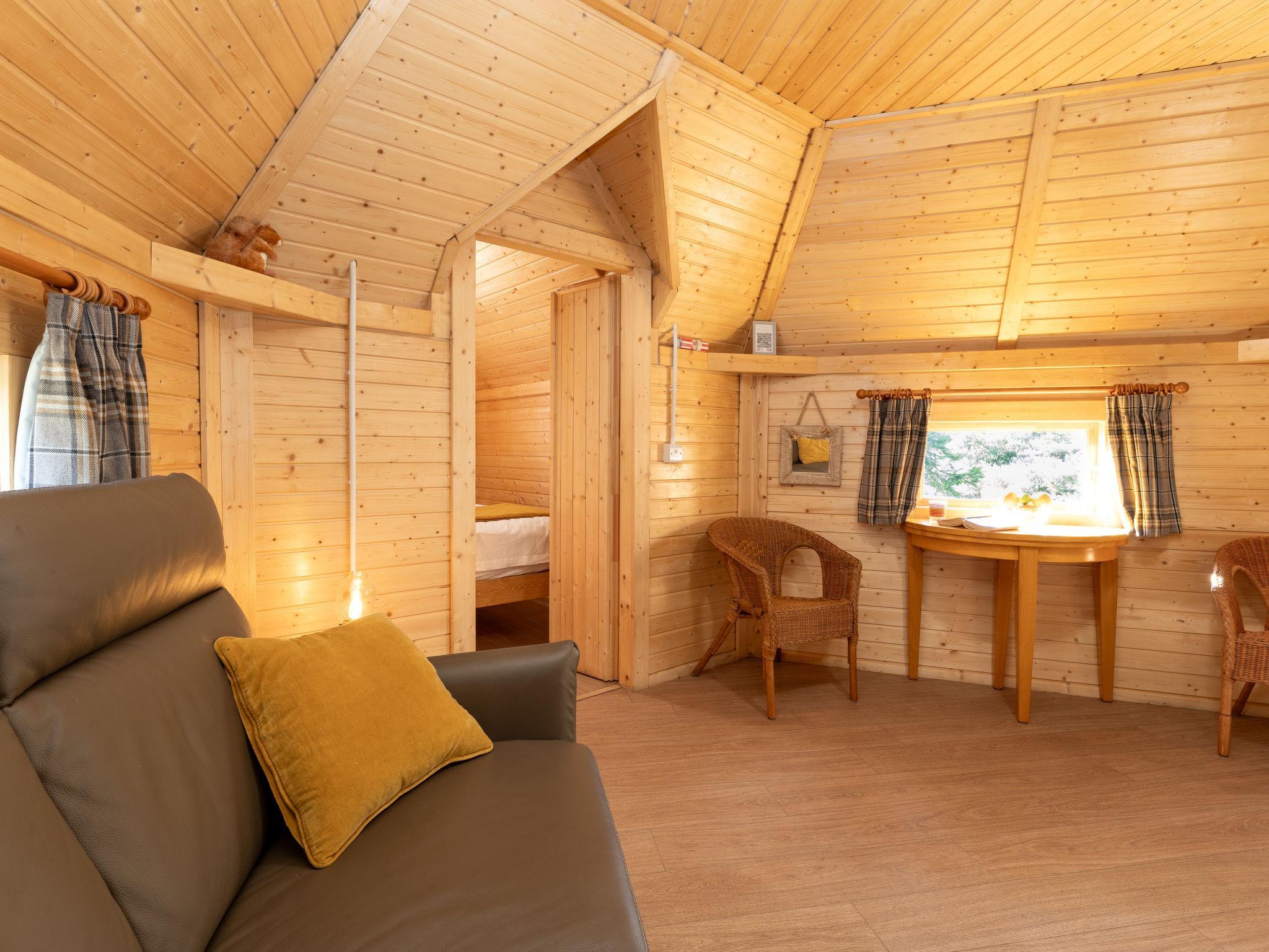 "Hazel Bothy", 2-room chalet. Simple and cosy furnishings: open small living room with 1 sofabed and radio. Exit to the terrace. 1 small double bedroom with 1 double bed. Kitchenette (2 hot plates, oven, kettle) with small dining table, wood-burning stove. Shower/WC. Wood heating. Terrace furniture. Beautiful view of the forest. Parking (1 car) at the house. Please note: fridge without freezer, non-smoking house. Maximum 2 pets/ dogs allowed. Smoke alarm. The property is one of a type of property or apartment.
