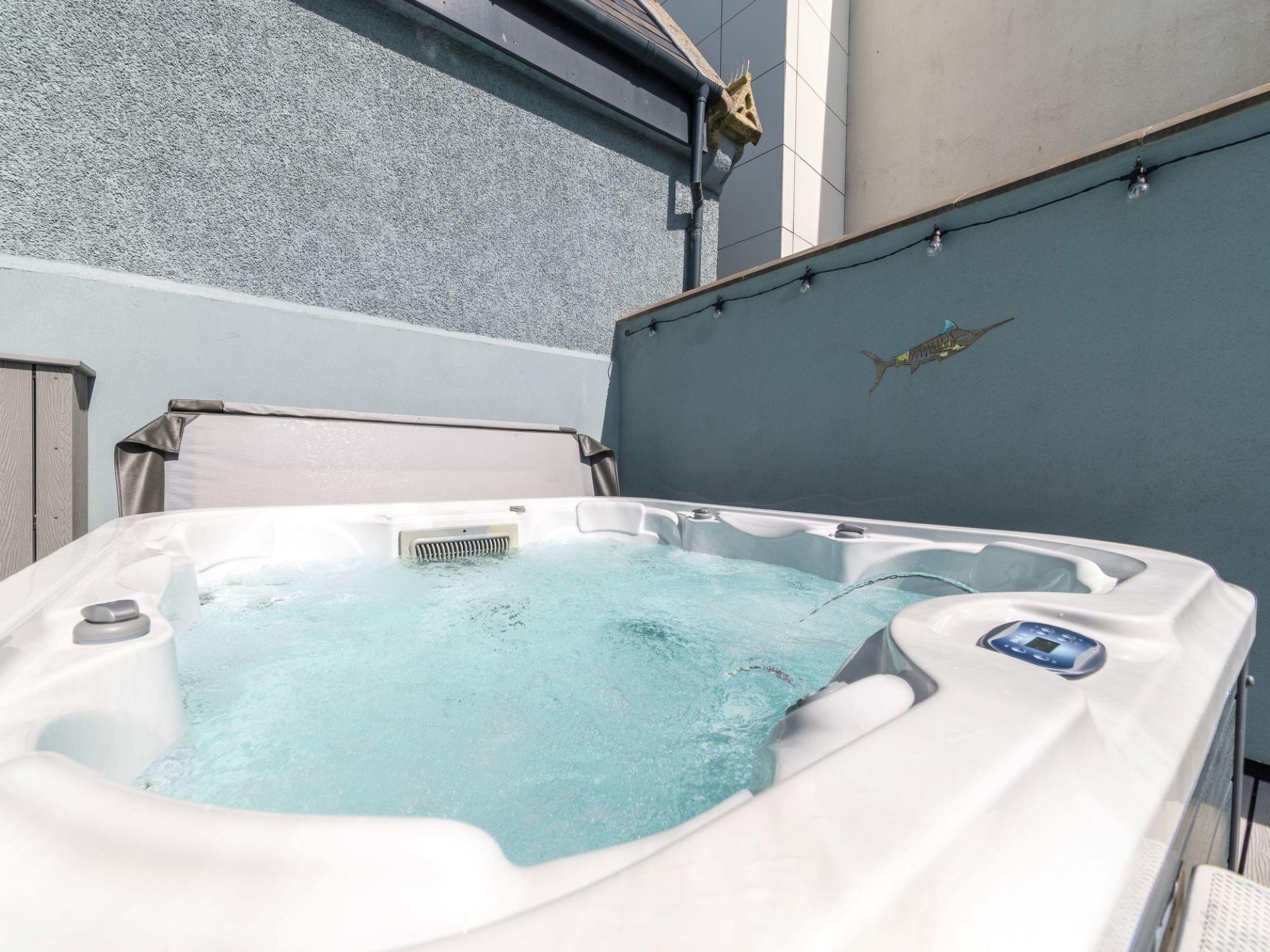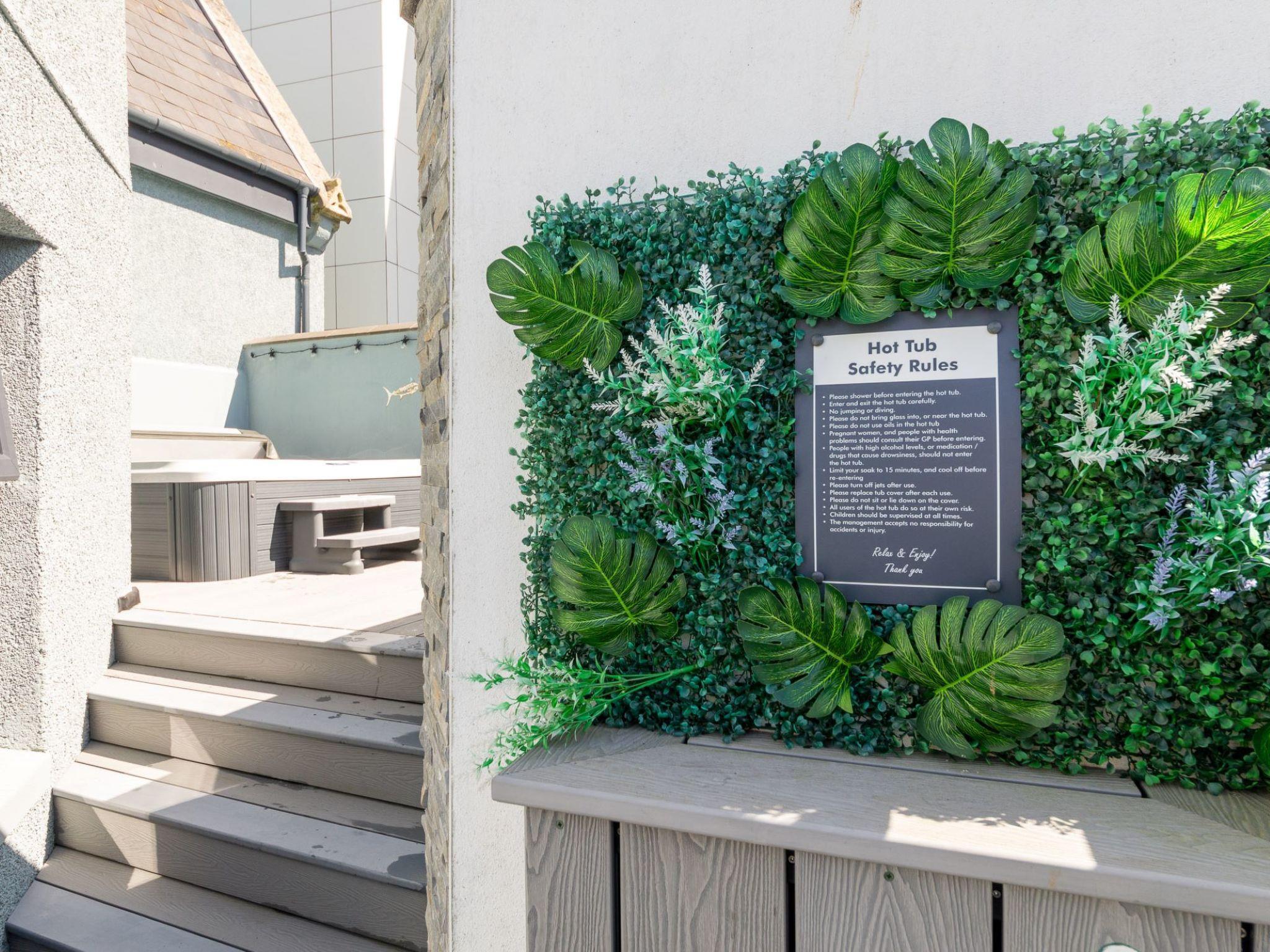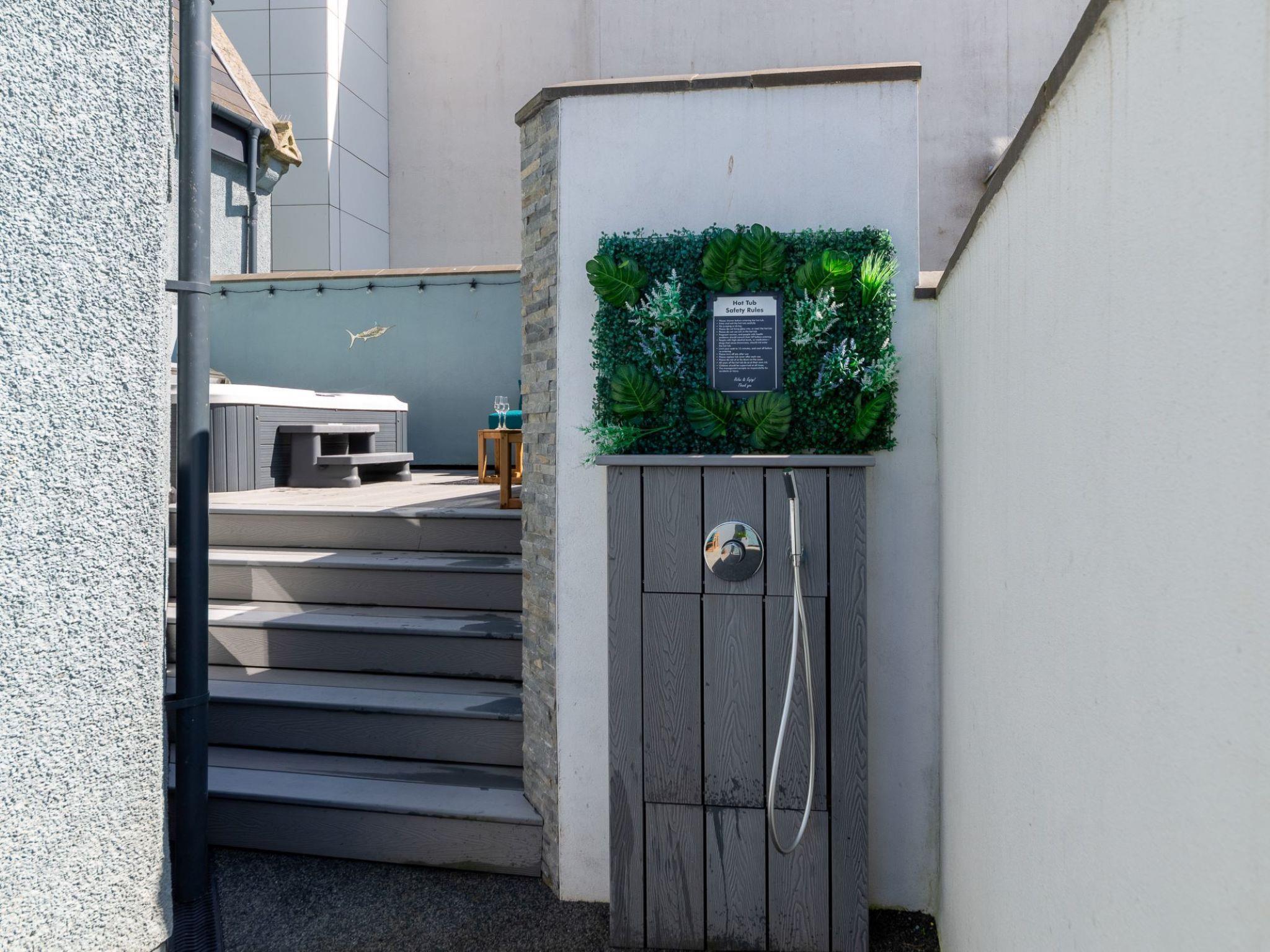Five star luxury living in the heart of Newquay. If your dates are not available online please get in touch to enquire. Beautiful, luxurious house "Tolcarne", 2 storeys. 3 houses in the residence. In the centre of Newquay, in the heart of the city, from the sea, 200 m from the beach. Private: courtyard. Outdoor shower, hot tub. In the house: washing machine, tumble dryer. Parking. E-charging station. Shop, grocery, supermarket, shopping centre, restaurant, bar 200 m, bakery 200 m, café, pub garden 300 m, 1 minute walk to the centre, bus stop "Manor Road" 220 m, railway station "Newquay" 2 km, sandy beach "Towan Beach", diving center 650 m. Golf course (18 hole) 750 m, surf school 200 m, indoor tennis centre 4 km, minigolf 400 m, riding stable 2 km, sports centre 4 km, children's playground 3 km, fishing possibilities 200 m. Nearby attractions: Blue Reef Aquarium 300 m, Fistral Beach 1 km, Watergate Bay 6 km, Newquay Zoo 3 km, Porth Beach 3 km, Crantock Beach 7 km. Hiking paths: Fistral, Crantock and Newquay Circular 1 km, South West Coast Path 1 km, Bedruthan Steps 6 km. Please note: suitable for families. Additional accommodations can be booked. The complex has another 2 houses for rent.