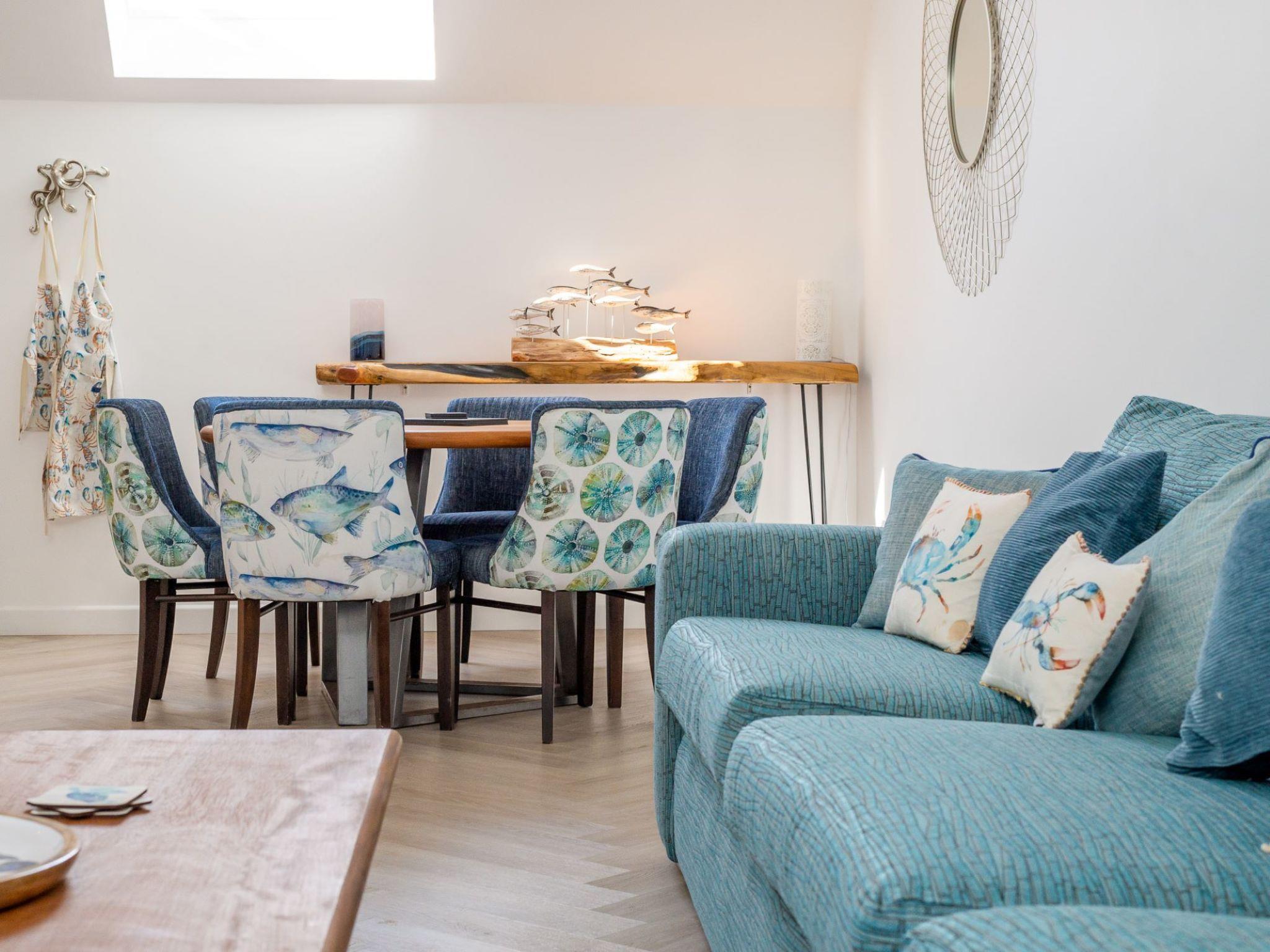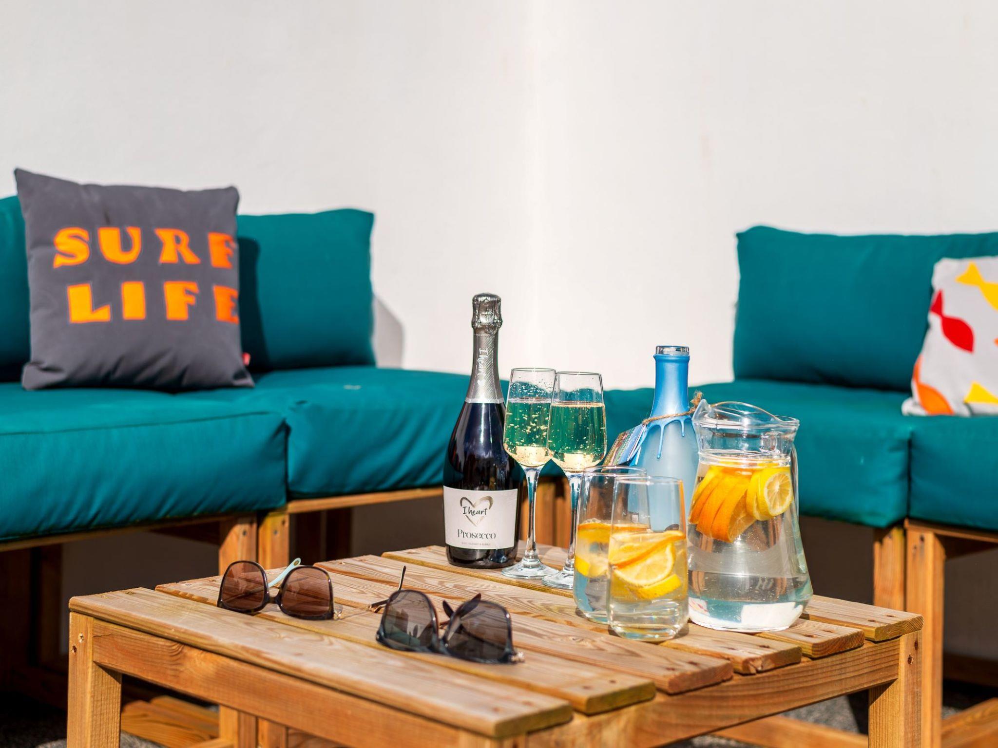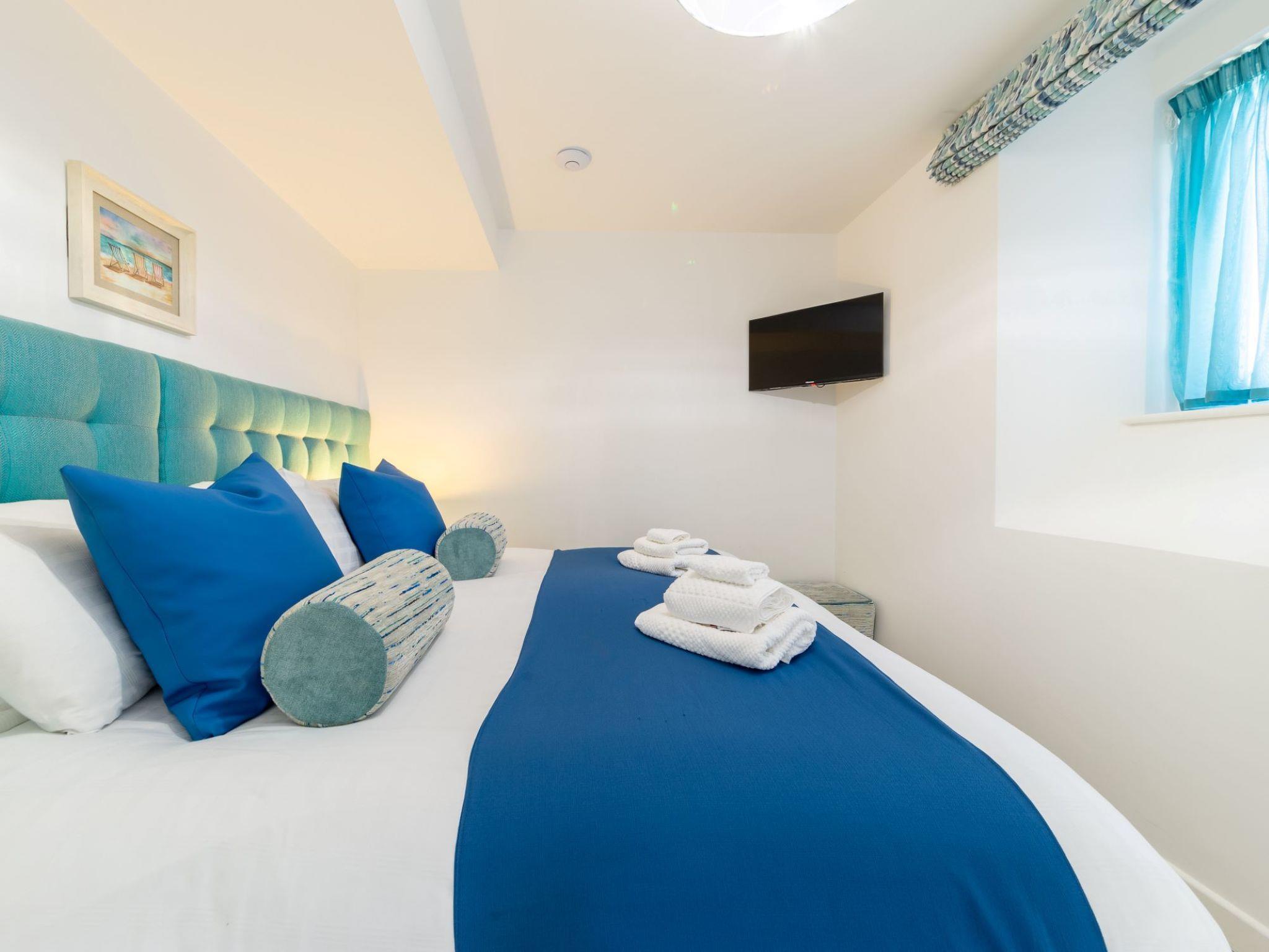 "Sun Trap", 4-room house 128 m2. Spacious and bright, fully renovated, luxurious and stylish furnishings: 1 large double bedroom with 1 double bed (2 x 75 cm, length 200 cm), bath/shower/WC and TV (flat screen). 1 large double bedroom with 1 double bed (2 x 75 cm, length 200 cm), shower/WC and TV (flat screen). Upper floor: large living/dining room with TV (flat screen). Large, open kitchen (oven, dishwasher, 4 ceramic glass hob hotplates, toaster, kettle, microwave, freezer). 2nd upper floor: 1 large double bedroom with 1 double bed (180 cm, length 200 cm), shower/WC and TV (flat screen). Terrace furniture. Partial view of the town. Facilities: washing machine, dryer, hair dryer. Internet (WiFi). Parking. E-charging station. Please note: maximum 2 pets/ dogs allowed. TV only EN. Smoke alarm. This apartment embodies boutique luxury living in the heart of Newquay.
