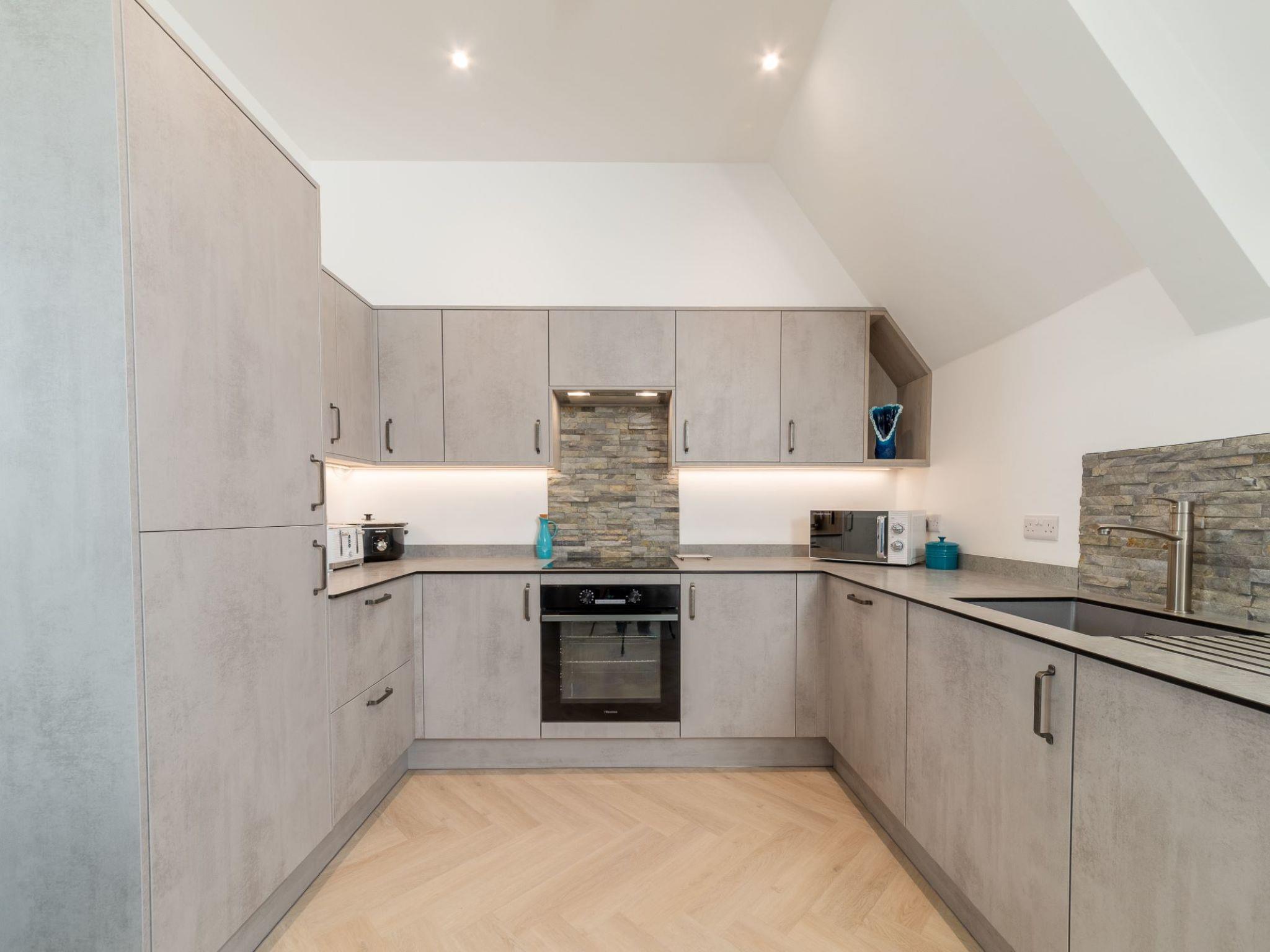 Five star luxury living in the heart of Newquay. If your dates are not available online please get in touch to enquire. Beautiful, luxurious house "Sun Trap", 3 storeys. 3 houses in the residence. In the centre of Newquay, in the heart of the city, from the sea, 200 m from the beach. Private: courtyard. Outdoor shower, hot tub. In the house: washing machine, tumble dryer. Parking. E-charging station. Shop 200 m, grocery, supermarket, shopping centre, restaurant, bar, bakery 200 m, café, pub garden 300 m, 1 minute walk to the centre, bus stop "Manor Road" 220 m, railway station "Newquay" 2 km, sandy beach "Towan Beach", diving center 650 m. Golf course (18 hole) 750 m, surf school 200 m, indoor tennis centre 4 km, minigolf 400 m, riding stable 2 km, sports centre 4 km, children's playground 3 km, fishing possibilities 200 m. Nearby attractions: Blue Reef Aquarium 300 m, Fistral Beach 1 km, Watergate Bay 6 km, Newquay Zoo 3 km, Porth Beach 3 km, Crantock Beach 7 km. Hiking paths: Fistral, Crantock and Newquay Circular 1 km, South West Coast Path 1 km, Bedruthan Steps 6 km. Please note: suitable for families. Additional accommodations can be booked. The complex has another 2 houses for rent.