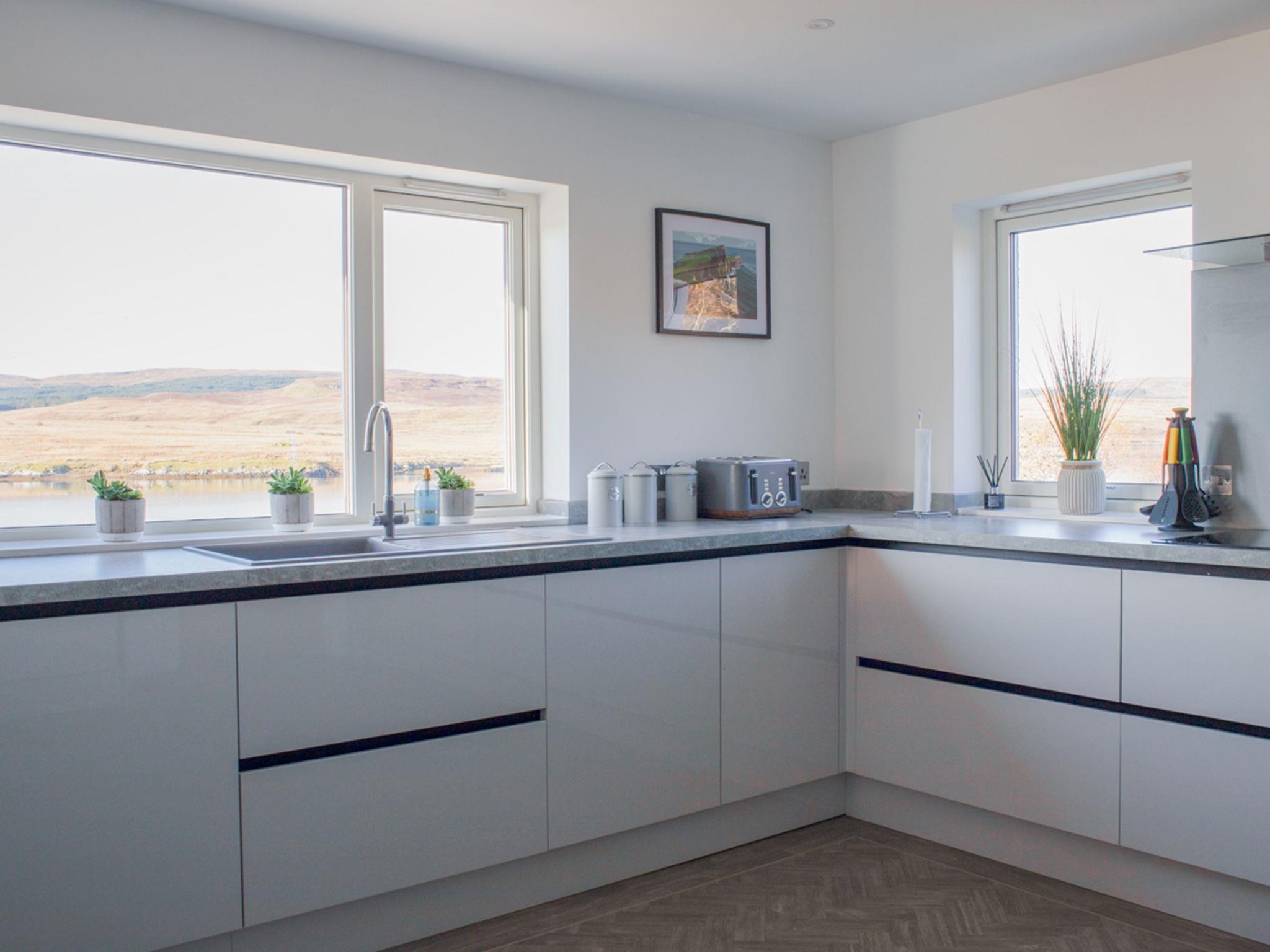 Very modern, beautiful cottage "Daisy Cottage", detached. In the district Edinbane, in a secluded, quiet position, 100 m from the lake. Private: garden (fenced). In the house: WiFi, central heating system, laundry, washing machine, tumble dryer. Parking (for 3 cars). Supermarket 13 km, restaurant 1 km, bar 23 km, bus stop "Upper Edinbane Road end" 2 km, railway station "Kyle of Lochalsh" 76 km. Nearby attractions: Dunvegan Castle and Garden 16 km, Edinbane Lodge 2 km, Neist Point 29 km, Loch Greshornish 1 km. Please note: car recommended.