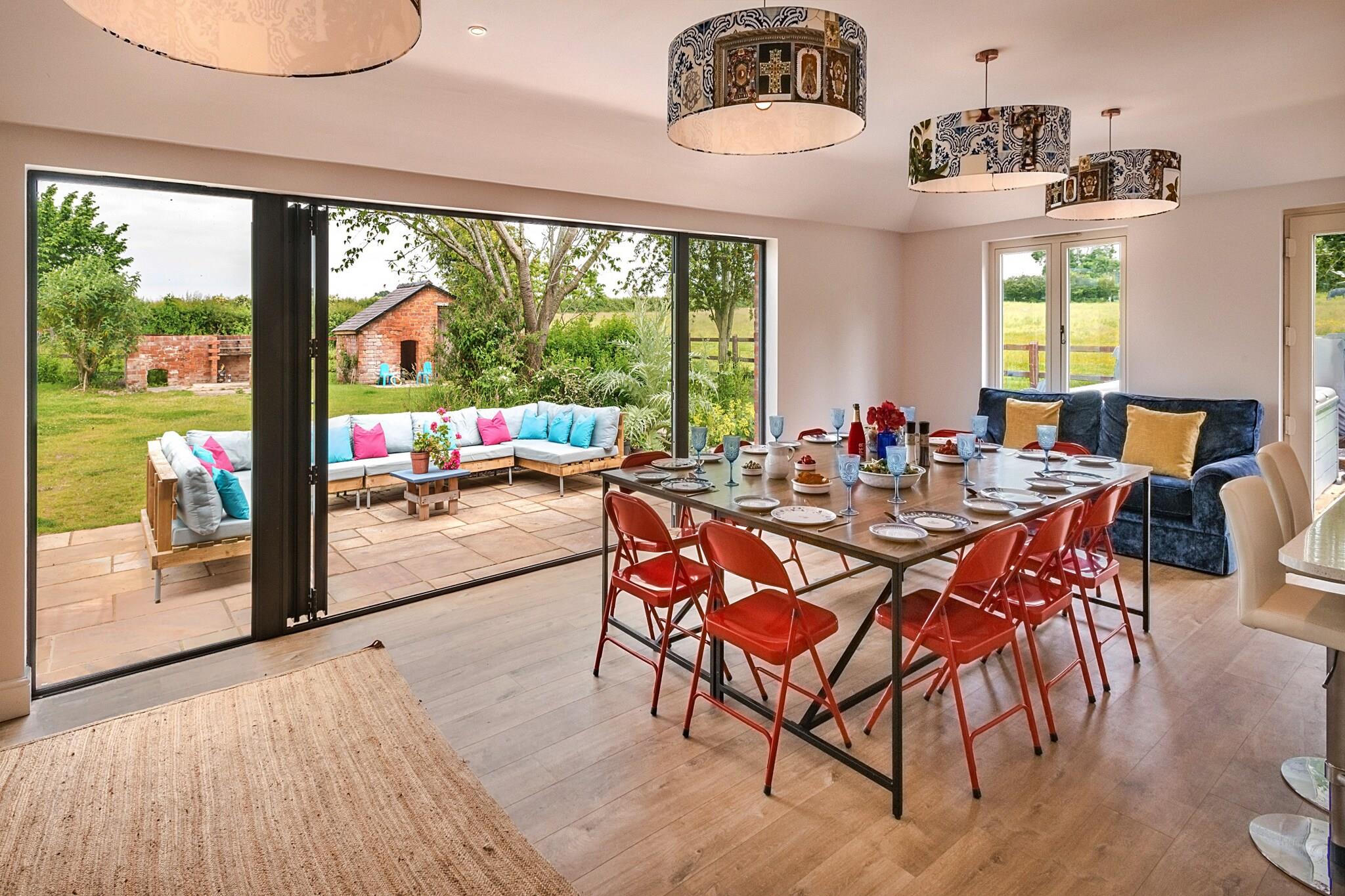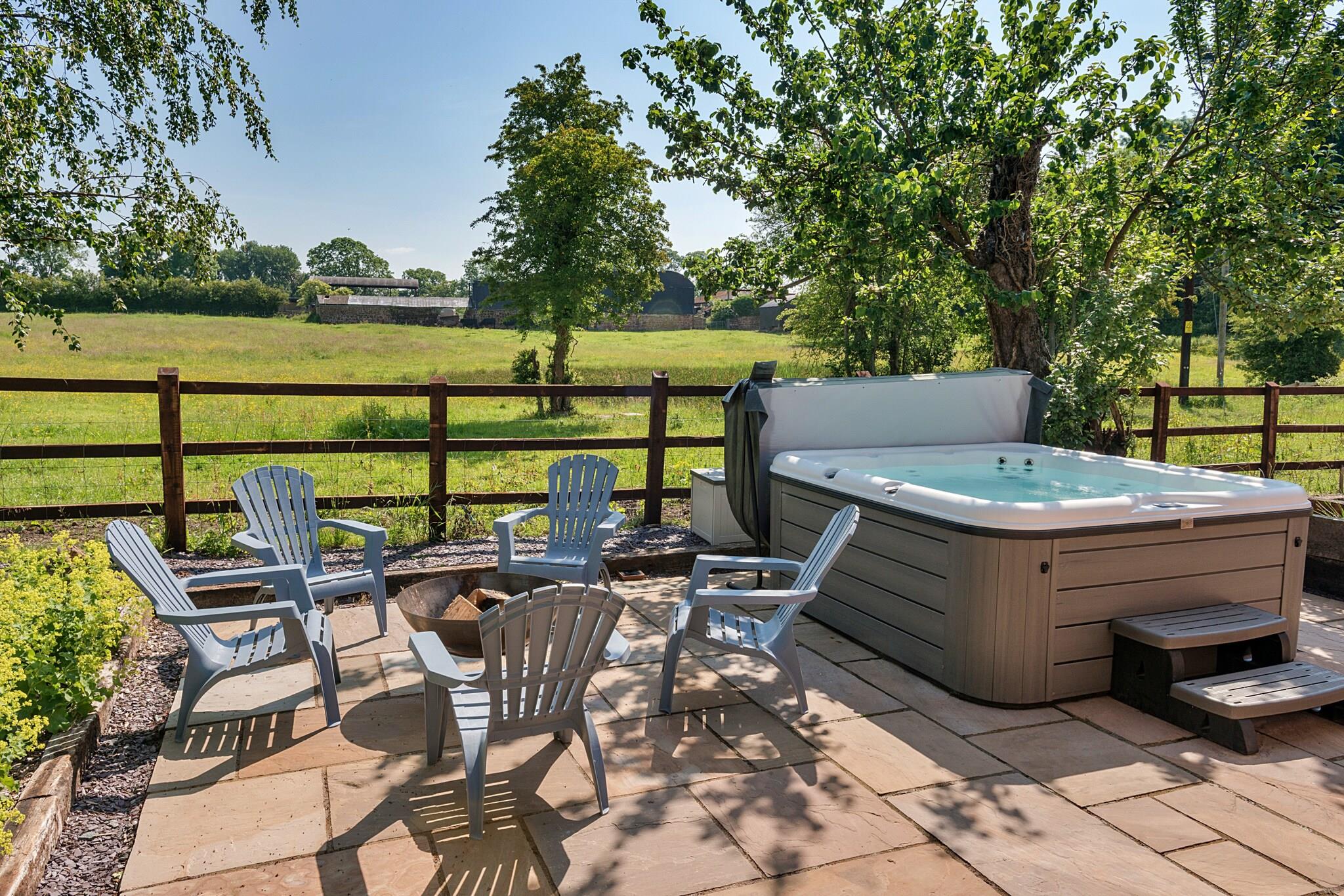Beliggende i maleriske omgivelser tilbyder disse to smukt renoverede hytter et uovertruffent tilflugtssted for store grupper af familie og venner med plads til op til 16 gæster i ultimativ luksus. Med et indbydende spabad omgivet af terrasser, omfattende indhegnede haver og håndlavede lounge-siddepladser, fungerer denne ejendom som den perfekte baggrund for latterfyldte sammenkomster og elskede minder. Træd ind i den rummelige Hare Cottage, som komfortabelt har plads til 9 gæster. Her finder du et overdådigt kingsize-værelse med eget bad, et hyggeligt dobbeltværelse og et charmerende køjeværelse med en ekstra enkeltseng, suppleret med et familiebadeværelse for ekstra bekvemmelighed. Den nedenunder king soveværelset kommer med sit eget private badeværelse, hvilket sikrer privatliv og komfort for alle. Hjertet i Hare Cottage er dens ekspansive havestue, designet til socialisering og spisning. Med en dobbeltsidet brændeovn til at holde dig varm, et komfur til kulinariske lækkerier, et vinkøleskab til de festlige øjeblikke og et smart-tv parret med et sjovt bordfodboldområde, er det det ideelle sted for hele gruppen at nyde sammen. Fox Cottage, der kan rumme 7 gæster, udstråler en lignende charme med sine egne luksuriøse detaljer. Med et king-size soveværelse med eget bad, et hyggeligt dobbeltværelse og et dejligt køjeværelse med en enkeltseng, tilbyder denne hytte alt, hvad du behøver til afslappende nætter og behagelige morgener. Den hyggelige Fox Cottage skaber et magisk filmrum, perfekt for børn at fordybe sig i film, mens de voksne kan slappe af i deres eget fristed. Hver hytte er udsmykket med stoffer og møbler af høj kvalitet fra kendte designere som Farrow and Ball, Laura Ashley og Christian Lacroix, hvilket sikrer en elegant og moderne atmosfære under hele dit ophold. Udenfor er de store haver perfekte til solrige morgener med en kop kaffe, eftermiddagsgrill og aftener tilbragt i blød i boblebadet under en stjernehimmel. Med enge langs floden Severn kan gæsterne nyde den unikke mulighed for at fiske fra flodbredderne eller endda tage en forfriskende dukkert i naturens skønhed med vild svømning. Dette tilbagetog er ikke kun et sted at bo; det er en destination, hvor varige minder skabes, og hvor kvalitetstid værdsættes.