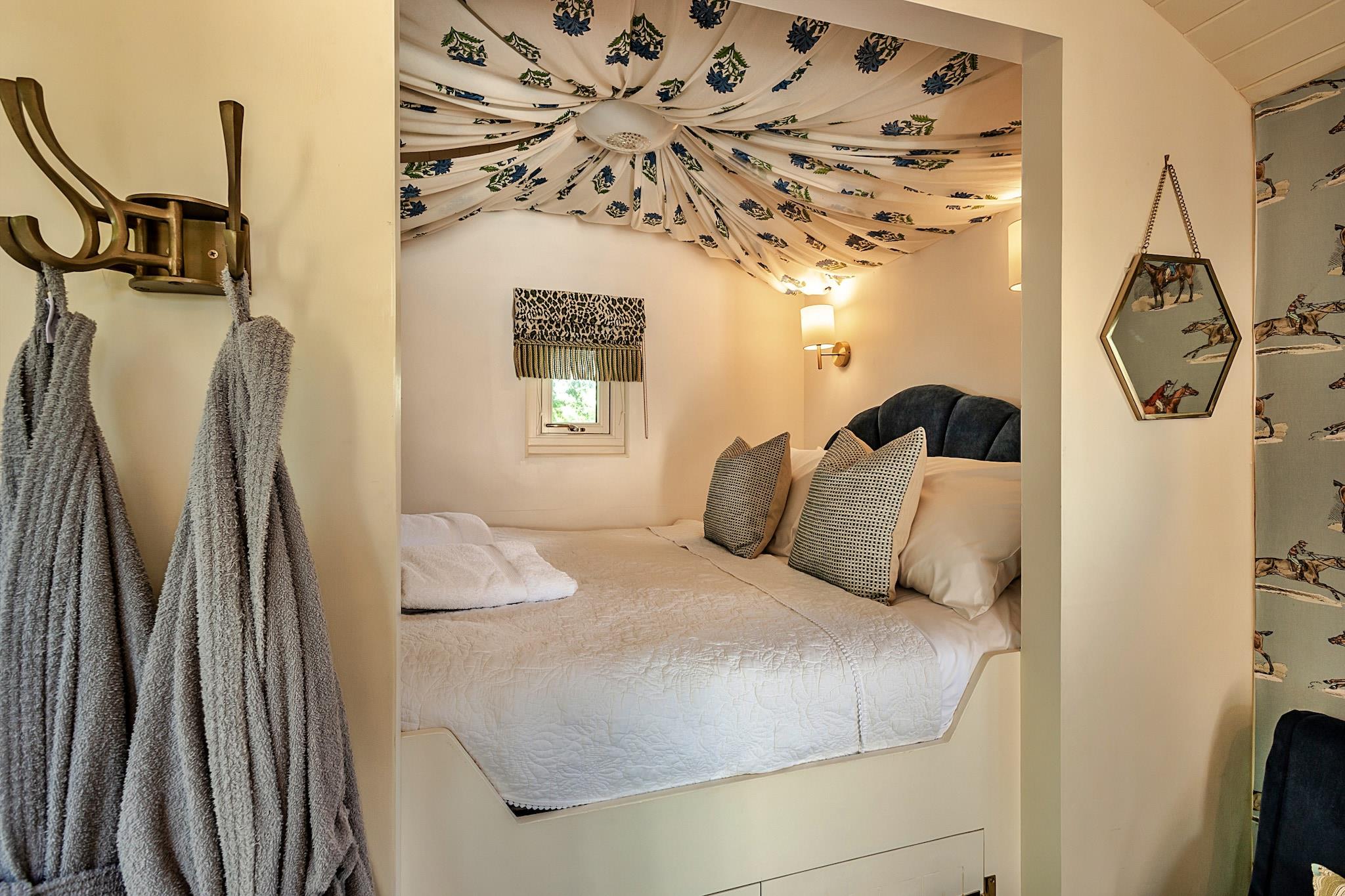 Træd ombord på en unik romantisk ferie, der transporterer dig til en verden, hvor charmen ved vintage togrejser møder moderne luksus. Denne fortryllende togvogn er beliggende i den historiske Shrawardine Station, og tilbyder en ekstraordinær glamping-oplevelse for op til fire gæster fra april til november. Omgivet af betagende solnedgange, blinkende stjerneklare nætter og pulserende dyreliv, er dette unikke tilflugtssted perfekt for dem, der søger eventyr og afslapning i lige grad. Træd ind i den smukt indrettede 1. klasses sovevogn, hvor overdådige stoffer af de kendte designere Fermoie & Pierre Frey skaber en atmosfære af komfort og nydelse. Med moderne bekvemmeligheder såsom fladskærms-tv og elektrisk komfur, er dette hyggelige rum designet til din ultimative afslapning. Vognen rummer komfortabelt en familie på fire, og fremviser en romantisk king-size kabine prydet med et teltloft sammen med to charmerende fold-ud stole til ekstra soveplads. For at forbedre dit ophold yderligere, ligger den elskede gamle gardes hytte kun få skridt væk, og den tilbyder et fuldt udstyret køkken og spiseplads samt et praktisk badeværelse. Dette gennemtænkte layout giver dig mulighed for at nyde samværet af fælles måltider, mens du nyder de fortryllende omgivelser. Uanset om du slapper af efter en dag med udforskning eller ser på nattehimlen, tilbyder denne bemærkelsesværdige togvogn en uforglemmelig flugt fra hverdagen.