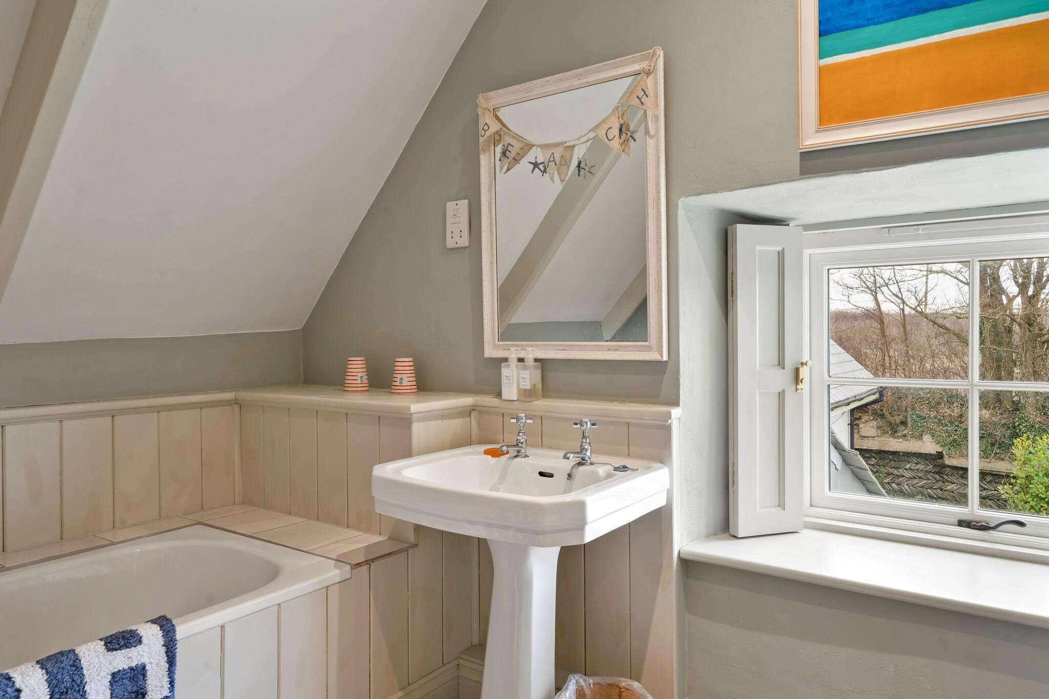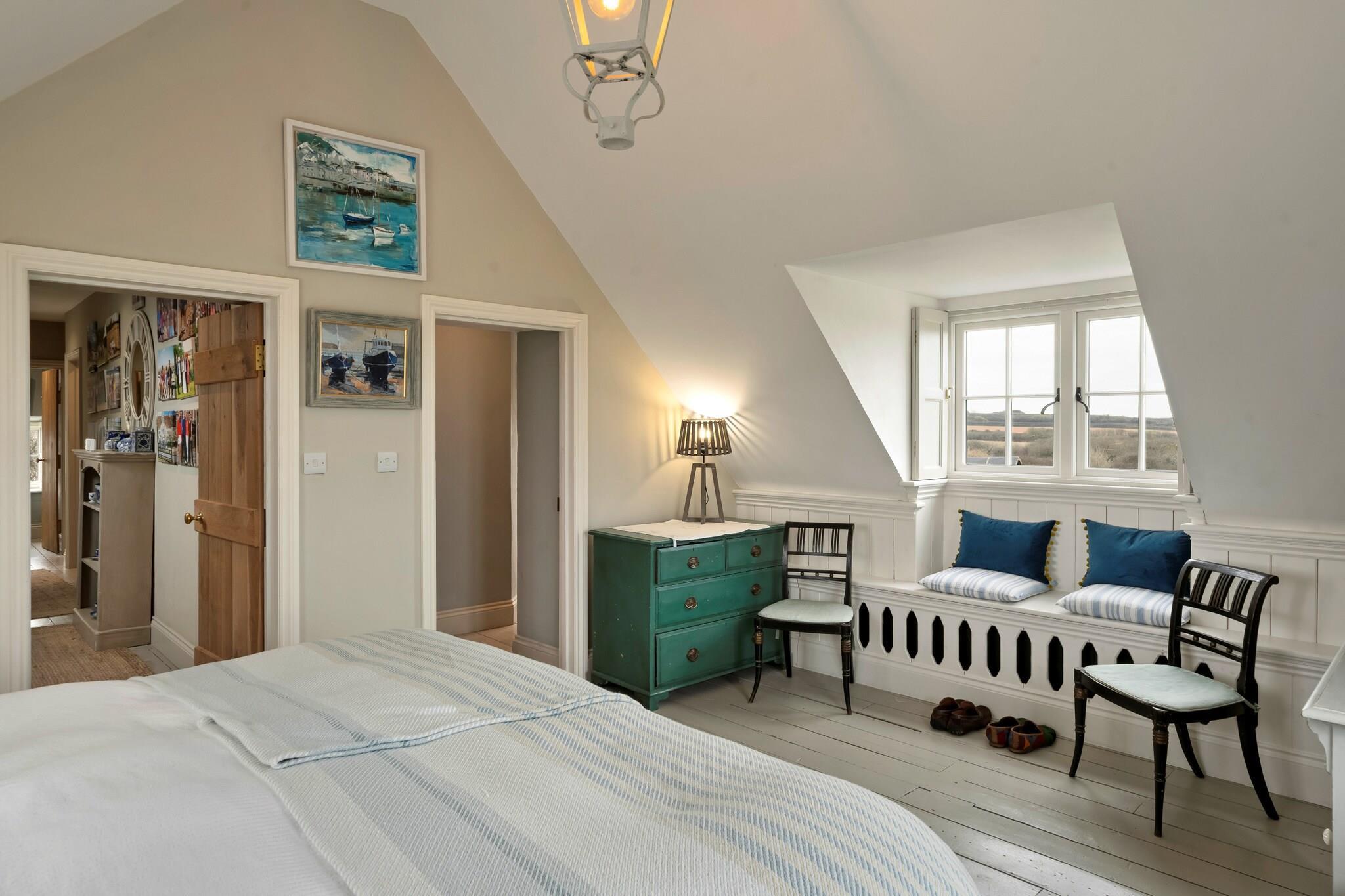Beliggende i den fortryllende landsby St Eval tilbyder dette smukt ombyggede tidligere skolehus et unikt kysttilflugtssted på Cornwalls forrevne kystlinje. Kun få minutter fra Mawgan Porths og Porthcothans gyldne sandstrande udstråler ejendommen historisk charme, mens den byder på moderne bekvemmeligheder, der imødekommer ethvert behov. Med havudsigt synlig fra de fleste værelser giver dette hjem den perfekte baggrund for en rolig ferie i North Cornwall. Træd indenfor for at opdage et stilfuldt opholdsrum i åbent plan, der tilskynder til sammenkomster og afslapning. Det luftige køkken, spisestue og opholdsområde flyder problemfrit sammen, hvor store vinduer tillader sollys at oversvømme rummet, mens de fremviser en betagende udsigt over landskabet og havet. En dobbeltsidet brændeovn tilføjer den varme stemning, hvilket gør den til det perfekte sted at slappe af efter en dag med udforskning. Til de øjeblikke af ensomhed tilbyder en ekstra stue en hyggelig krog til læsning eller filmaftener med familie og venner. Ejendommen kan rumme op til ti gæster komfortabelt og kan prale af fem indbydende soveværelser, alle udsmykket med kystindretning, der afspejler de fantastiske omgivelser. Et soveværelse i stueetagen med eget badeværelse tilbyder bekvemmelighed, mens fire rummelige soveværelser ovenpå har enten ensuite faciliteter eller deler et familiebadeværelse. Udenfor bliver den private have et fredfyldt tilflugtssted for udendørs spisning og underholdende, komplet med et beskyttet grillområde til nydelse i al slags vejr. Med lokale strande, naturskønne vandrestier og charmerende nærliggende byer er dette dejlige skolehus den perfekte base for dit Cornish-eventyr, der giver et behageligt tilflugtssted for familier og grupper, der søger afslapning og mindeværdige oplevelser.