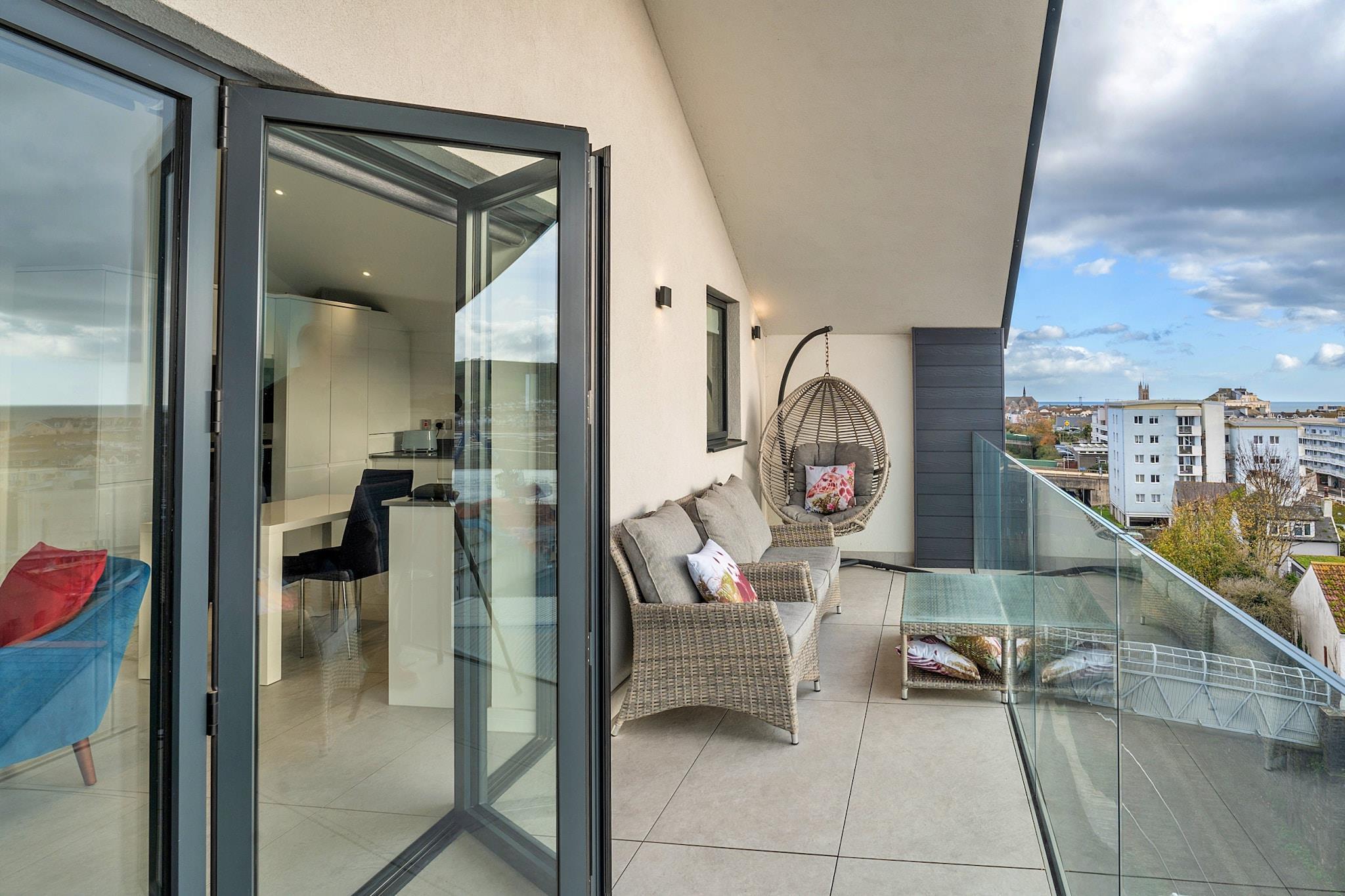 Velkommen til Anchor View, en luksuriøs penthouselejlighed med en betagende udsigt over Teignmouth, Shaldon og Teign Estuary. Denne moderne lejlighed er et ideelt tilflugtssted for familier eller små grupper, der komfortabelt kan rumme op til seks gæster. Med to rummelige soveværelser med dobbeltsenge, inklusive en king-size seng med eget brusebad og et dobbeltværelse, vil du nyde både privatliv og komfort. En king-size sovesofa i opholdsområdet giver ekstra soveplads for din bekvemmelighed. Den åbne planløsning er et sandt højdepunkt med et fuldt udstyret køkken, spiseplads og rigelig siddeplads omkring det 65" smart-tv. Bifoldede døre åbner til en fantastisk 7,1 meter bred balkon, hvor du kan læne dig tilbage, slappe af og nyde den spektakulære udsigt. Uanset om det er at nyde en morgenkaffe eller aftendrinks i lejligheden, så byder Devon også på den perfekte atmosfære i lejligheden, så den perfekte atmosfære byder på altanen. faciliteter som gulvvarme, en EV-oplader og tildelt parkering til to køretøjer i den sikre underjordiske parkeringsplads. Beliggende nær den populære Back Beach og i gåafstand til en pulserende bymidte fyldt med barer, restauranter og butikker, tilbyder Anchor View en vidunderlig base for at udforske den smukke Devon-kyst. For dem, der nyder udendørslivet, er vandreture ved kysten og strande let tilgængelige. Hvis du er fan af tog, vil du endda blive behandlet med udsigt over Devons damptog i løbet af foråret og sommeren. Bemærk venligst, at ejendommen er tilgængelig via tre trapper eller en elevator fra parkeringspladsen, og den er tilgængelig for kørestolsbrugere.