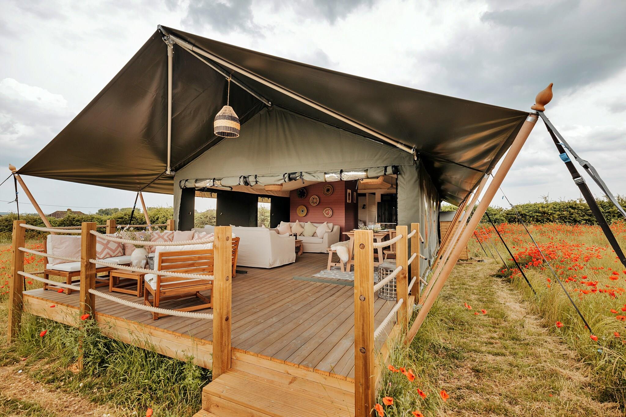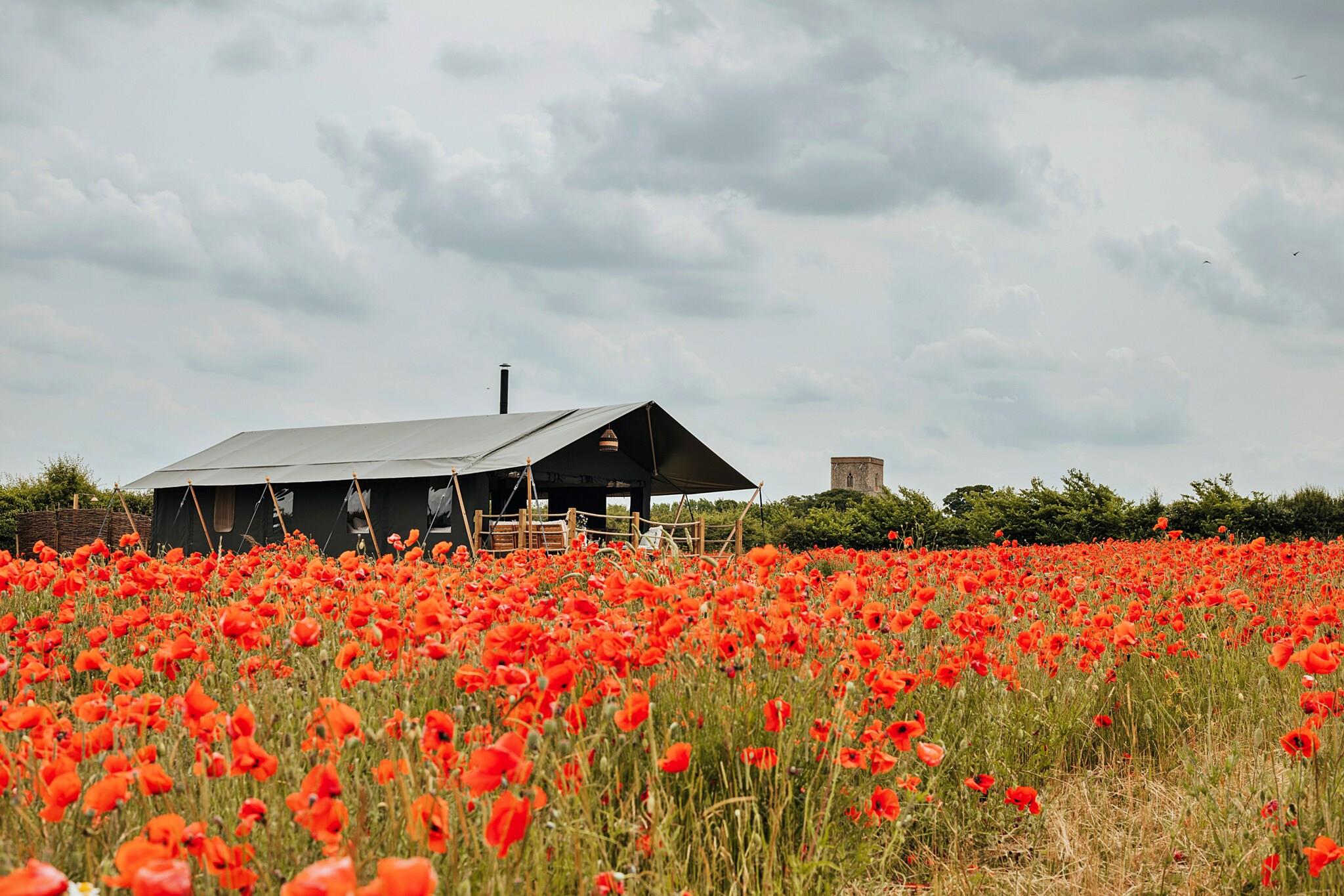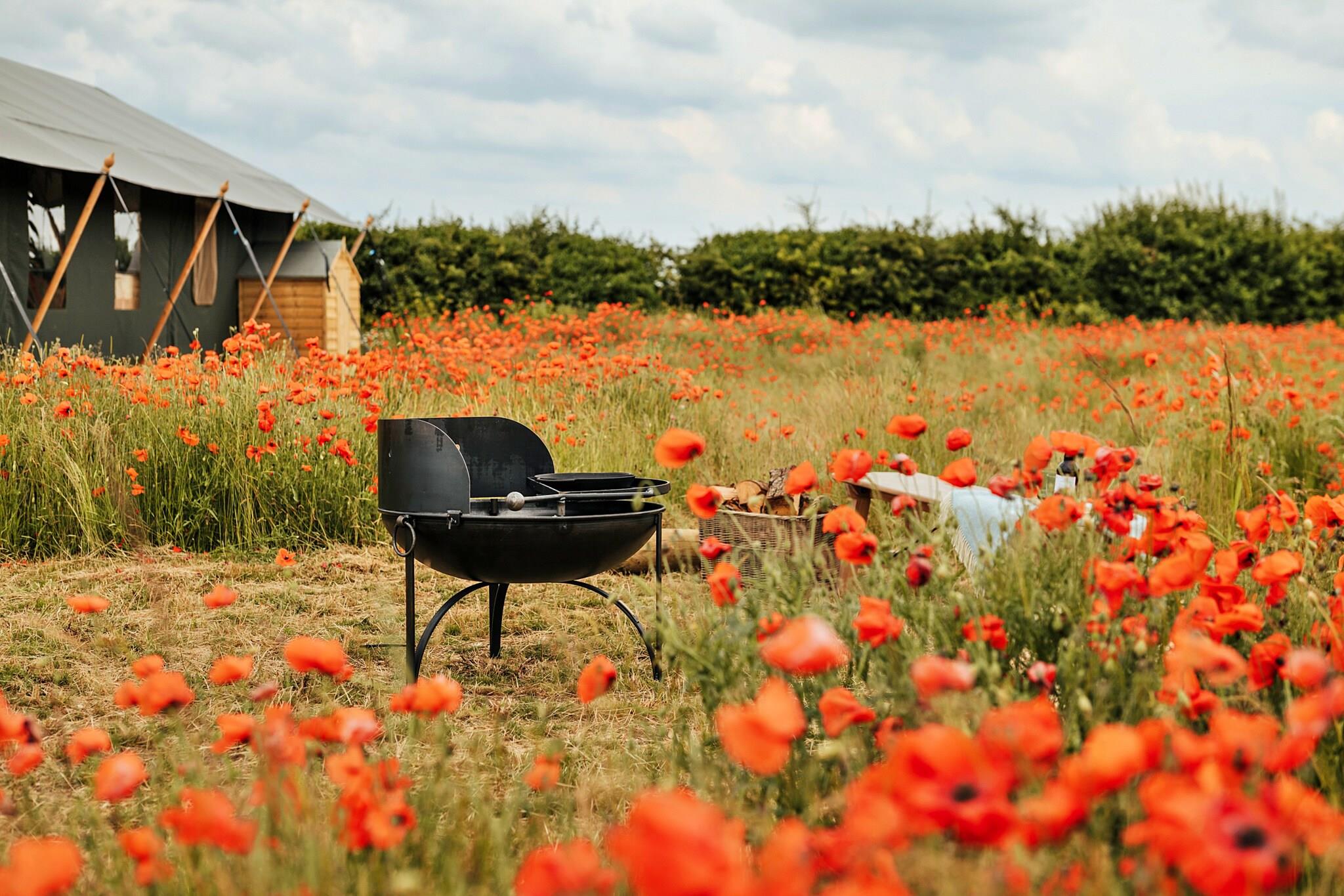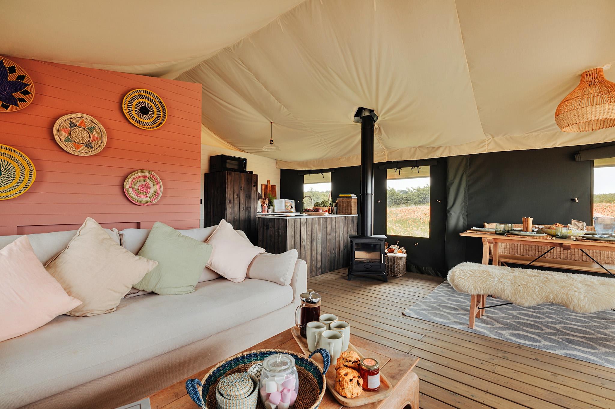 Safaritelt i Stiffkey Valley med bålplads
