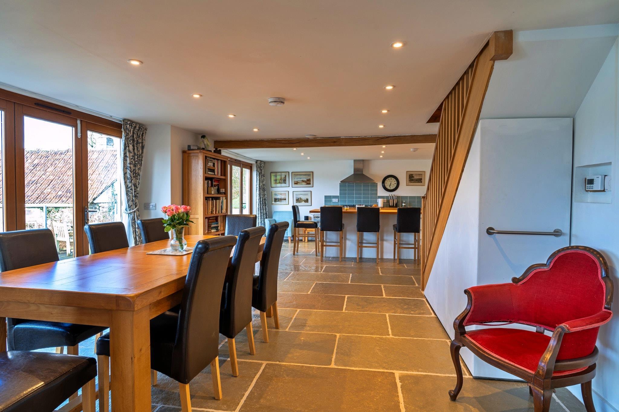 Dette enestående fritliggende hjem ved floden tilbyder et rummeligt og luksuriøst ophold for op til 8 gæster, med tre smukt indrettede soveværelser, hver med en-suite badeværelser. Det store soveværelse har en super kingsize seng, en dobbelt sovesofa og et Freeview-tv med en dvd-afspiller. Det andet soveværelse har en king-size seng og en dobbelt sovesofa, mens det tredje soveværelse har to enkeltsenge. Det åbne køkken og spiseplads med dobbelte døre, der fører til en terrasse, giver et indbydende rum til at tilberede måltider, mens du nyder udsigten over floden. Ejendommen omfatter også et andet spillelokale med et stort Freeview-tv og brætspil til underholdning. Huset er kæledyrsvenligt. Denne ejendom ligger langs de rolige bredder af floden Torridge og tilbyder en fantastisk udsigt over floden og er en perfekt base for at udforske North Devons naturlige skønhed. Med direkte adgang til floden kan gæsterne nyde udendørs aktiviteter, herunder kanosejlads, eller blot slappe af ved floden. Nærliggende attraktioner omfatter de historiske markedsbyer Bideford og Torrington, der byder på lokale butikker og restauranter. Den berømte Exmoor National Park er også i nærheden, og tilbyder fantastiske landskaber for naturelskere. Besøg den charmerende fiskerlandsby Clovelly eller den pulserende badeby Ilfracombe for en dag ude. Feriehuset er fuldt udstyret med moderne bekvemmeligheder for at sikre komfort under hele dit ophold. Det velindrettede køkken indeholder alle de nødvendige apparater til selvforplejning, mens opholdsområderne er perfekte til afslapning. Ejendommens indbydende brændeovn byder på varme i de koldere måneder, og den udendørs terrasse giver perfekte rammer for at nyde udsigten over floden