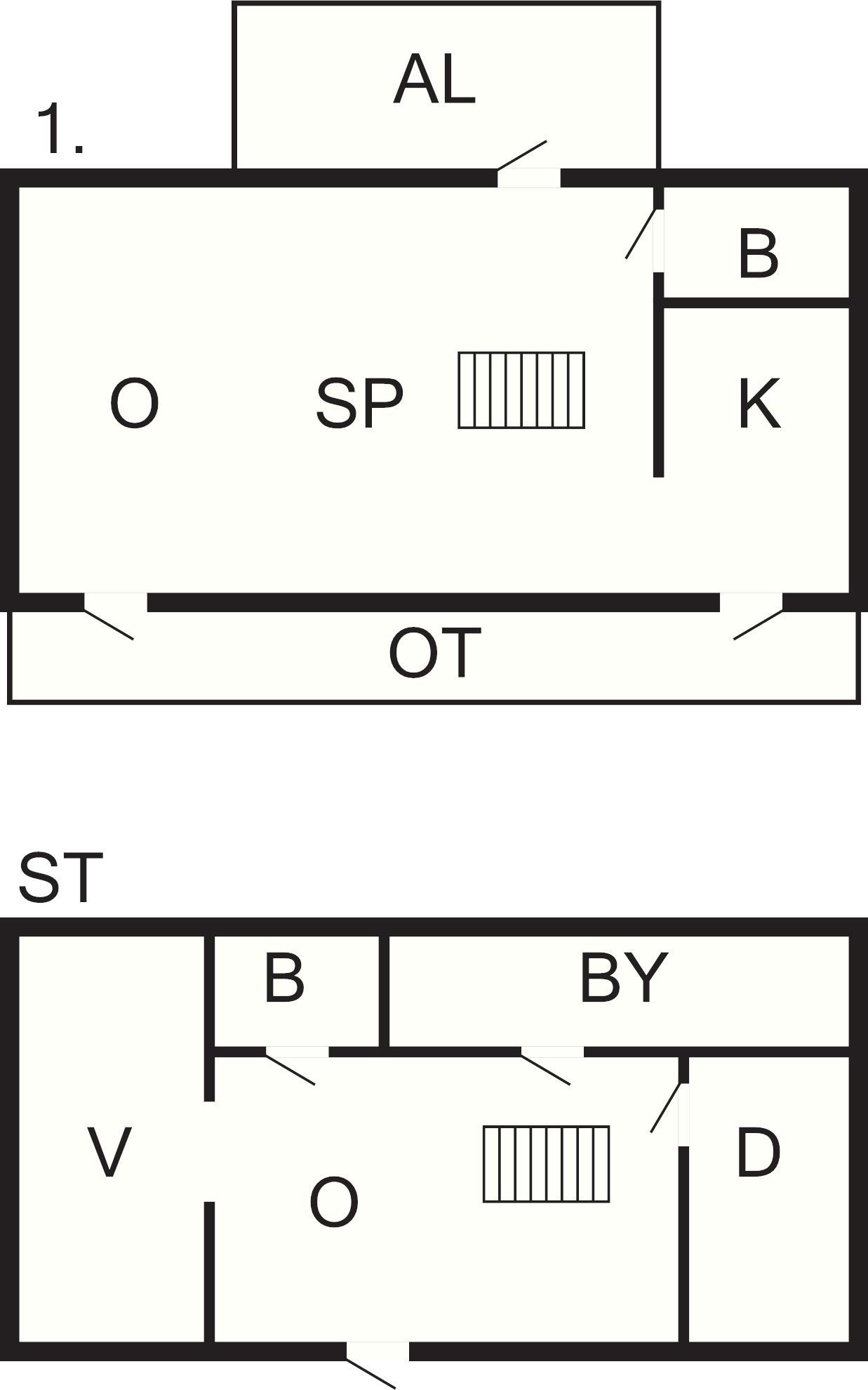 Innanför entrén på bottenplan har du sovrum, allrum med nedfällbar säng (140cm), förvaringsmöjligheter, badrum och tvättstuga.