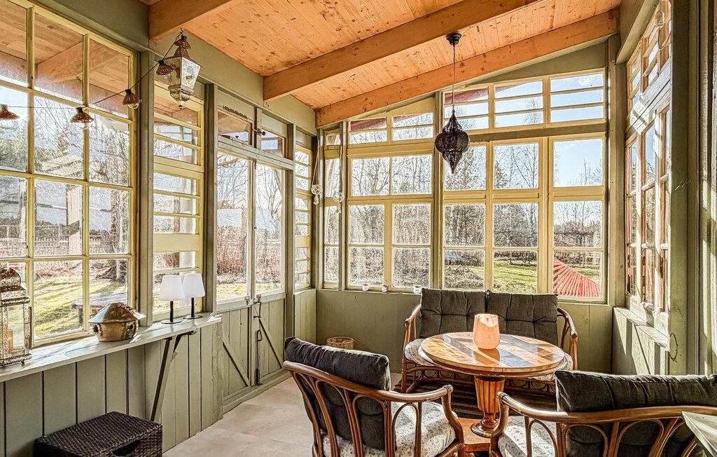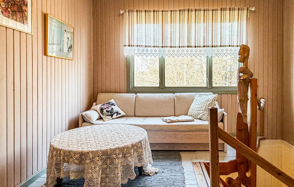 Dette idyllisk beliggende hus er det perfekte tilflugtssted for en ferie i naturskønne omgivelser. Møblerne i vintage-stil giver værelserne en særlig atmosfære og lægger op til at tilbringe afslappende timer med at snakke og nyde kaffe. Lyt til god musik eller fordyb jer i jeres ferielæsning, mens en sagte ild knitrer i brændeovnen.