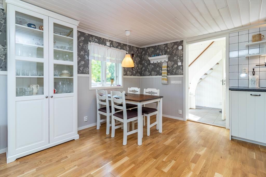 Huset tilbyder ca. 75 m² bolig til op til 5 personer; til den femte person er der en ekstra seng. Fra den delvist overdækkede terrasse kommer du ind i en lille entré med garderobe. Køkkenet er praktisk udstyret med 4-plade induktionskogeplade, ovn, emhætte, køle- og fryseskab, opvaskemaskine, mikrobølgeovn og kaffemaskine. Den åbne stue indbyder til afslapning med et hjørnesofa i læder og Smart-TV. I stueetagen findes et soveværelse med to enkeltsenge, et badeværelse med toilet, bruser og vaskemaskine samt gulvvarme. På første sal er der endnu et soveværelse med to enkeltsenge og et åbent rum.