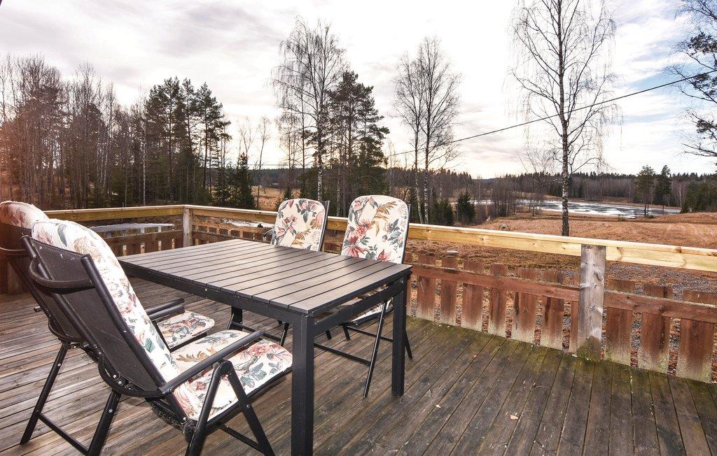 Ugeneret beliggende feriehus med terrasse og udsigt ned mod søen Stora Lee, hvor broen og husets båd ligger parat til dejlige bade- og fiskeudflugter i det rene, klare vand.
