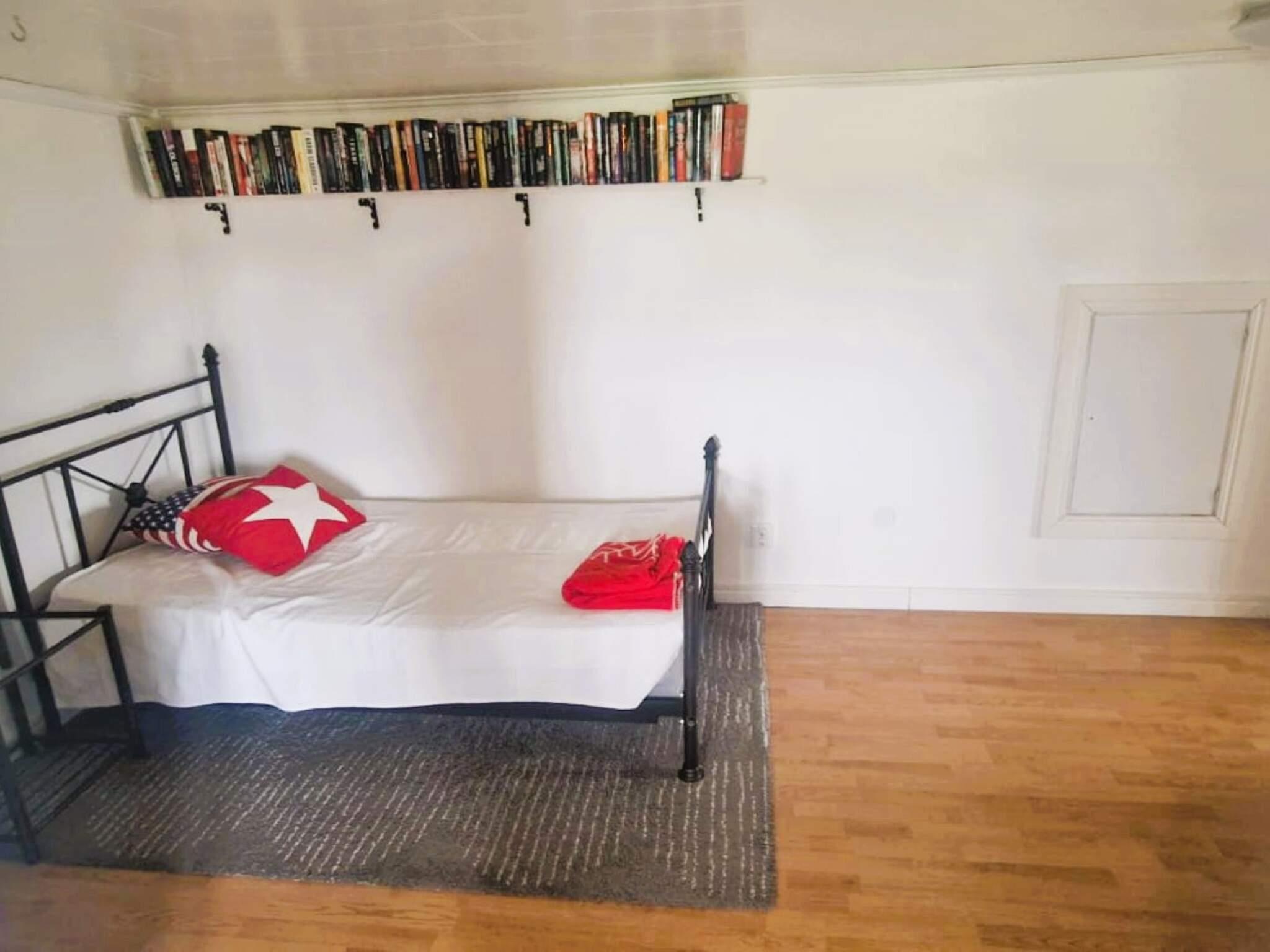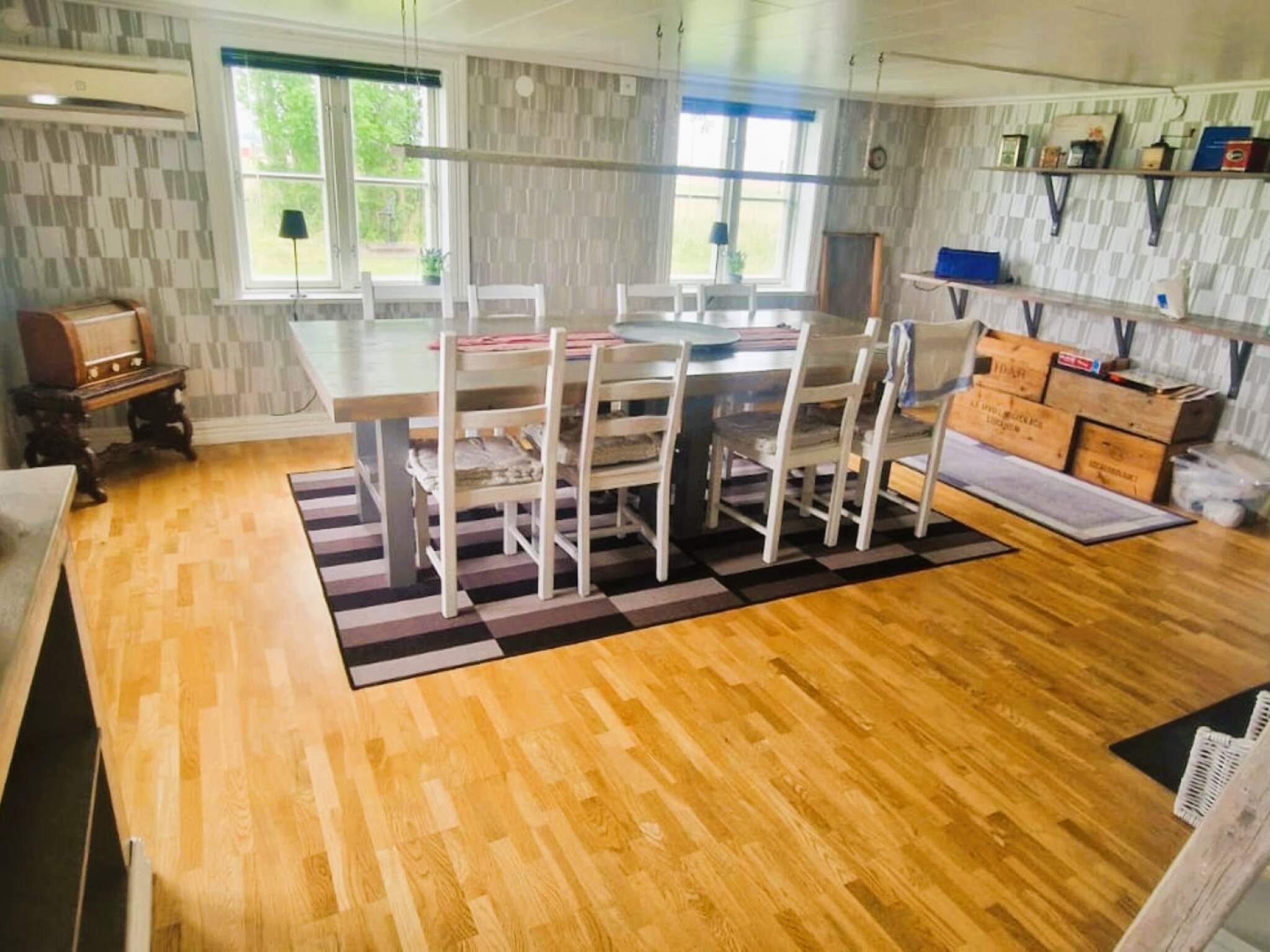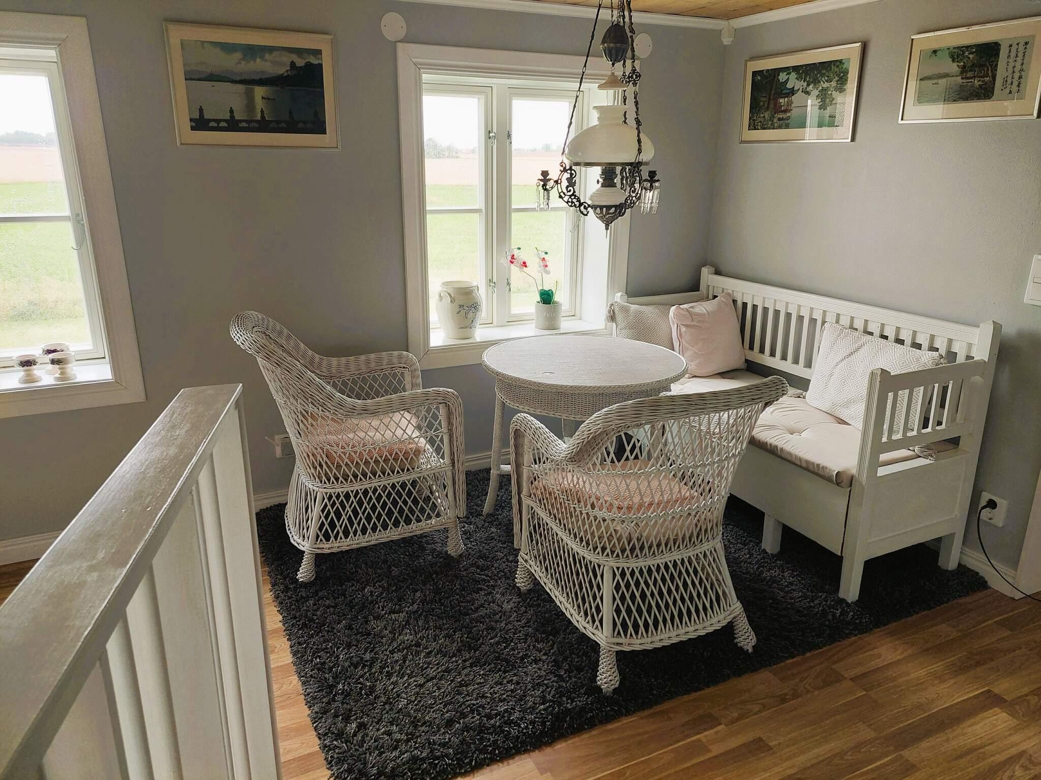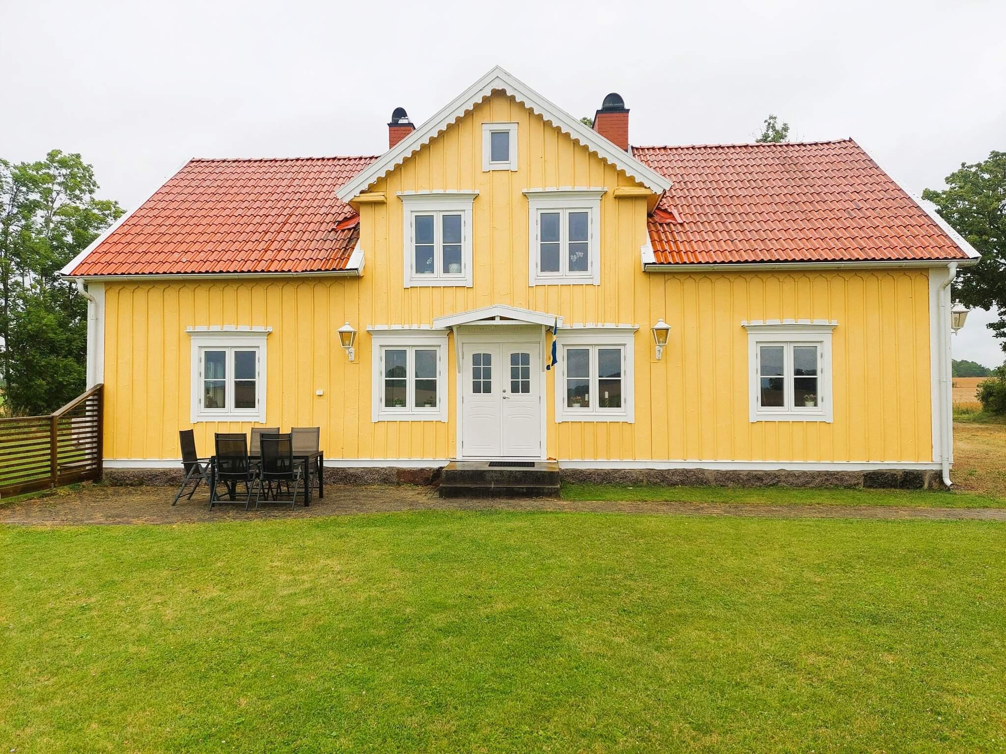 Utomhus finns två uteplatser som gör det enkelt att följa solen under dagen – perfekt för morgonkaffet, grillkvällar eller en lugn stund med en bok. Huset omges av ett öppet jordbrukslandskap där årstidernas växlingar märks tydligt och där omgivningarna bidrar till ett lugn som är typiskt för somrar på landet. På de stora grönytorna finns det gott om plats för lekande barn som kan springa fritt utan oro för närliggande bilvägar.