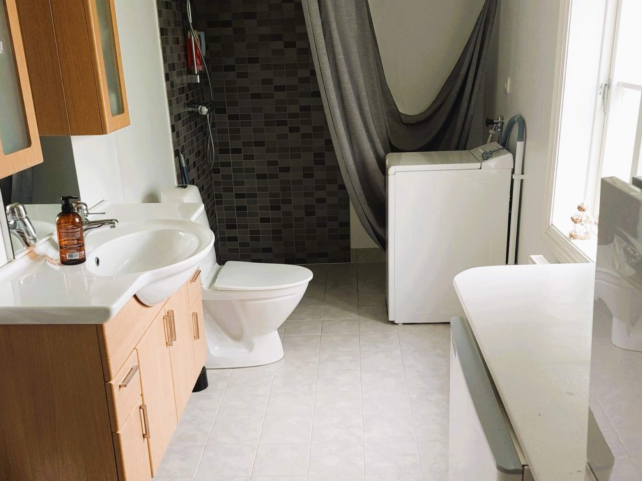 Bad/wc: Vaskemaskine, wc, håndvask, bruser