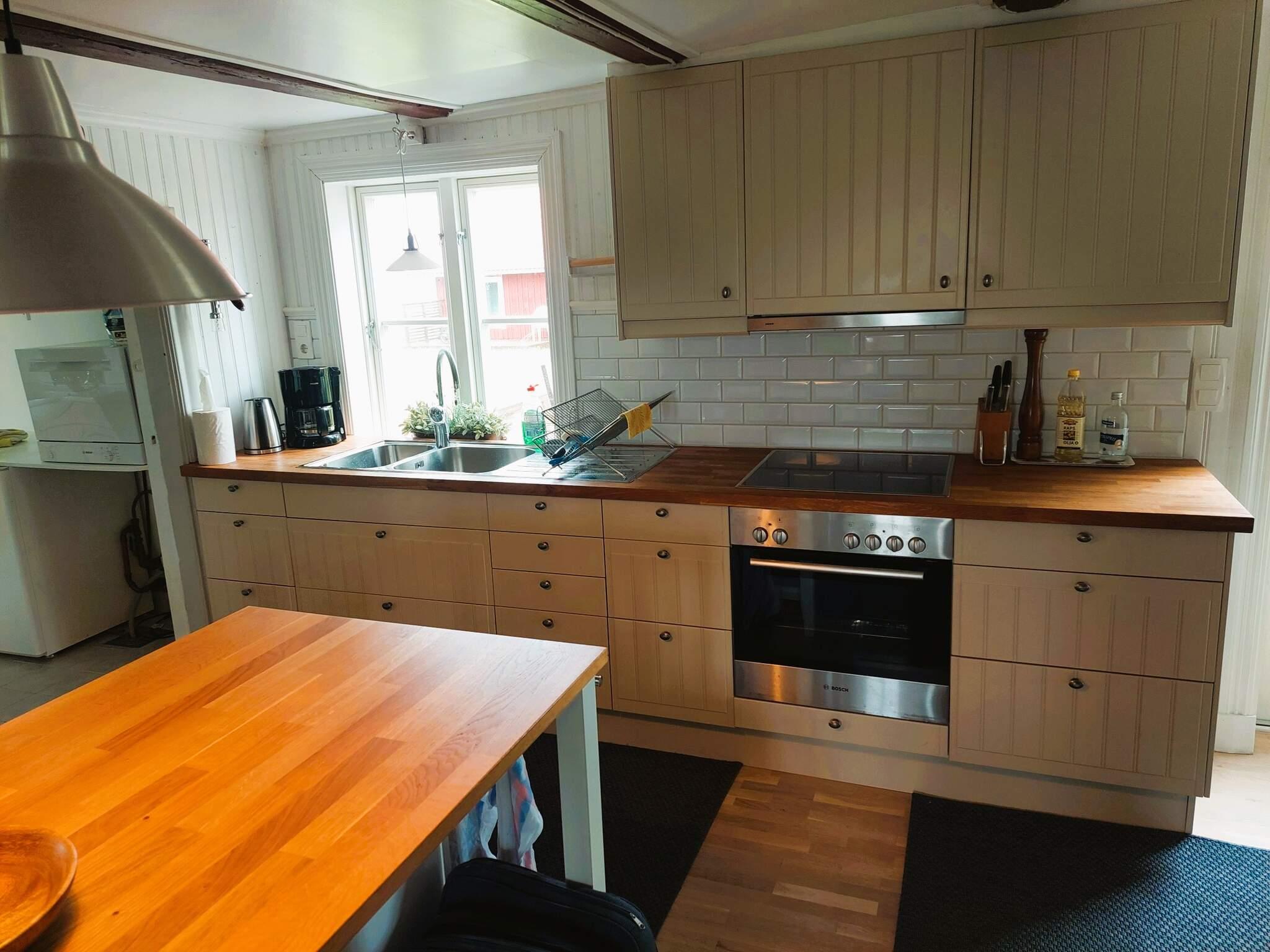 Køkken: El-komfur, køle-frys, mikroovn, kaffemaskine, opvaskemask.