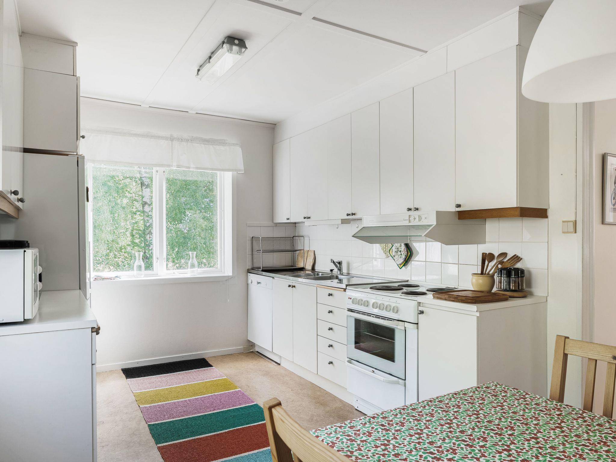 "Lindby Pärlan", 3-room house 84 m2. Bright, cosy furnishings: living/sleeping room with 1 sofabed, dining table, TV and DVD. Exit to the veranda. 1 room with 2 beds (90 cm, length 200 cm). 1 room with 1 double bed (2 x 80 cm, length 200 cm). Open kitchen (4 hot plates, oven, dishwasher, microwave, freezer, electric coffee machine) with dining table. Shower/WC. Electric heating. Wooden floors. Terrace furniture. View of the lake. Facilities: washing machine, children's high chair, baby cot. Please note: non-smokers only. Smoke alarm, fire extinguisher. Fridge and freezer approx. 120 l. Please note: the owner only accepts bookings for touristic reasons. STH150