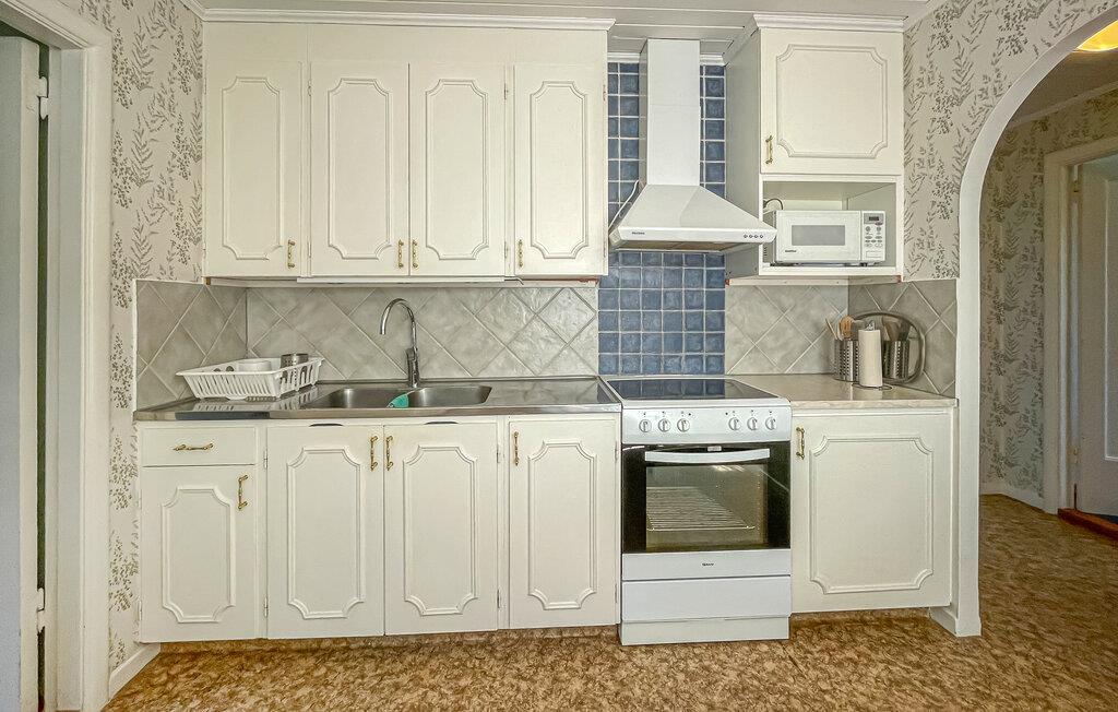 Velkommen til denne attraktive lejlighed, der ligger i naturskønne omgivelser mellem Sävsjön og Harasjön. Her får I en vidunderlig base til årets ferie med den lille familie. Indretningen fremtræder pænt og attraktivt med festlige tapeter, velholdte gulve og et veludstyret køkken, hvor I kan kræse om livretterne efter en dag på farten. Stuen får dejlige lysindfald gennem de sprossede vinduer, og her kan I lade en hyggelig aften gå på hæld med hver jeres bog eller et brætspil, mens I lægger planer for de kommende dage. Eller måske I skal forkæle jer selv med en aftentur i saunaen?