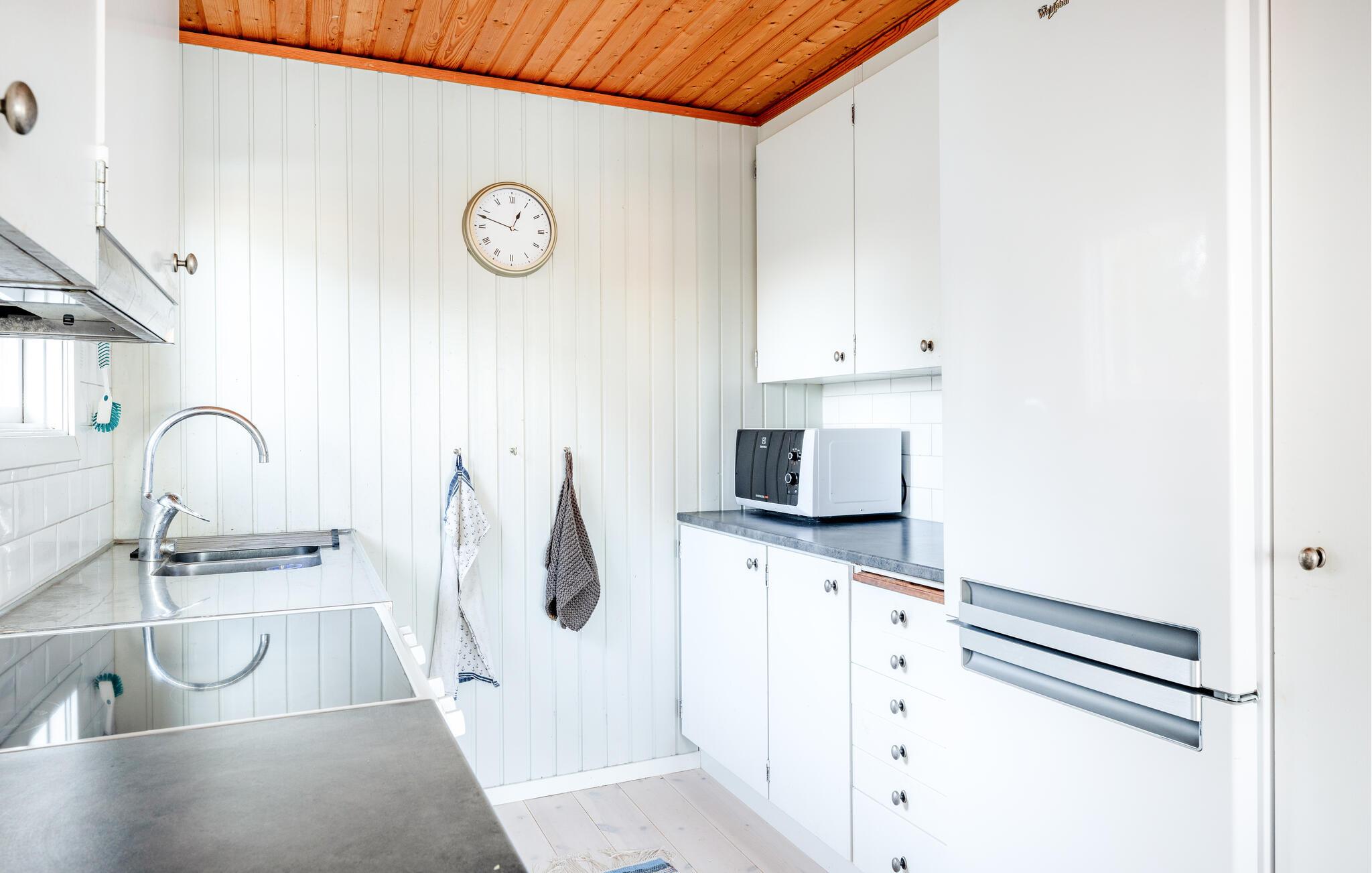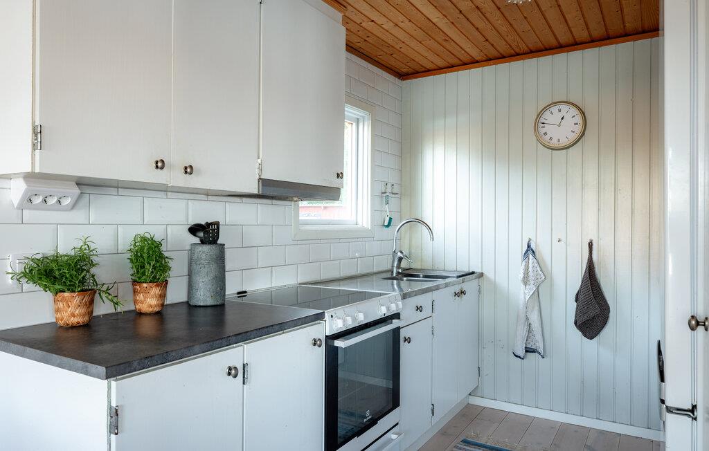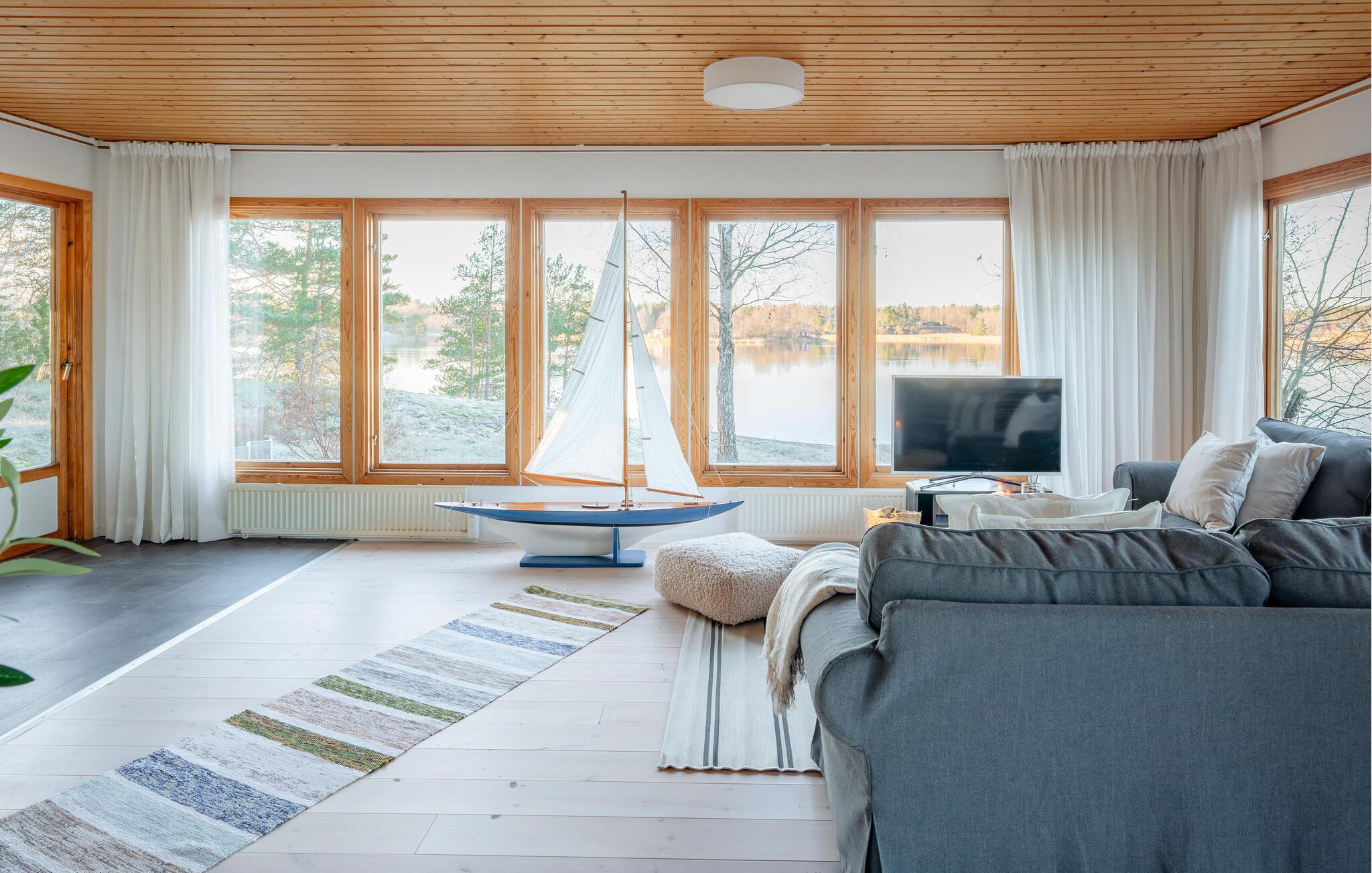 Med udsigt til den spejlblanke sø kan I tage en afslappende pause fra hverdagen i dette smagfuldt indrettede feriehus. Glæd jer til madaftener sammen i det moderne køkken og hyggelige måltider i den lyse og venlige spiseplads. Fordyb jer i den gode stemning i den rummelige stue, som tilbyder jer et lyst tilflugtssted med udsigt til naturen om dagen og lover harmoniske aftener ved pejsen om aftenen.