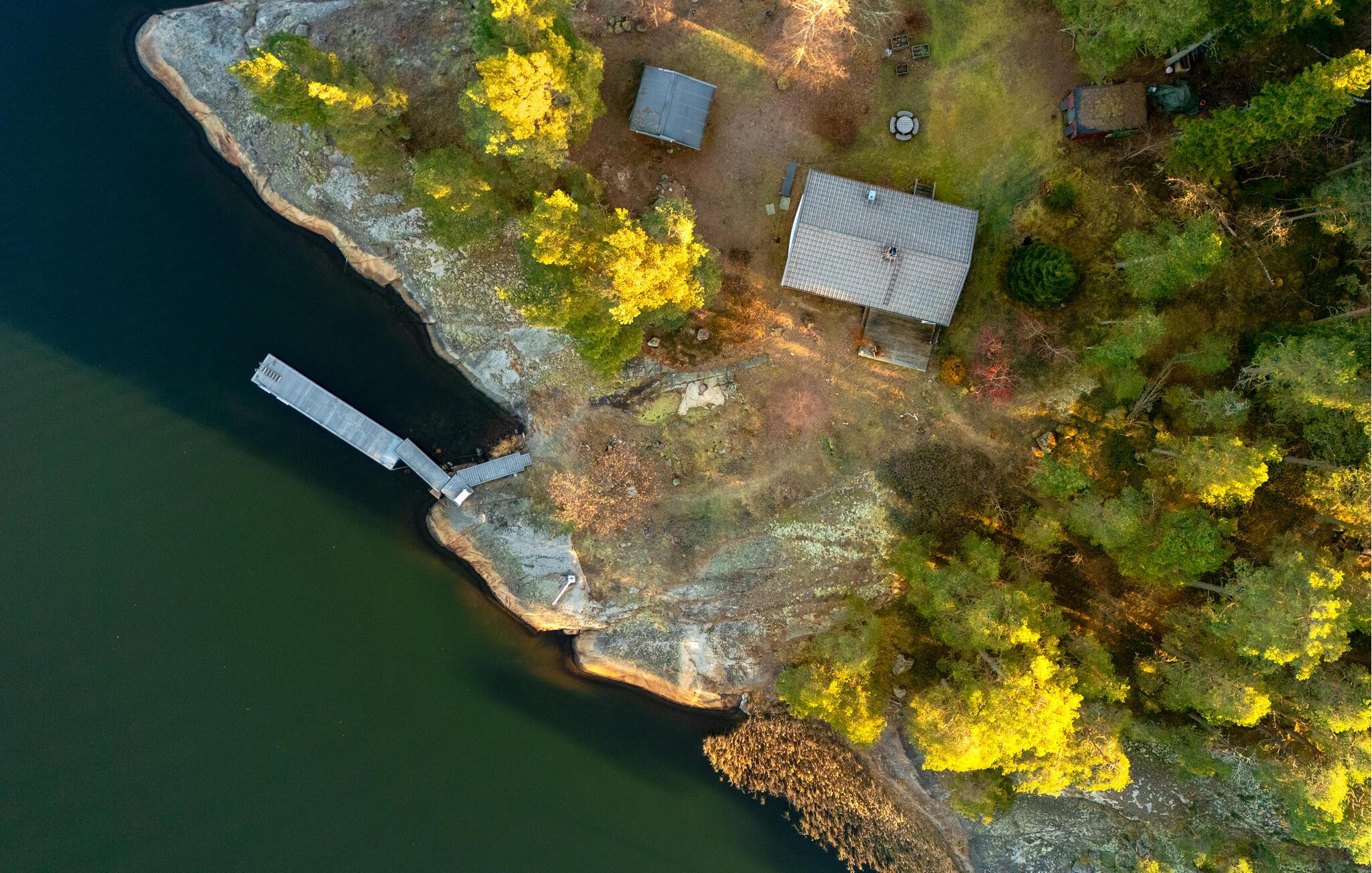 Udenfor er der en terrasse med direkte udsigt over søen - det ideelle sted for en picnic eller afslappende solbadning. Brug den private badebro til en forfriskende svømmetur om sommeren, gør jer godt tilpas på bænken med et glas vin, jog rundt om søen eller organiser stemningsfulde grillaftener.